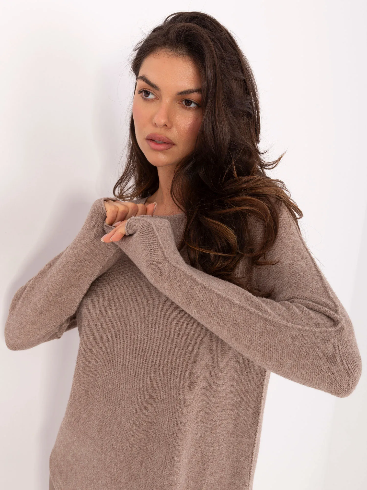 Wymiary swetra w rozmiarze one size mierzone na płasko: szerokość pod pachami - 53 cm, długość rękawa - 62 cm, długość całkowita - 61 cm, szerokość w biodrach - 53 cm.
