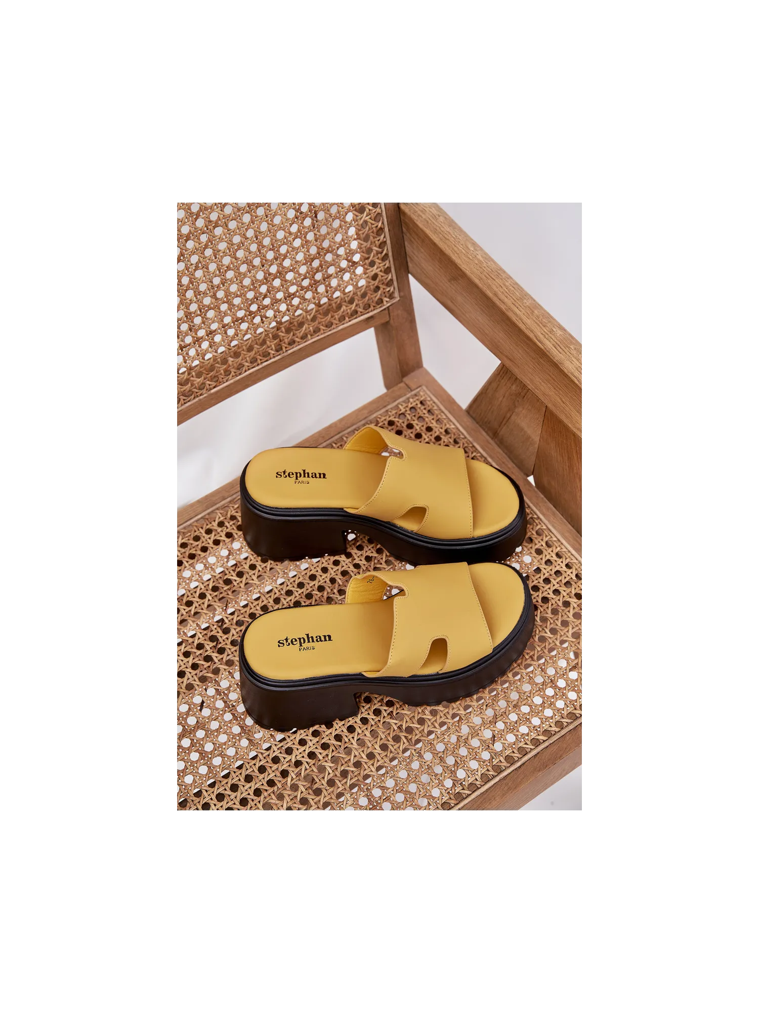 Stylish women’s sandals made of eco-leather. Set on a platform and a chunky, stable heel. At the front, on the strap, they have subtle cutouts that give them a trendy, modern character. The soft insole ensures comfort throughout the day. An excellent choice for summer days, these sandals will be the perfect complement to everyday outfits. When choosing a size, please refer to the size chart.