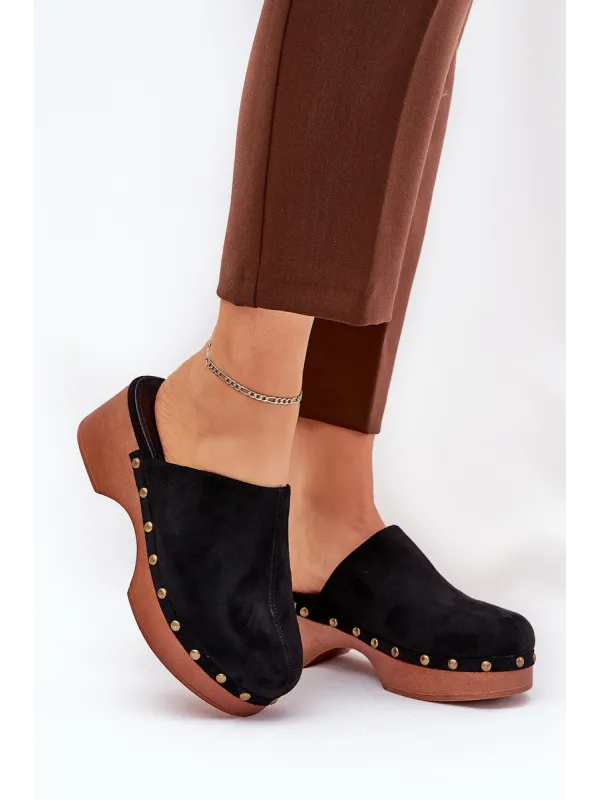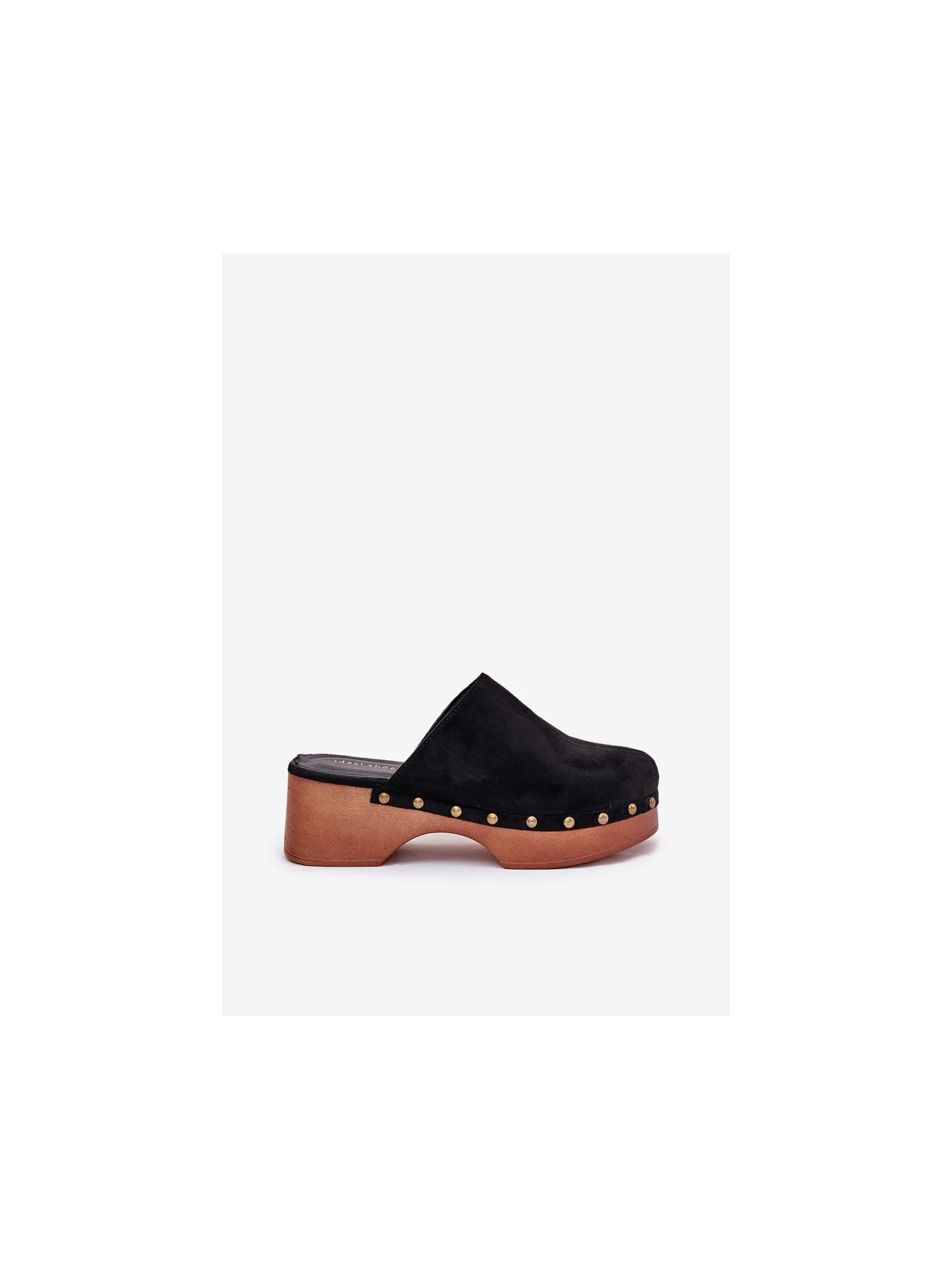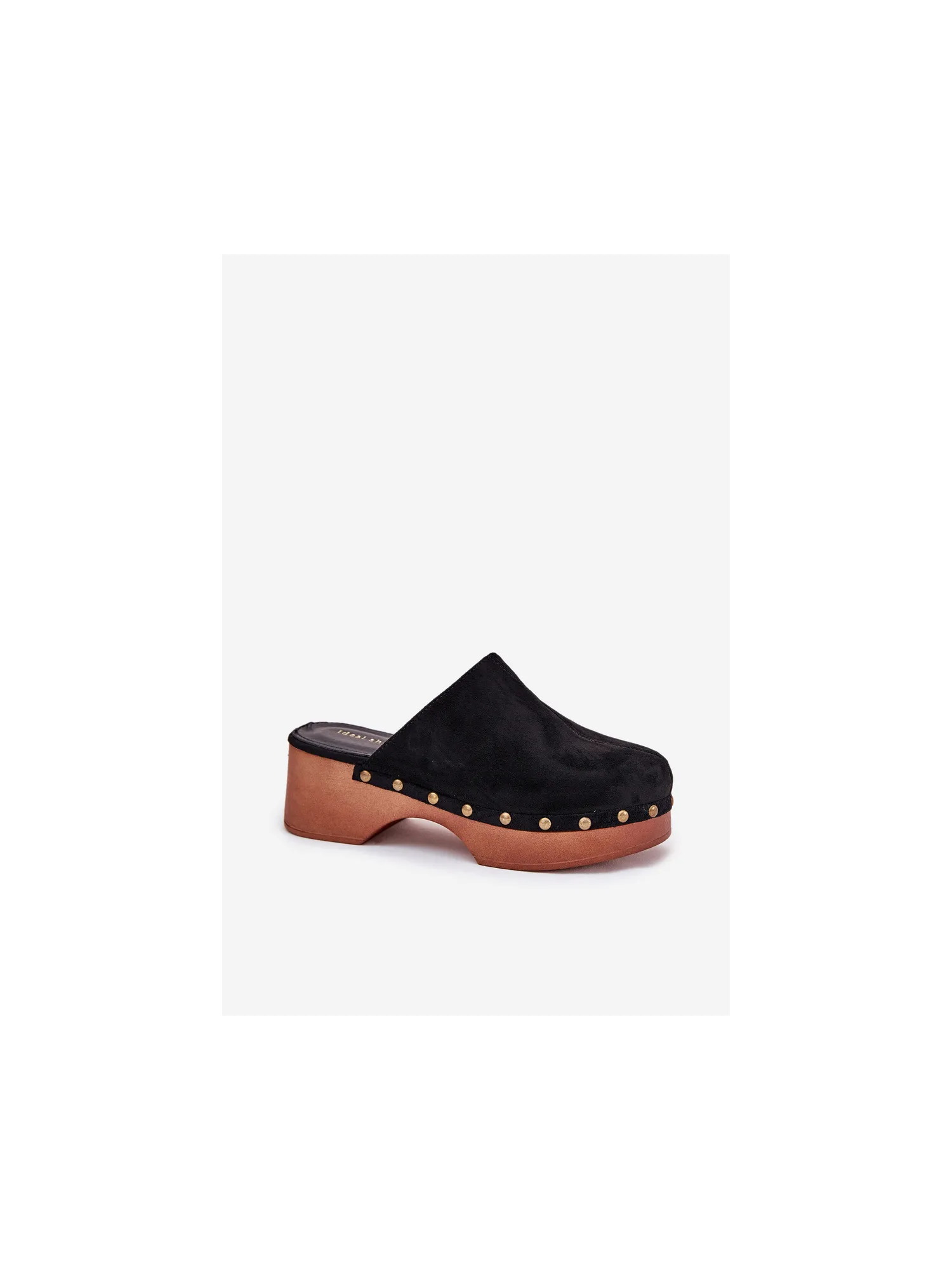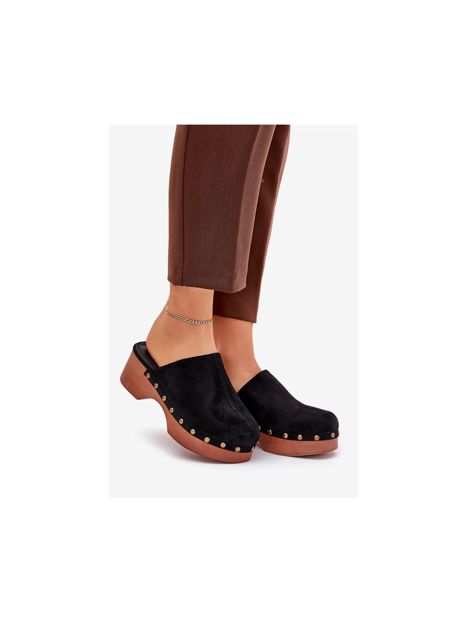 Lightweight women's sandals made of eco suede. Set on a platform and wedge. Decorated with studs that give them a fashionable and unique character. Inside, there is a soft eco-leather insole that guarantees comfort all day long. The sandals have closed, rounded toes. Perfect for everyday wear, they pair well with summer dresses, skirts, and pants. When choosing a size, please refer to the size chart.