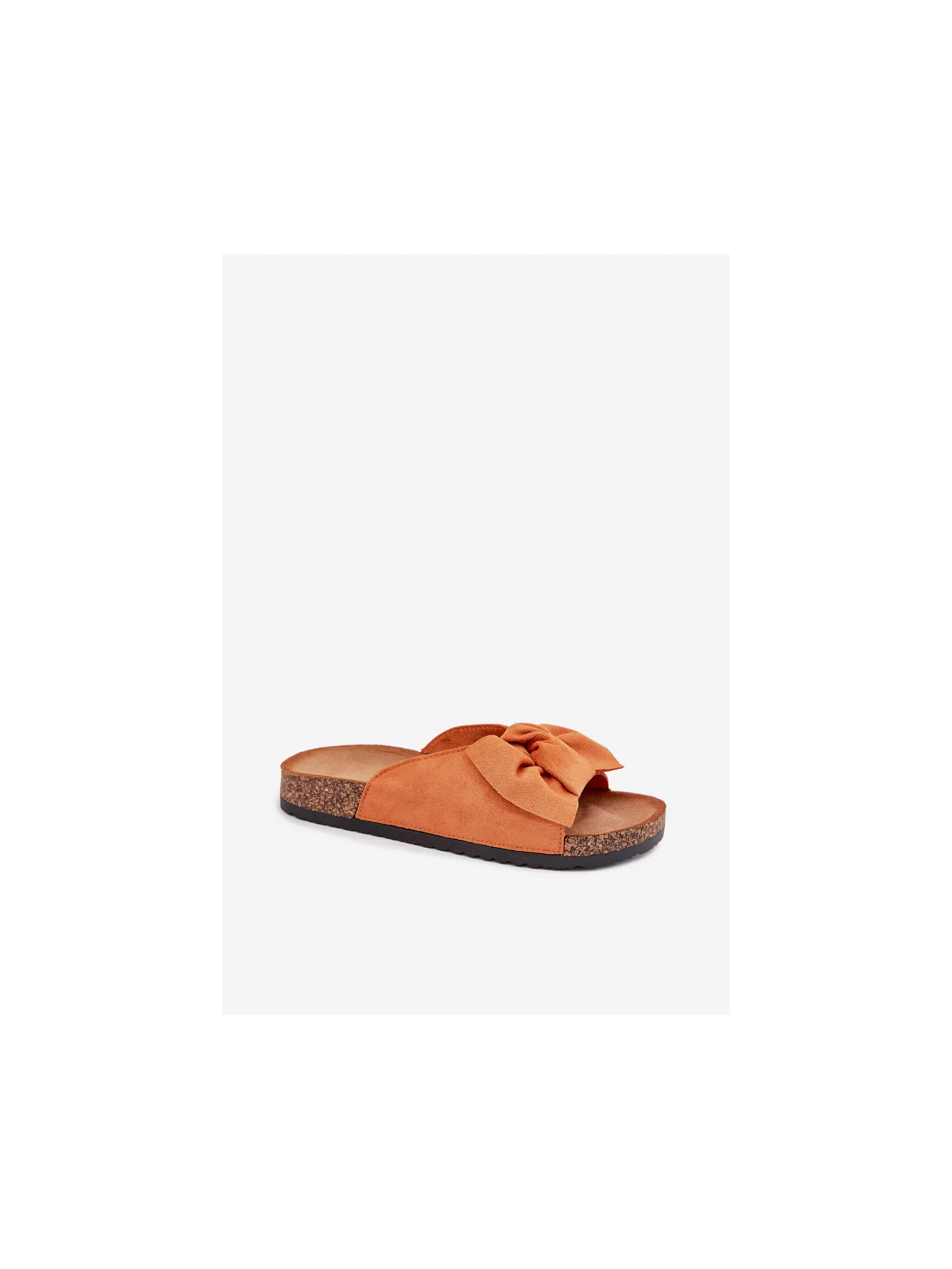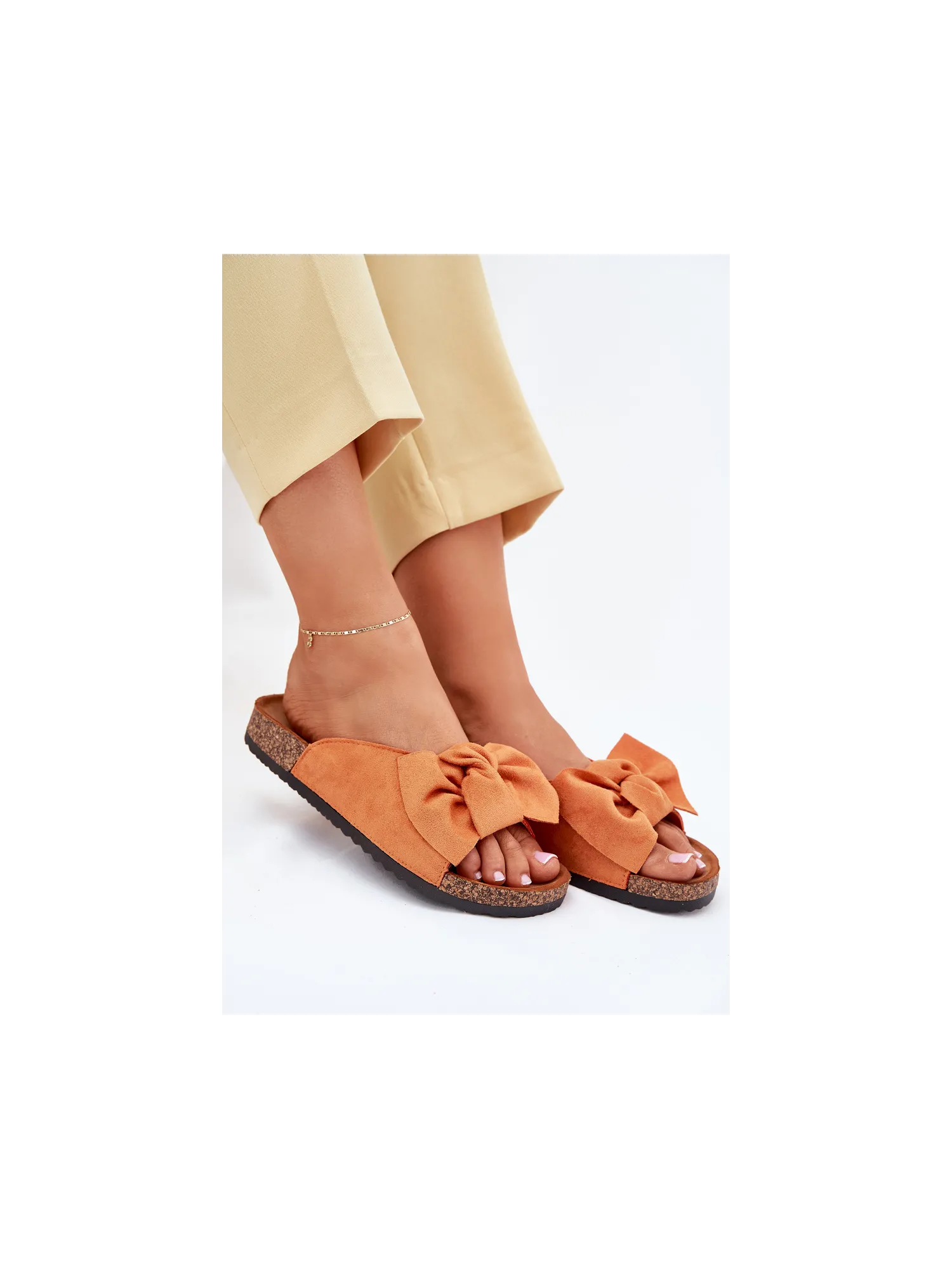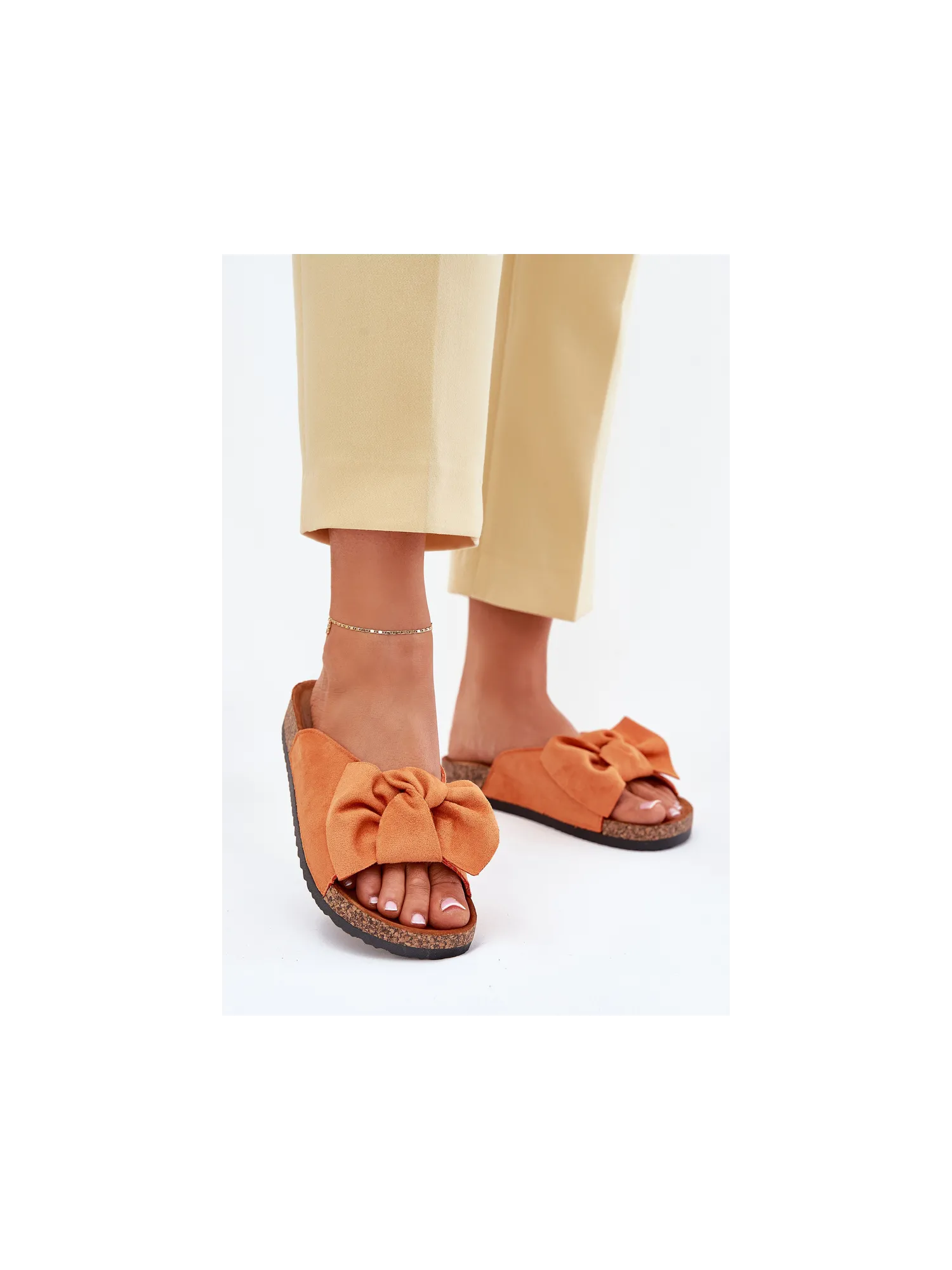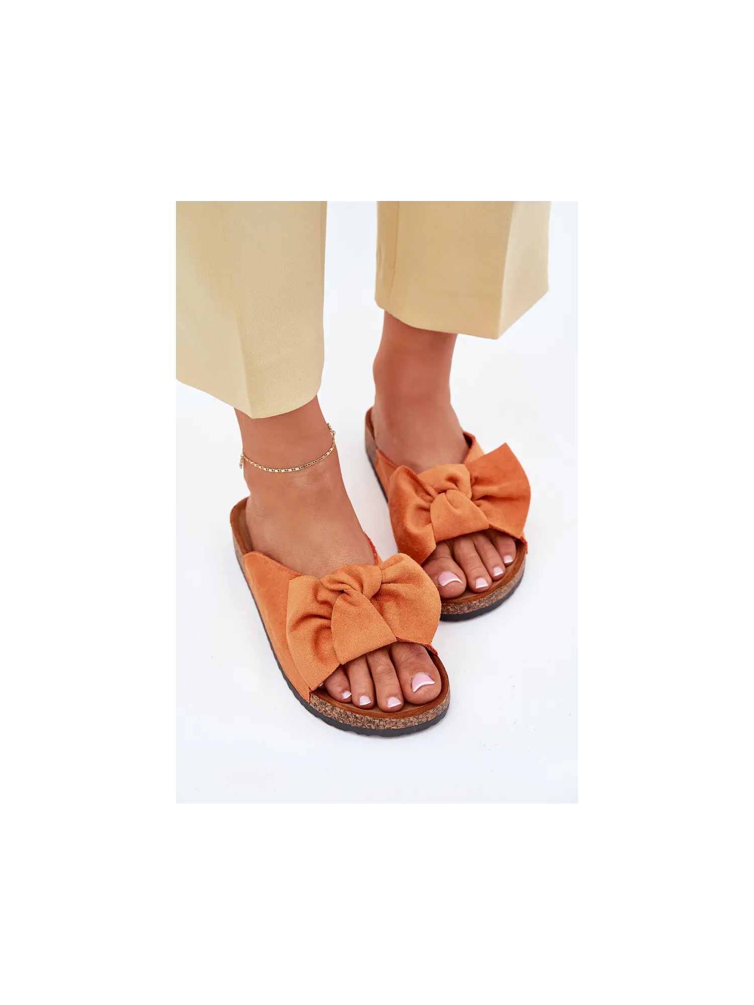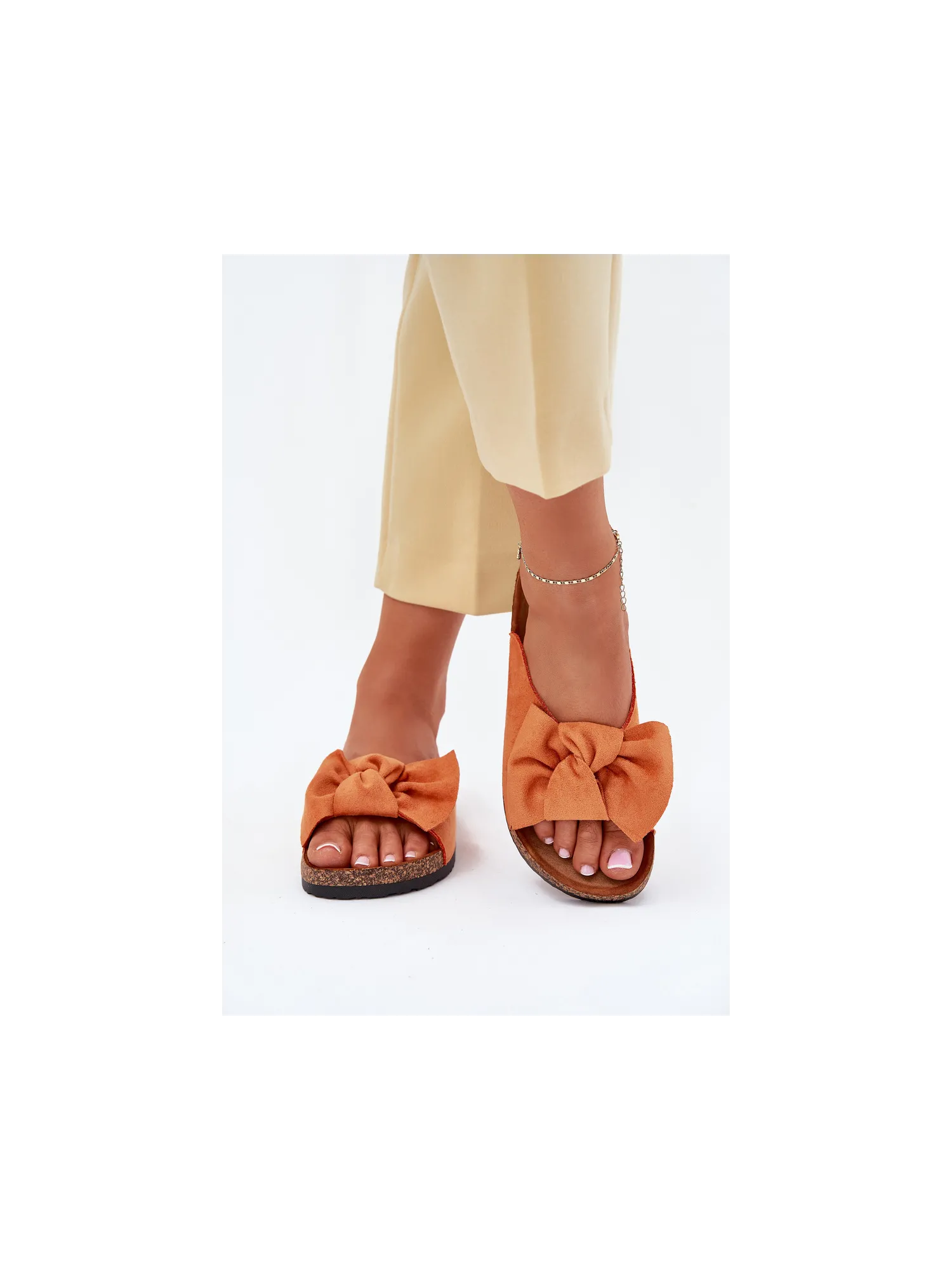 Women's Cork Sole Slippers With Bow Orange Seressa