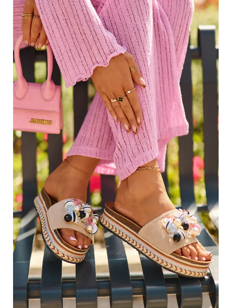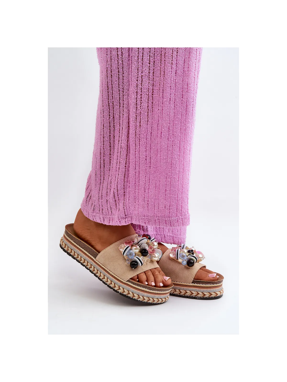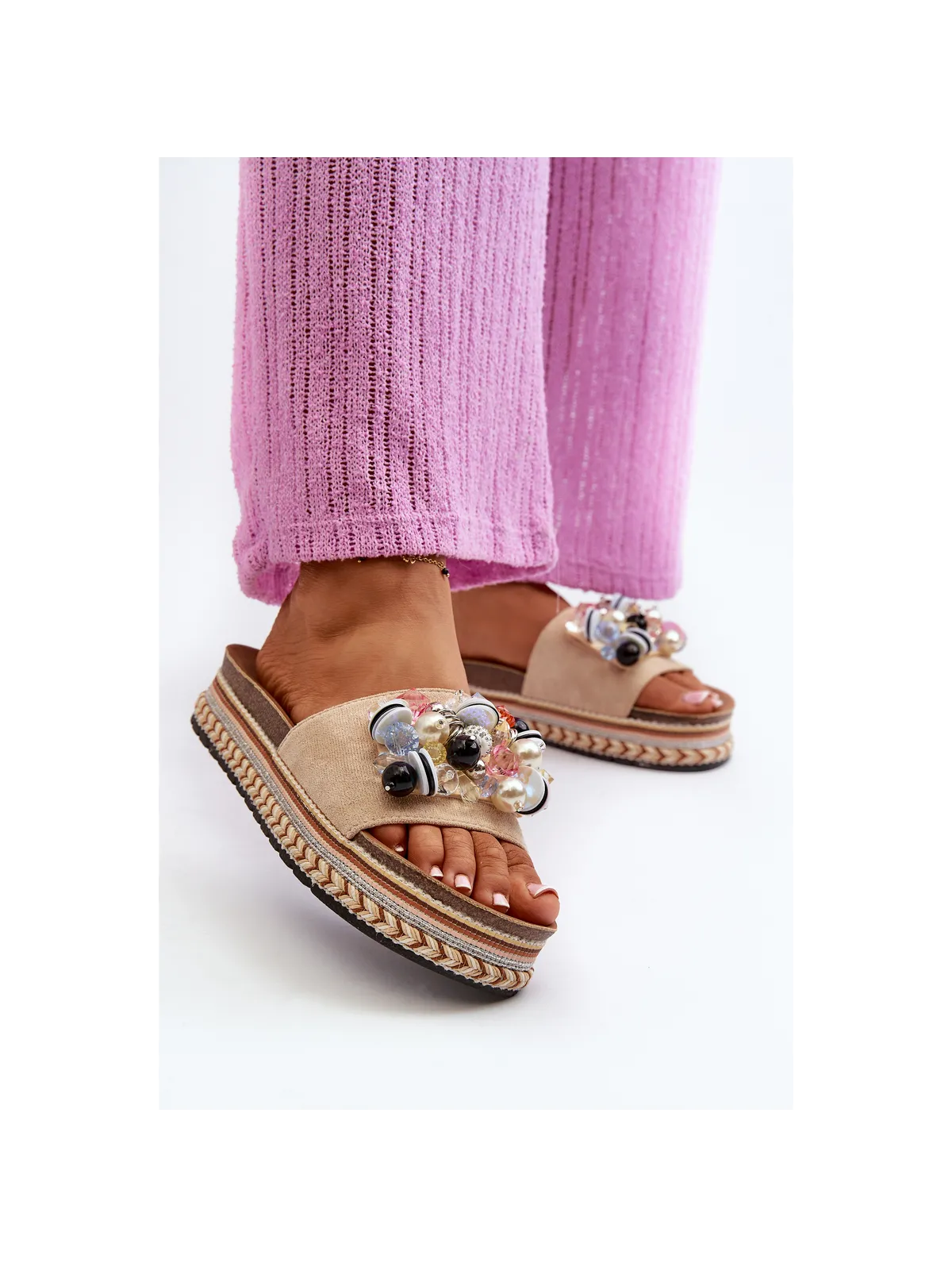 Women's Platform Sandals with Decorations S.Barski HY077 Beige