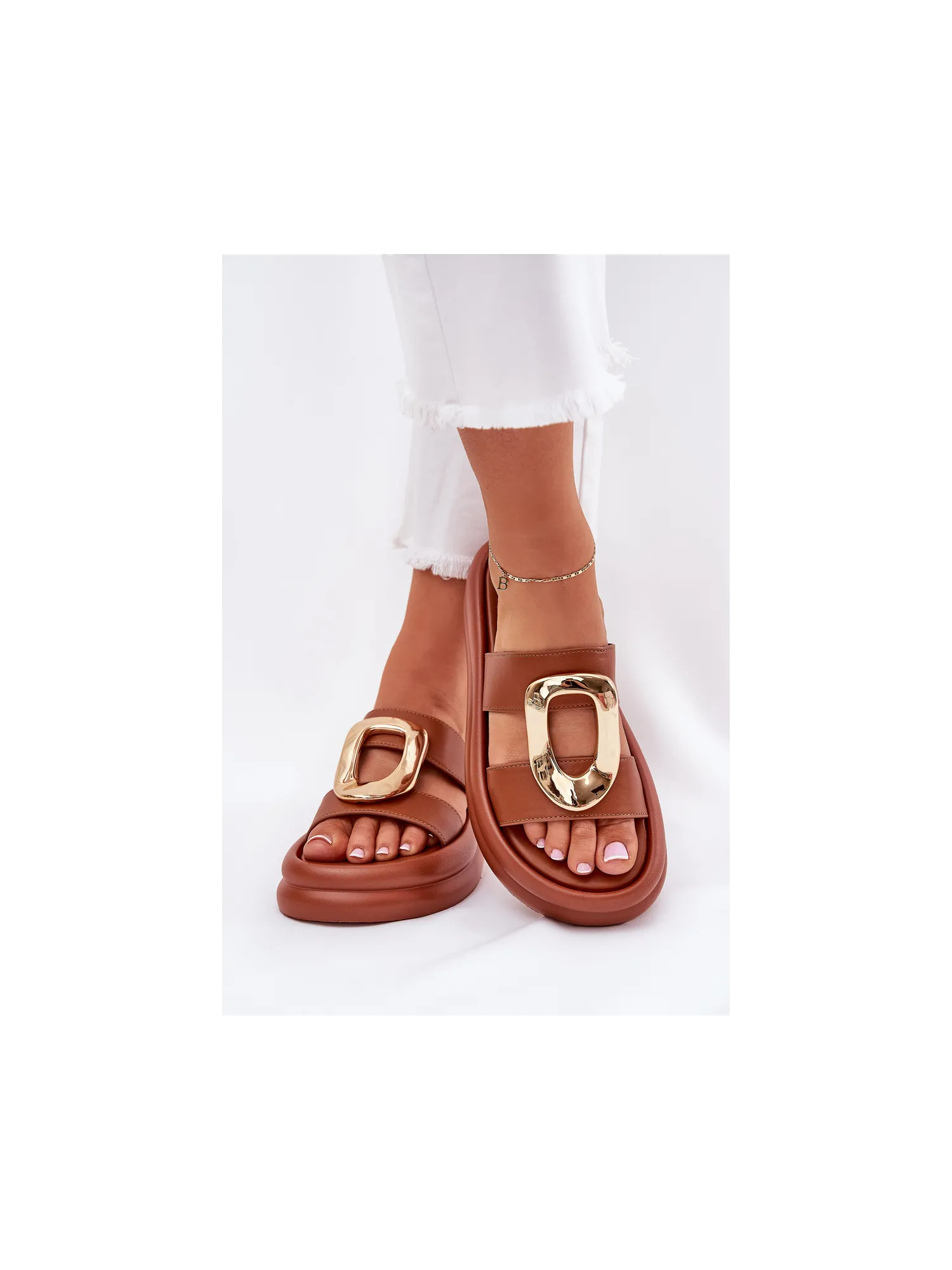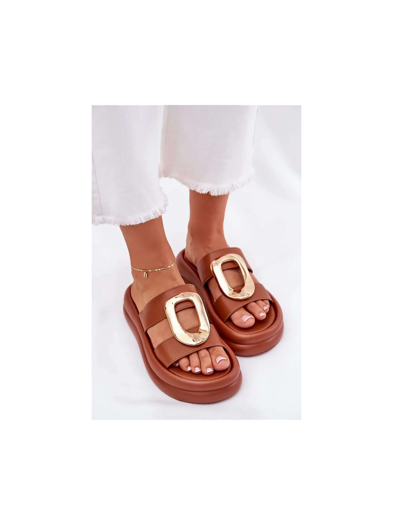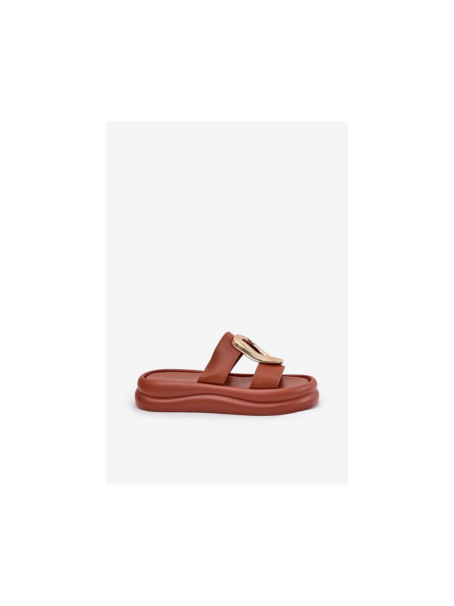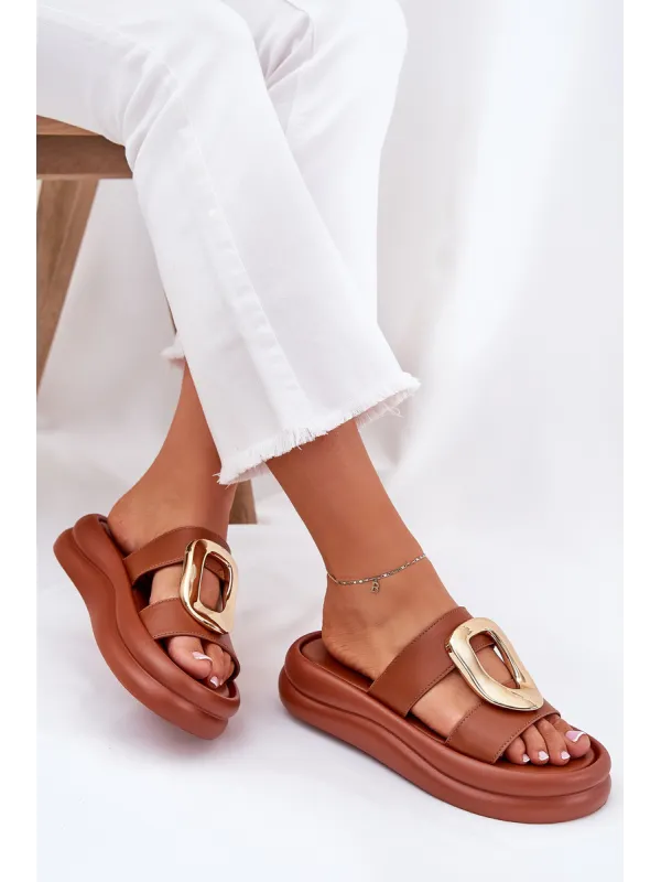 Women's slippers on a massive platform are the perfect choice for those who want to combine comfort with trendy style. Made of eco-friendly leather. Set on a massive platform that provides stability and comfort for all-day wear. This model features a large gold buckle with an adjustable strap. Perfect for summer walks or evening outings. When choosing a size, please refer to the size chart.