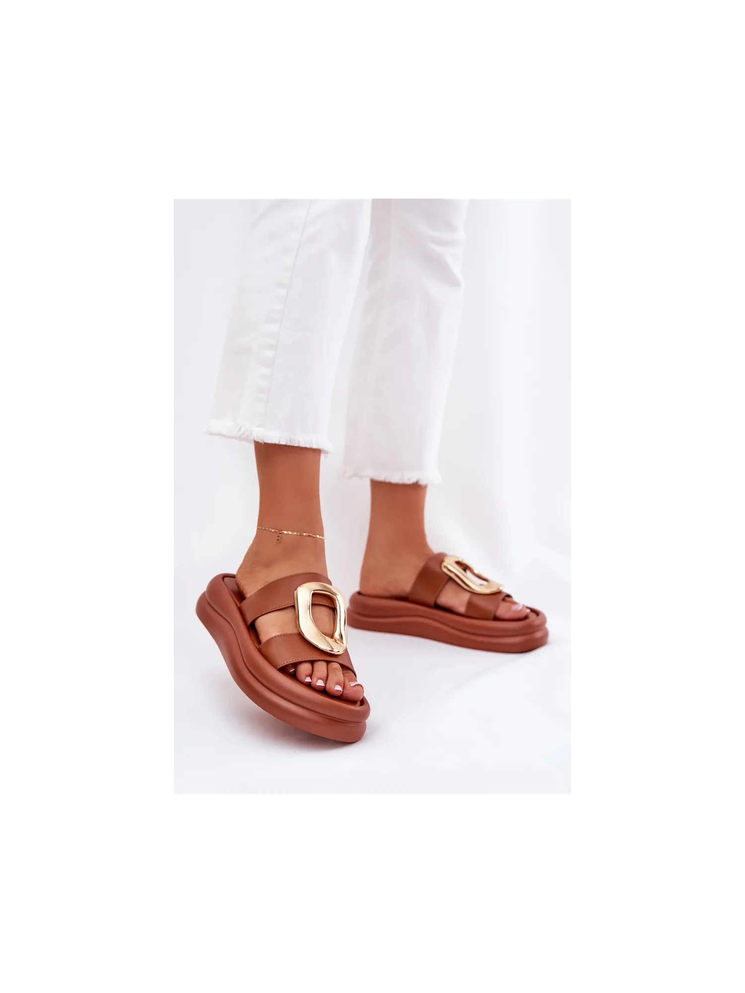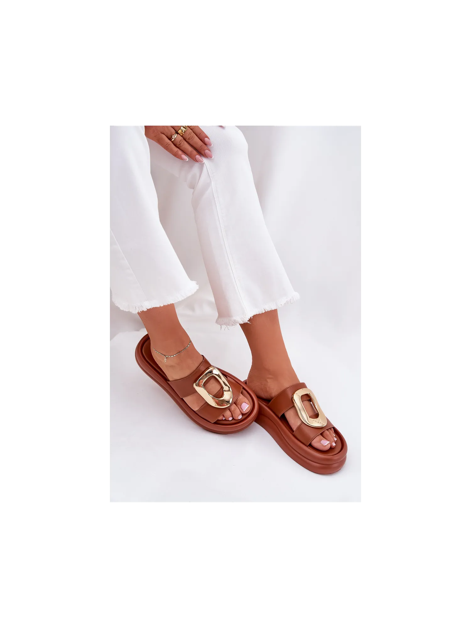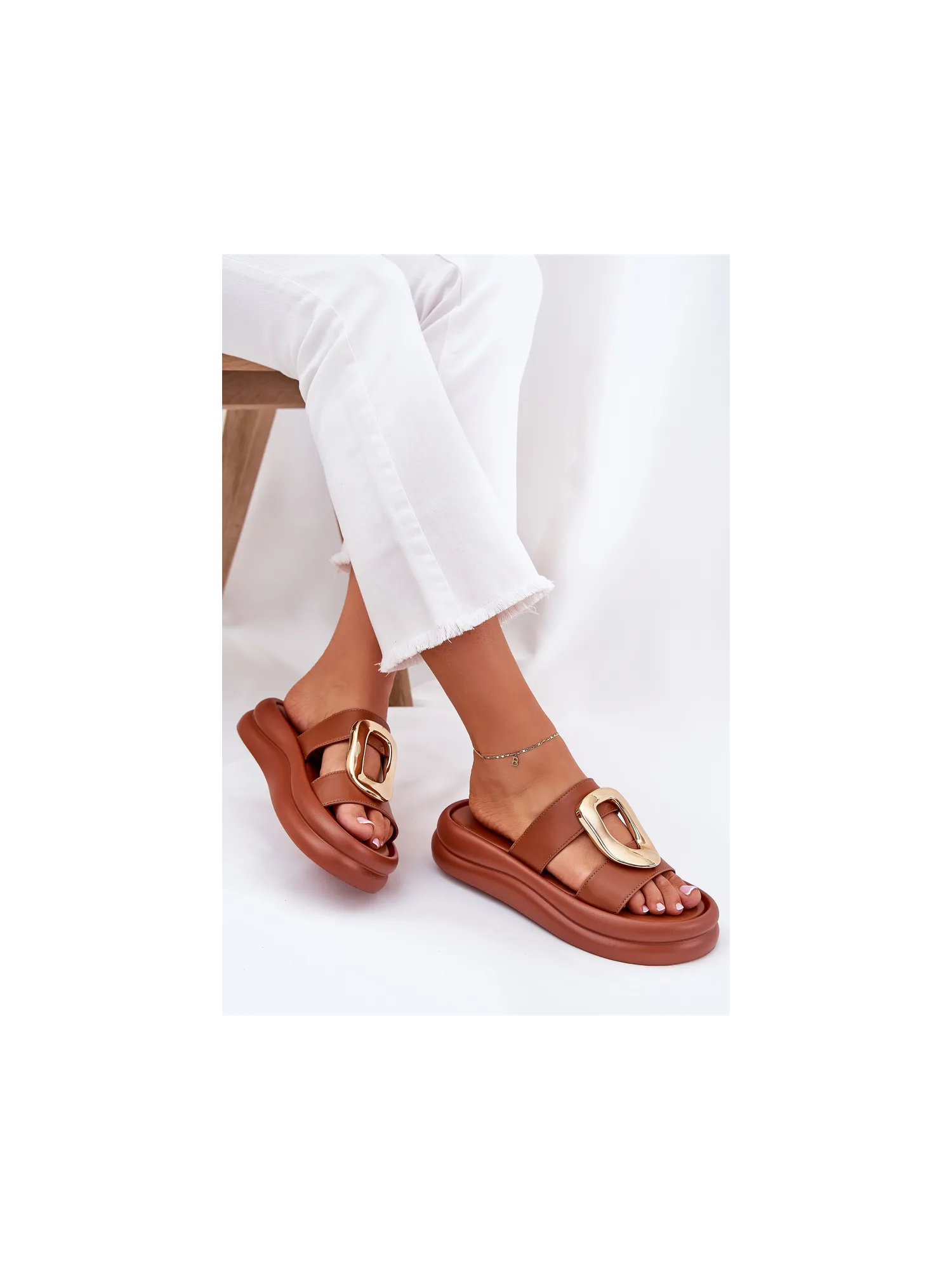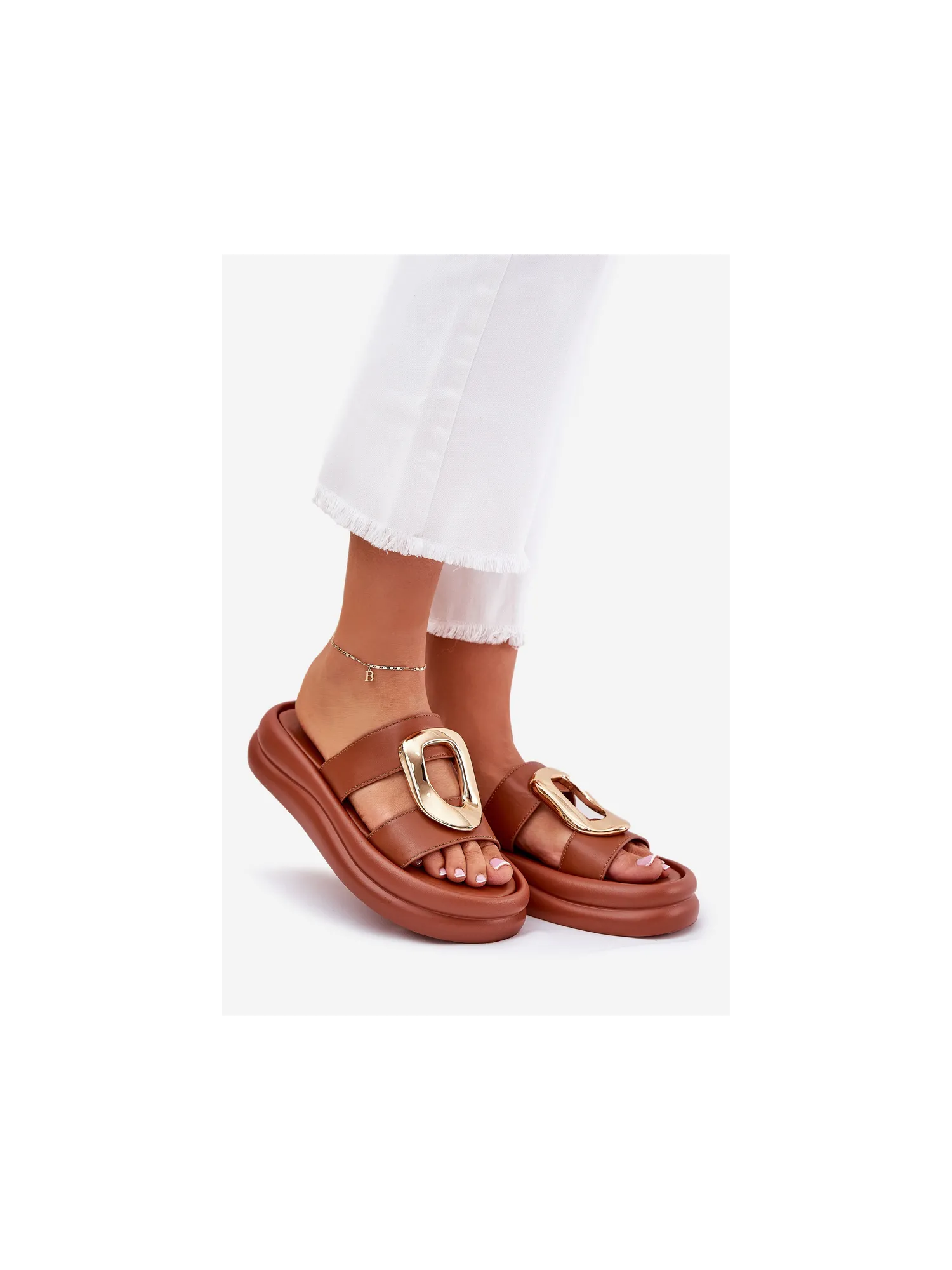 Women's slippers on a massive platform are the perfect choice for those who want to combine comfort with trendy style. Made of eco-friendly leather. Set on a massive platform that provides stability and comfort for all-day wear. This model features a large gold buckle with an adjustable strap. Perfect for summer walks or evening outings. When choosing a size, please refer to the size chart.