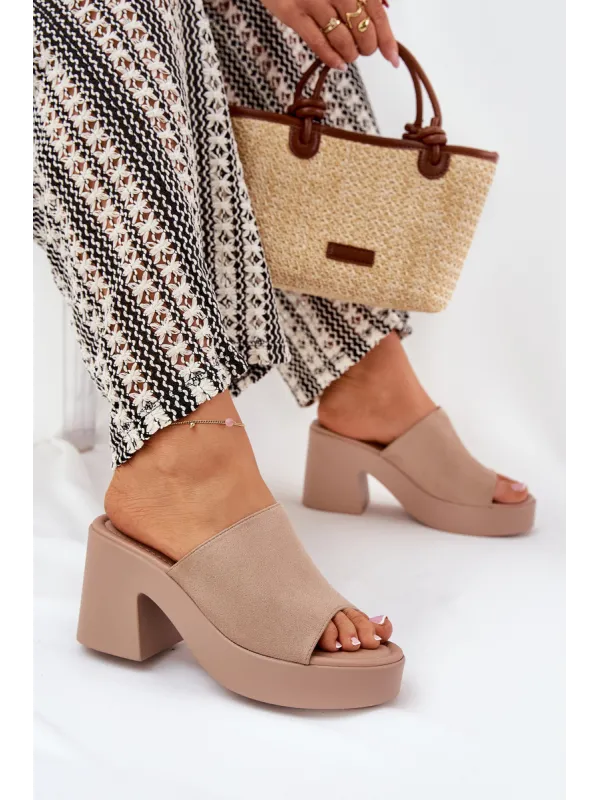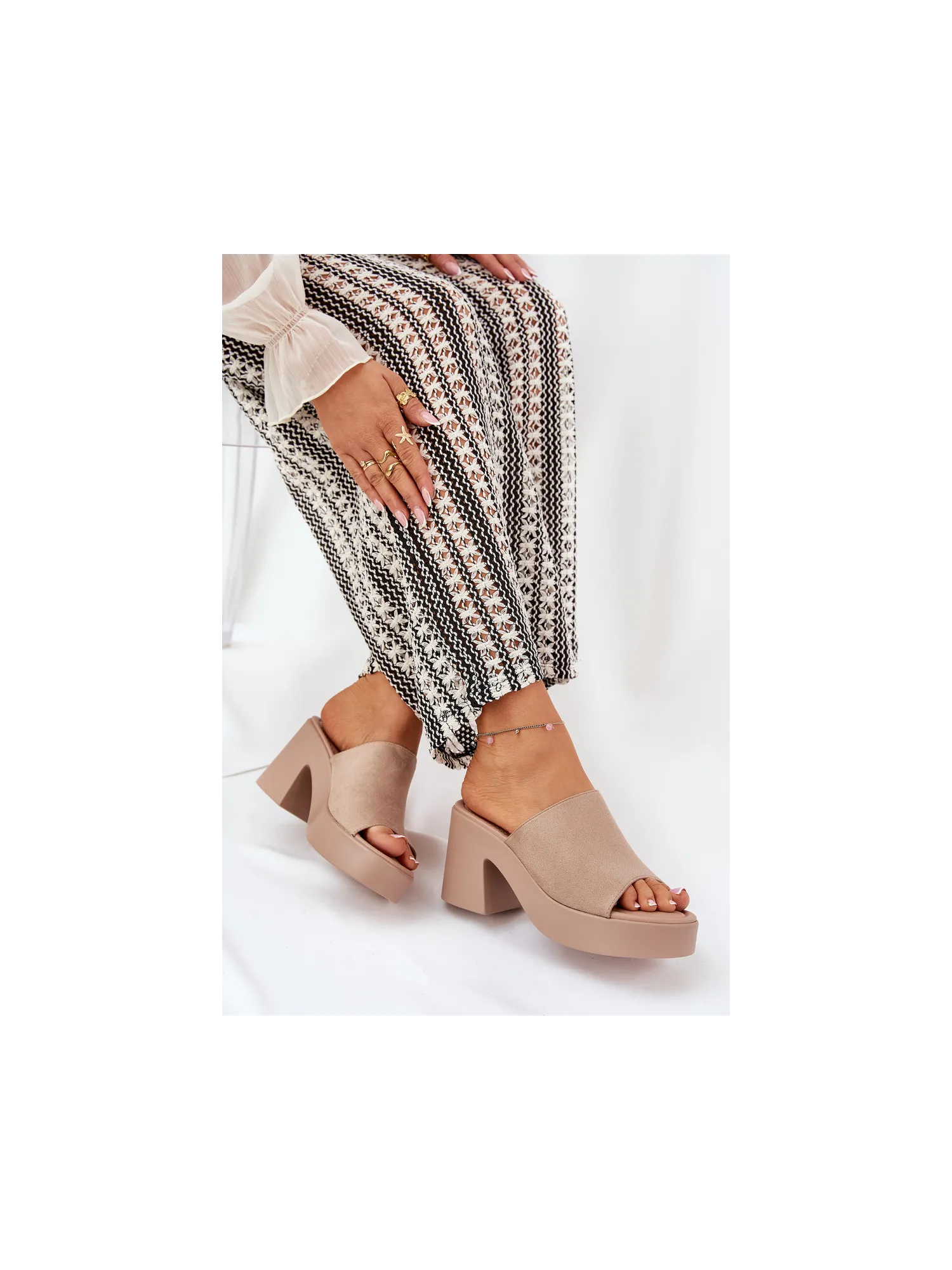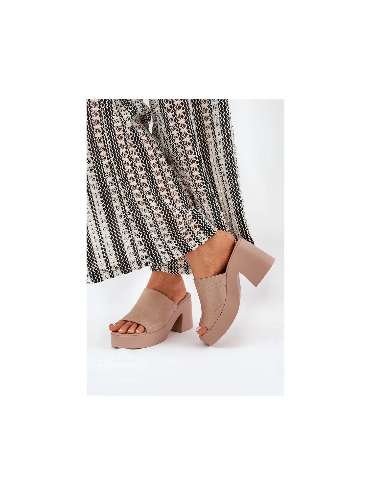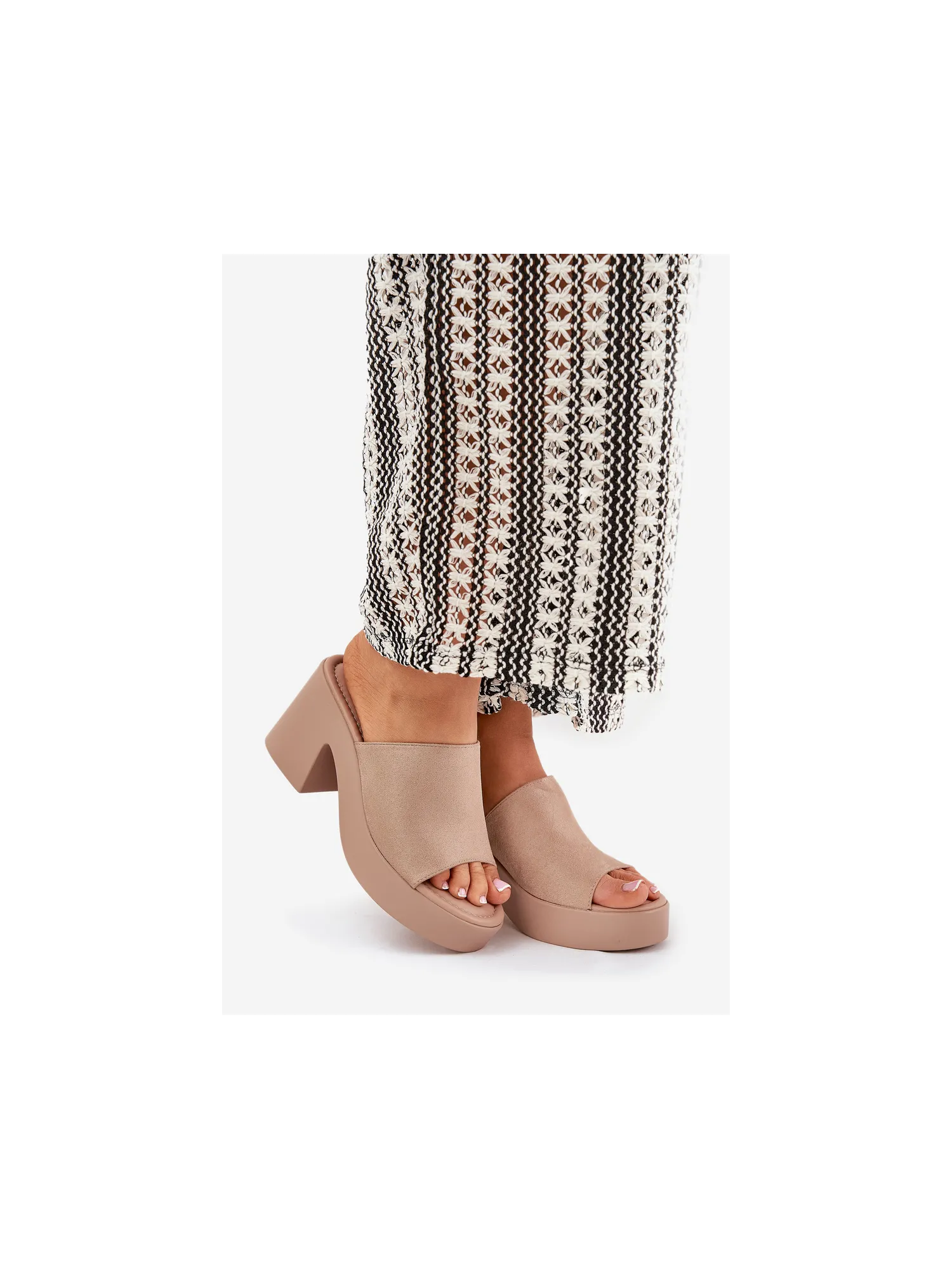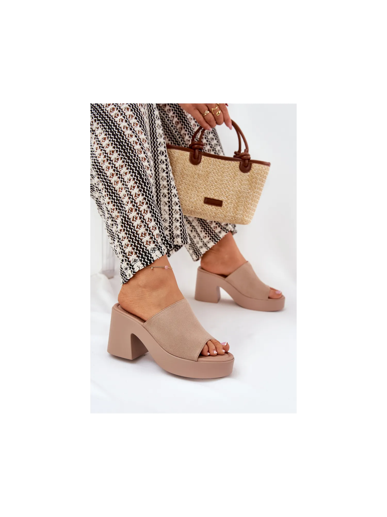 Women's clogs on a platform and block heel that combine comfort with a fashionable look. The upper is made of eco-suede, while the soft insole provides comfort all day long. The classic design makes these clogs perfect for many summer outfits, adding elegance and lightness to every look. Ideal for everyday outings and special occasions. When choosing a size, please refer to the size chart.