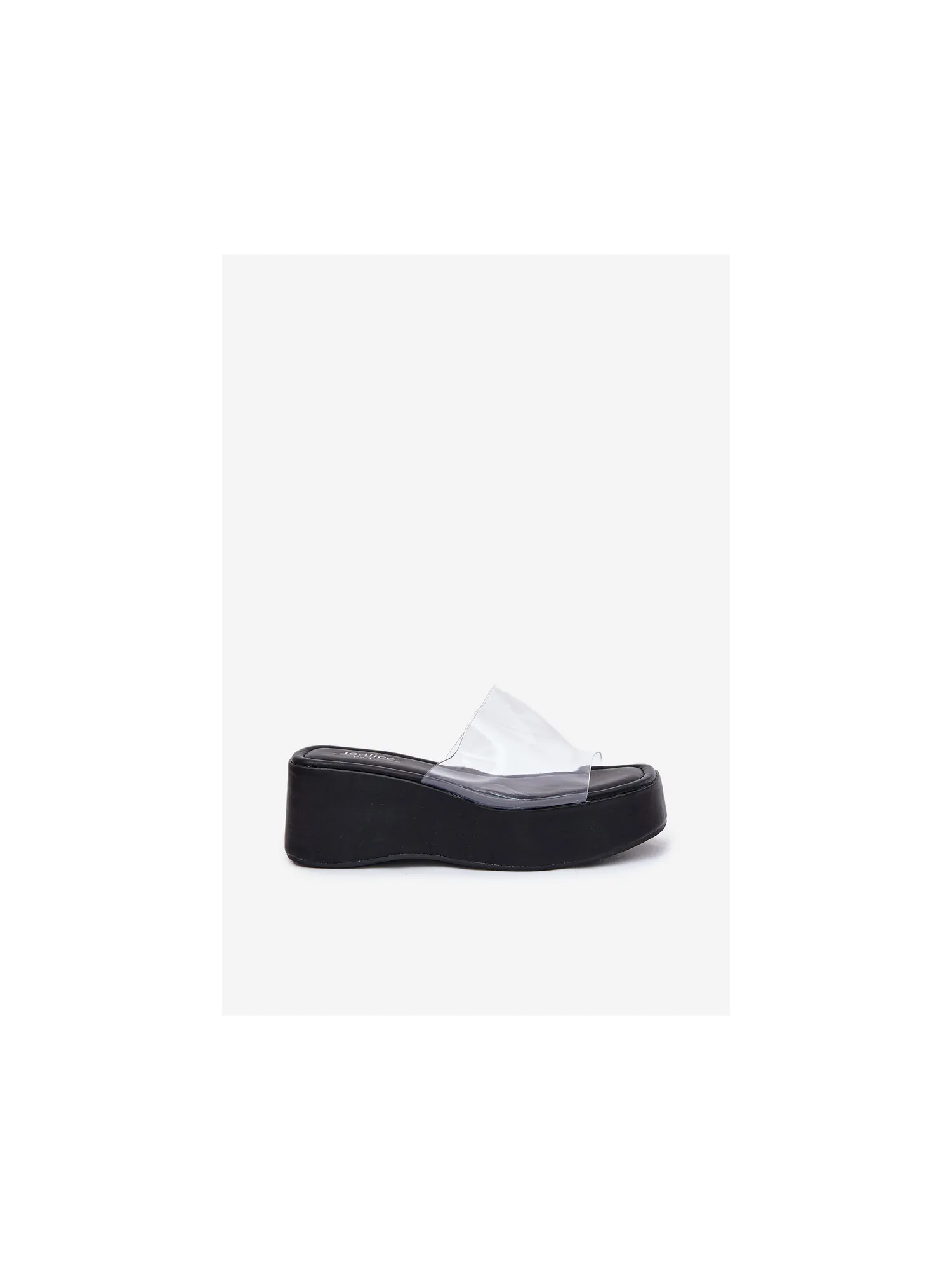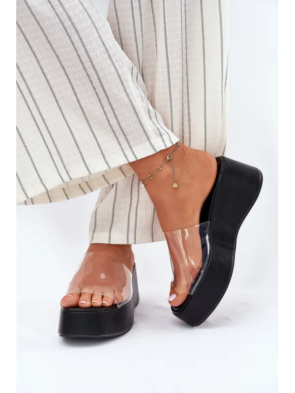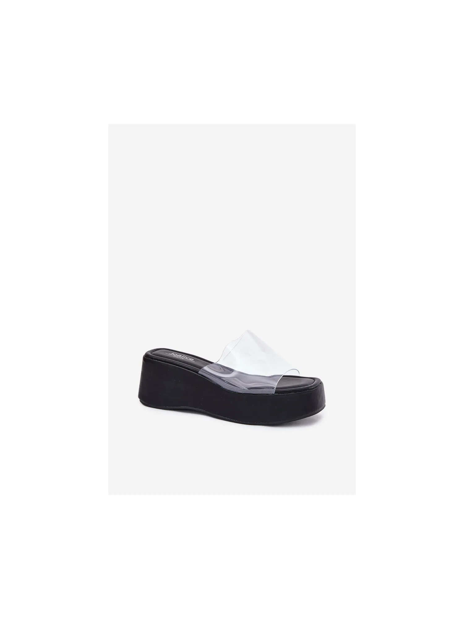 Women’s slides with a transparent strap combine modern style and comfort. This model is set on a wedge that subtly elongates the silhouette while providing stability while walking. The soft insole ensures comfort even during prolonged wear. These slides will perfectly complement both casual and more elegant summer outfits. When choosing a size, please refer to the size chart.
