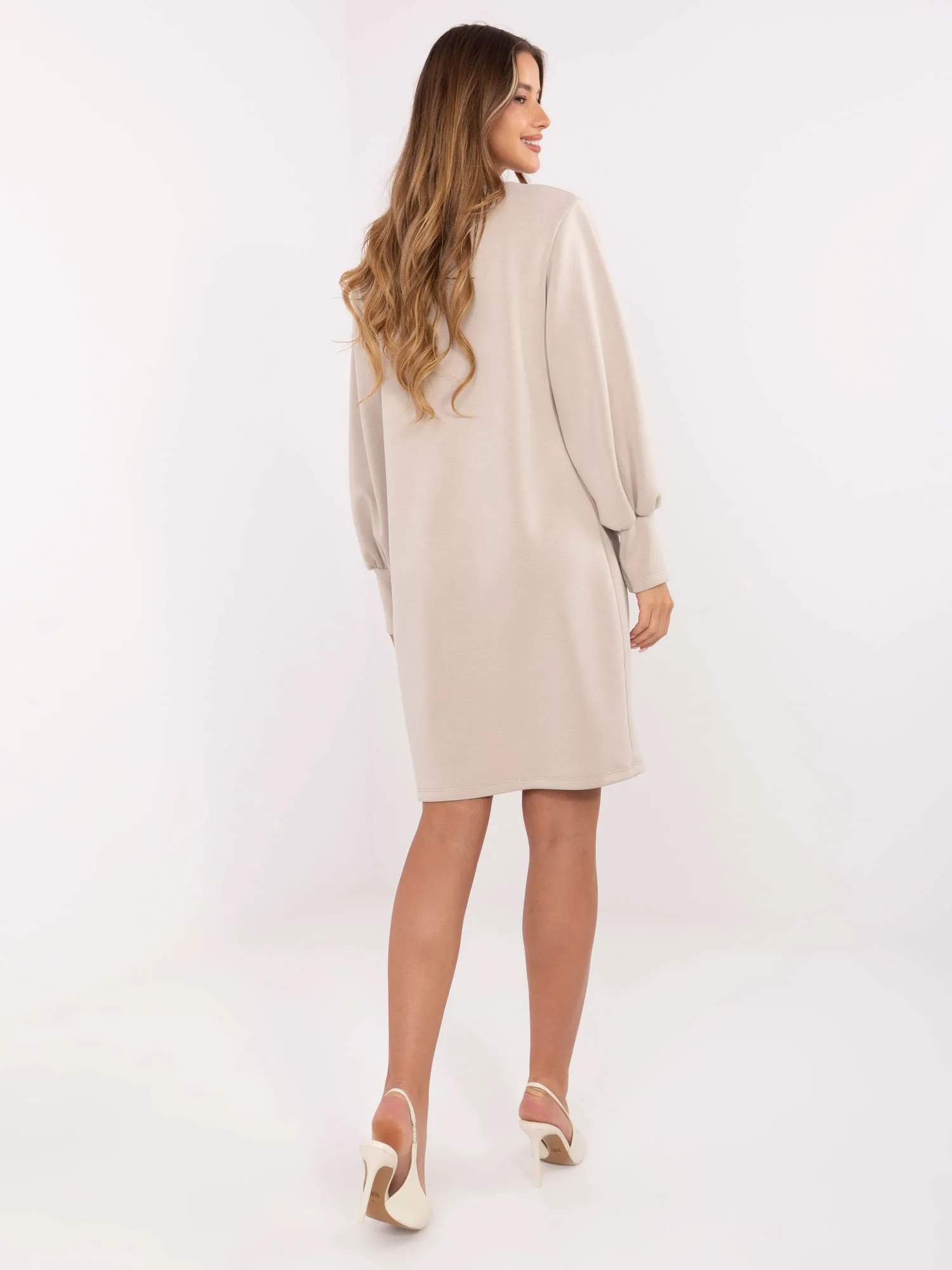 Wymiary sukienki w rozmiarze one size: szerokość pod pachami - 59 cm, szerokość w talii - 35 cm, długość rękawa - 62 cm, szerokość w biodrach - 56 cm, długość całkowita - 101 cm.