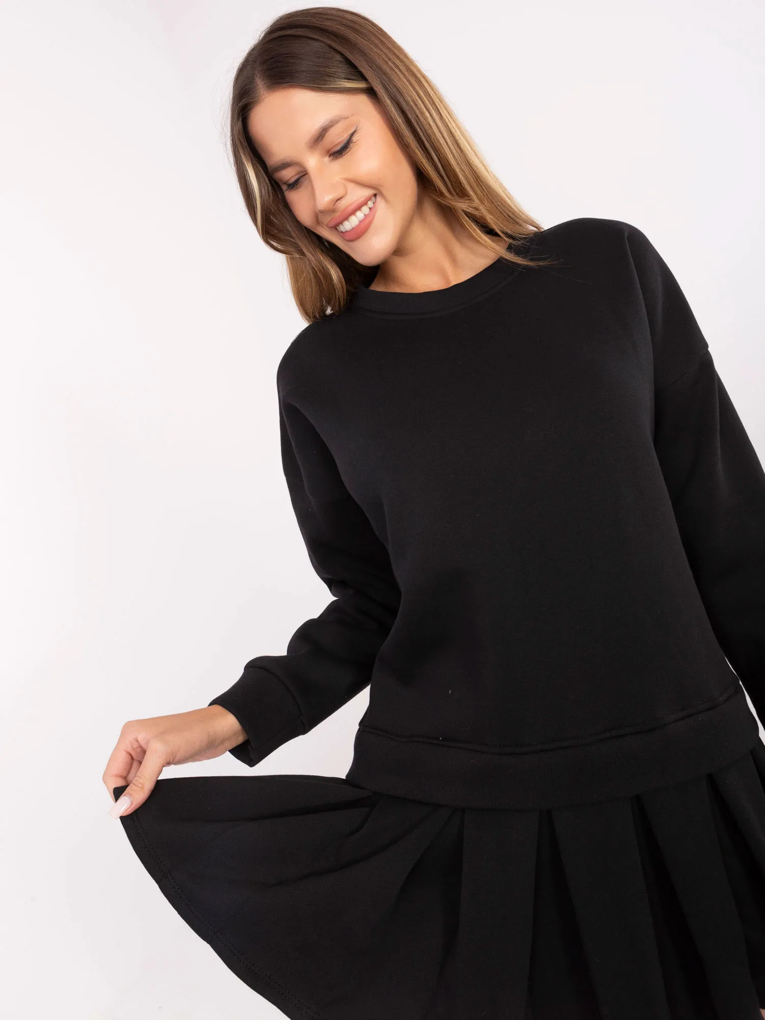 Wymiary sukienki w rozmiarze one size: szerokość pod pachami - 61 cm, szerokość w talii - 53 cm, długość rękawa - 45 cm (od szwu), szerokość w talii - 55 cm, szerokość w biodrach - 56 cm, długość całkowita - 83 cm.
