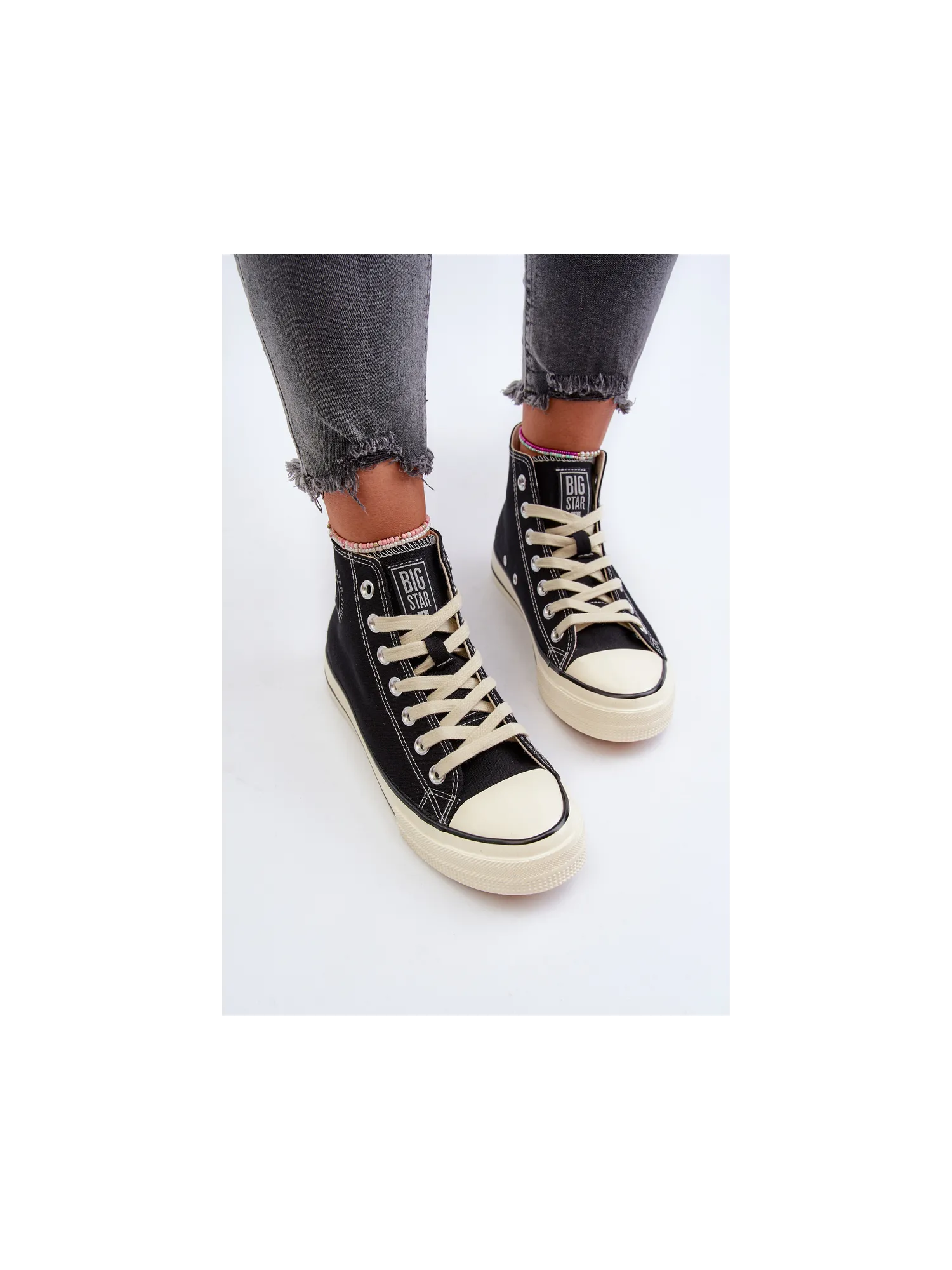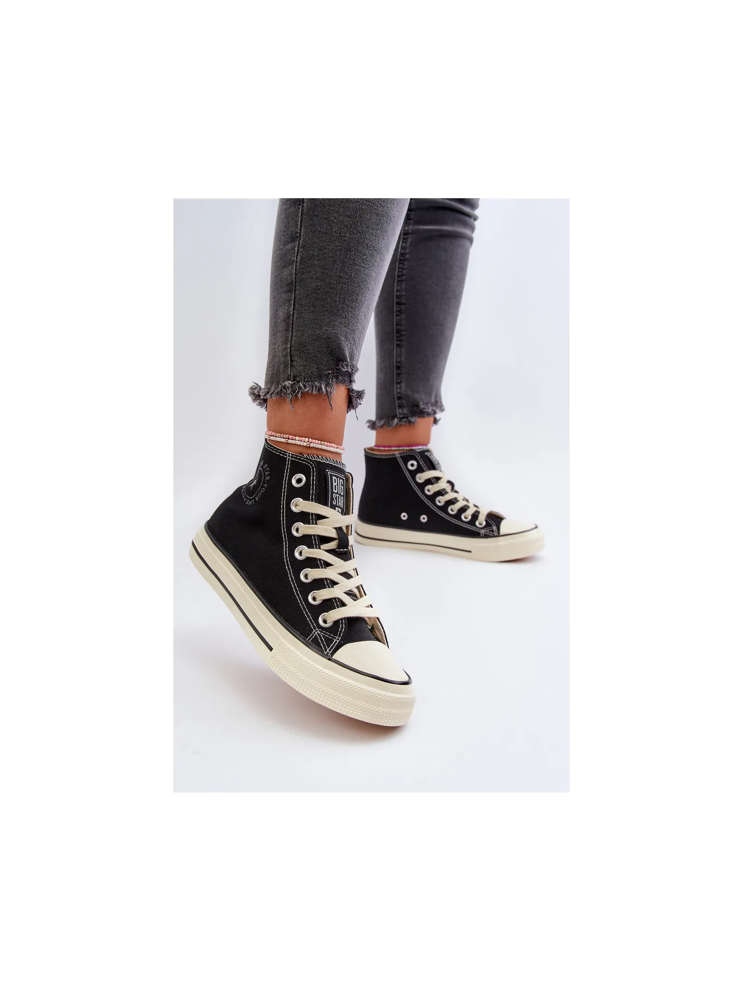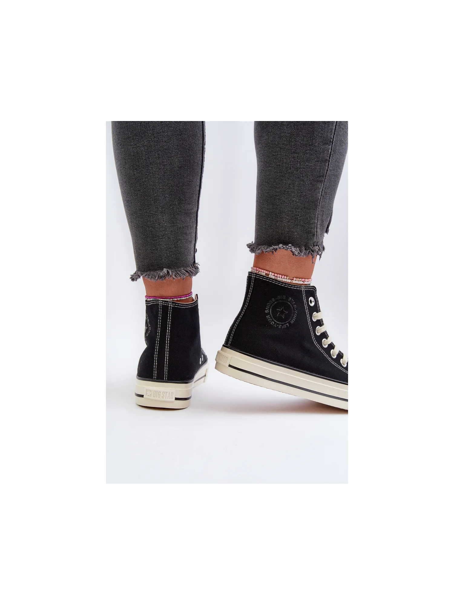 Women's sneakers from the brand Big Star. Made of high-quality textile material. The ankle reaching behind the ankle adds stability, which is especially important during long walks or outdoor activities. In these fashionable sneakers, you will feel comfortable and stylish at the same time! When choosing a size, please refer to the size chart.