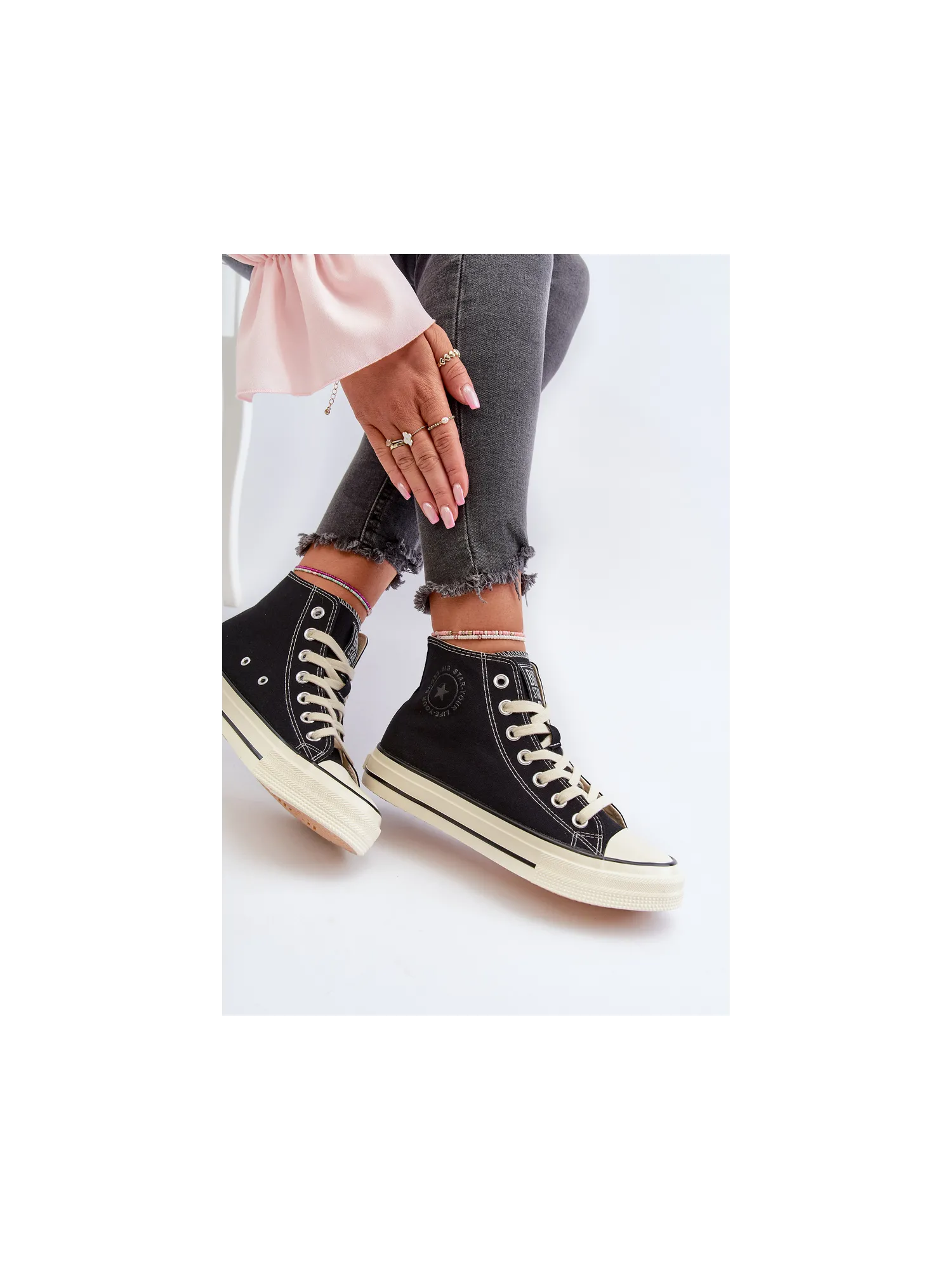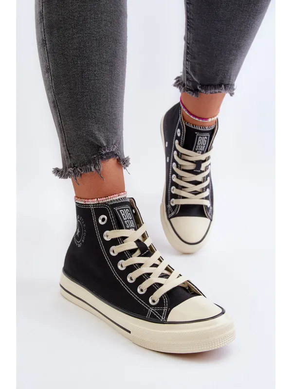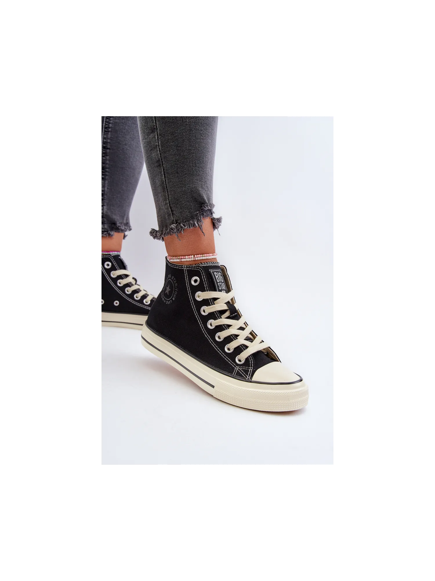 Women's sneakers from the brand Big Star. Made of high-quality textile material. The ankle reaching behind the ankle adds stability, which is especially important during long walks or outdoor activities. In these fashionable sneakers, you will feel comfortable and stylish at the same time! When choosing a size, please refer to the size chart.