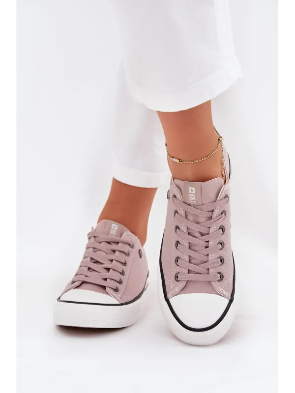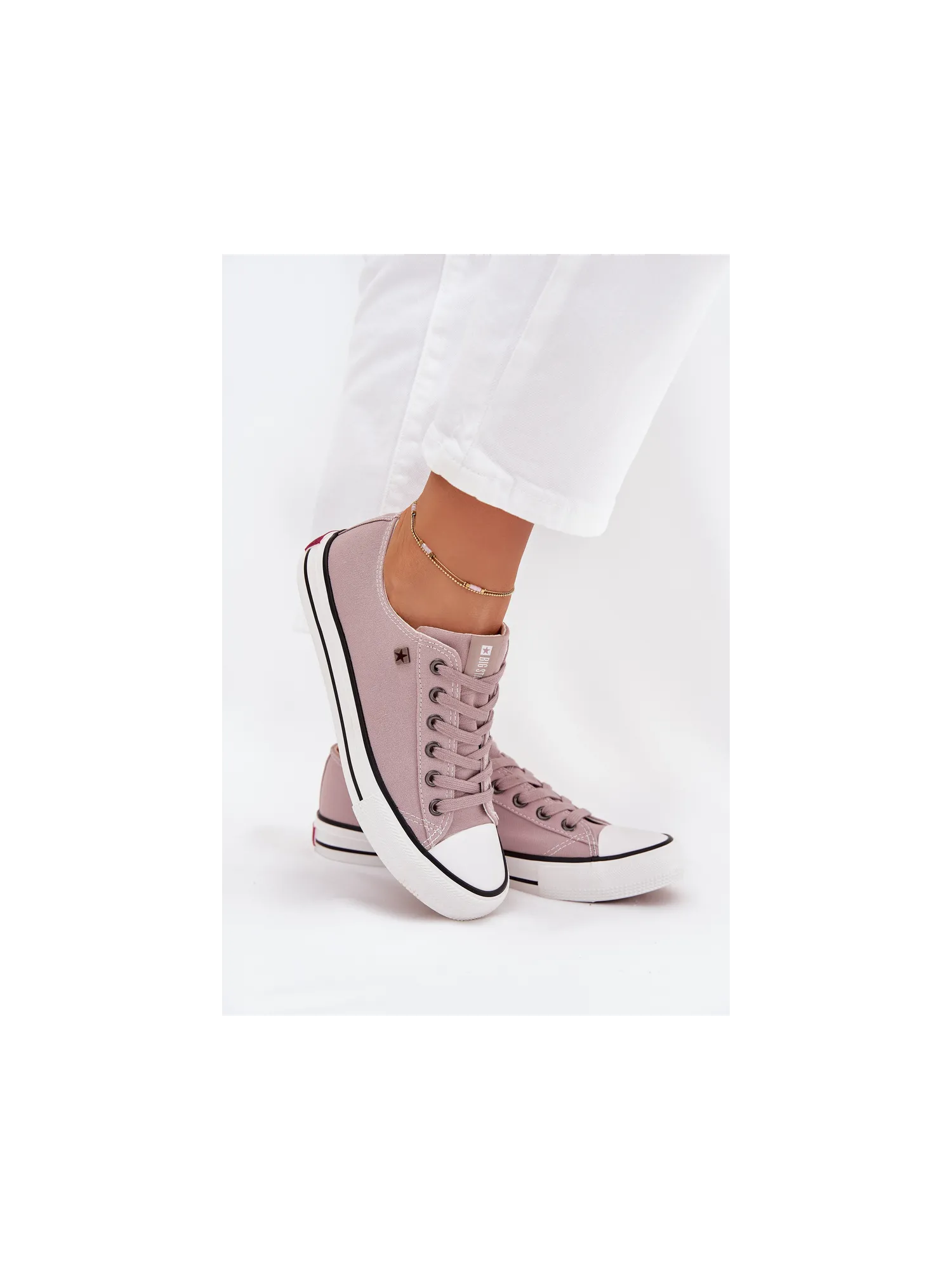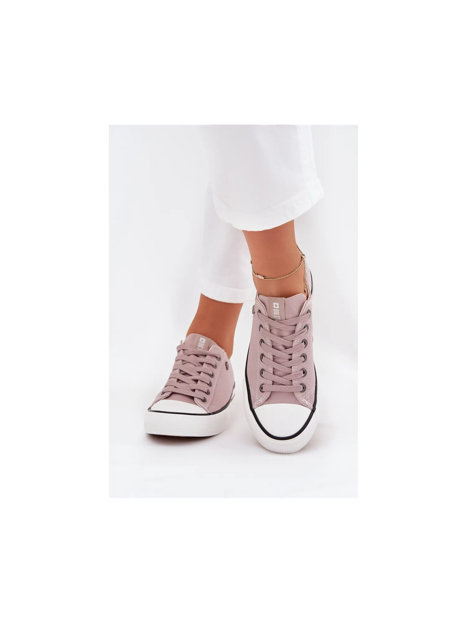 Ladies' sneakers from the brand Big Star made of textile material, in a classic low-cut style, are a timeless option that never goes out of fashion. The rubber sole provides comfort and grip, making them an ideal choice for everyday wear. Perfect for casual styles, they match jeans, dresses, or skirts, combining comfort with a fashionable look. When choosing a size, please refer to the size chart.