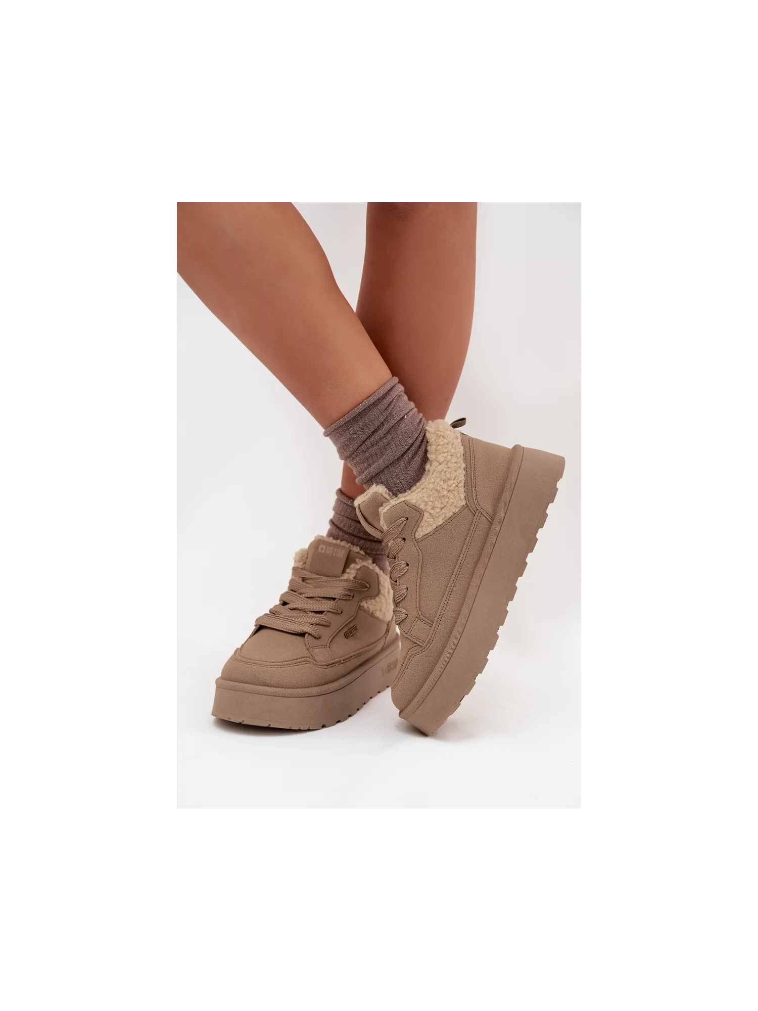 Women's Platform Sneakers With Sheepskin Big Star SS274105 Beige