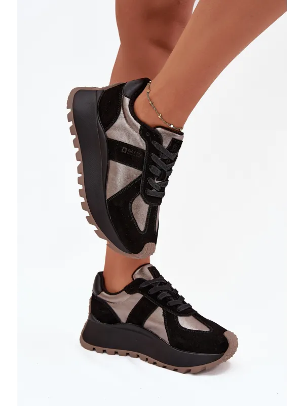 Big Star ShoesWomen's sneakers from the brand Big Star, made of natural suede. Set on a sturdy platform, they offer not only a stylish appearance but also extra height. The HI-POLY SYSTEM insole, made from recycled materials, is breathable, moisture-absorbing, shock-absorbing, durable, abrasion-resistant, and deformation-resistant, ensuring comfort for long hours of wear. Ideal for cooler days. When choosing a size, please refer to the size chart. When choosing a size, please refer to the size chart.