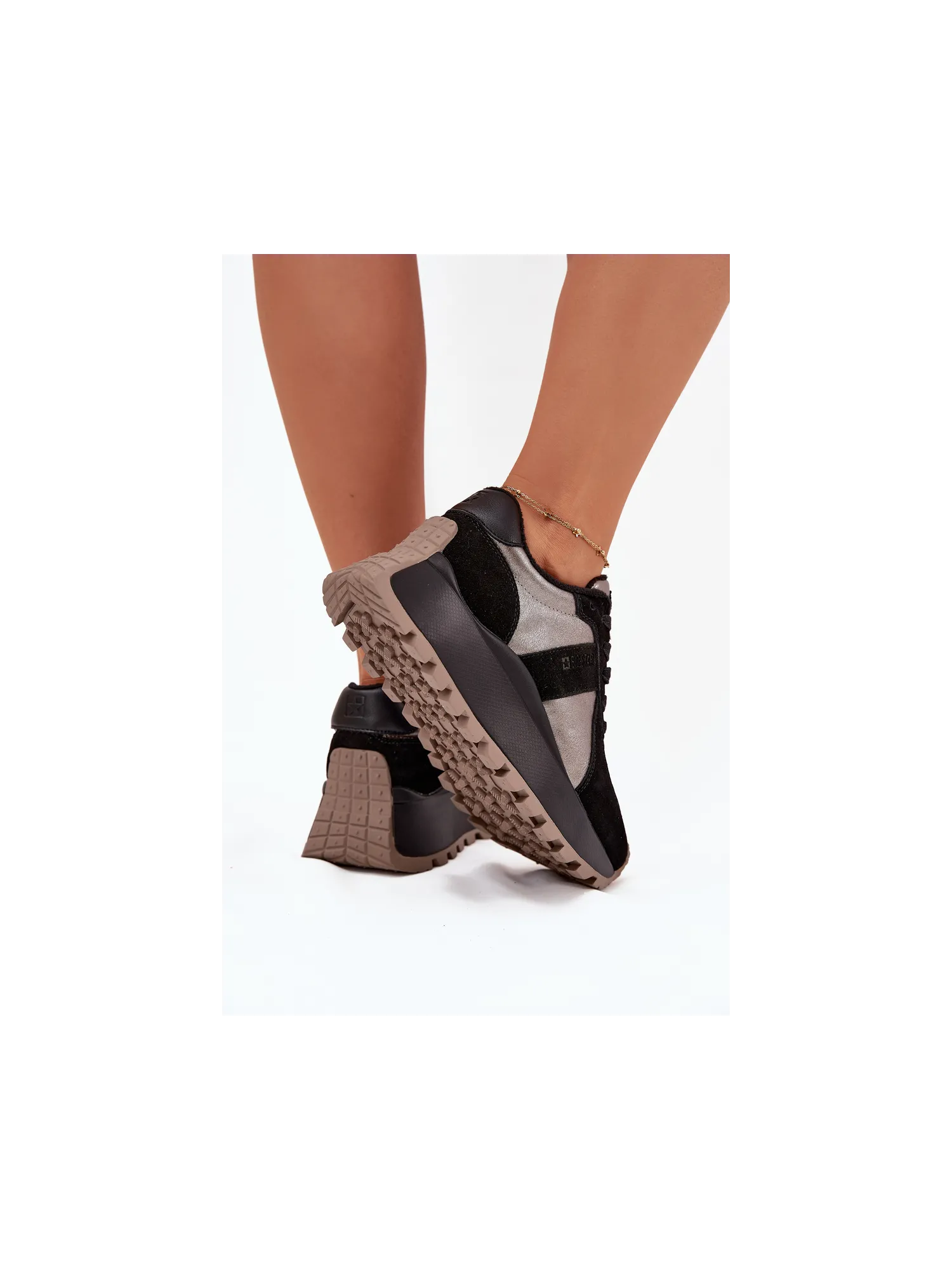 Women's Suede Sneakers Insulated On Platform Big Star OO274A217 HI-POLY SYSTEM Black