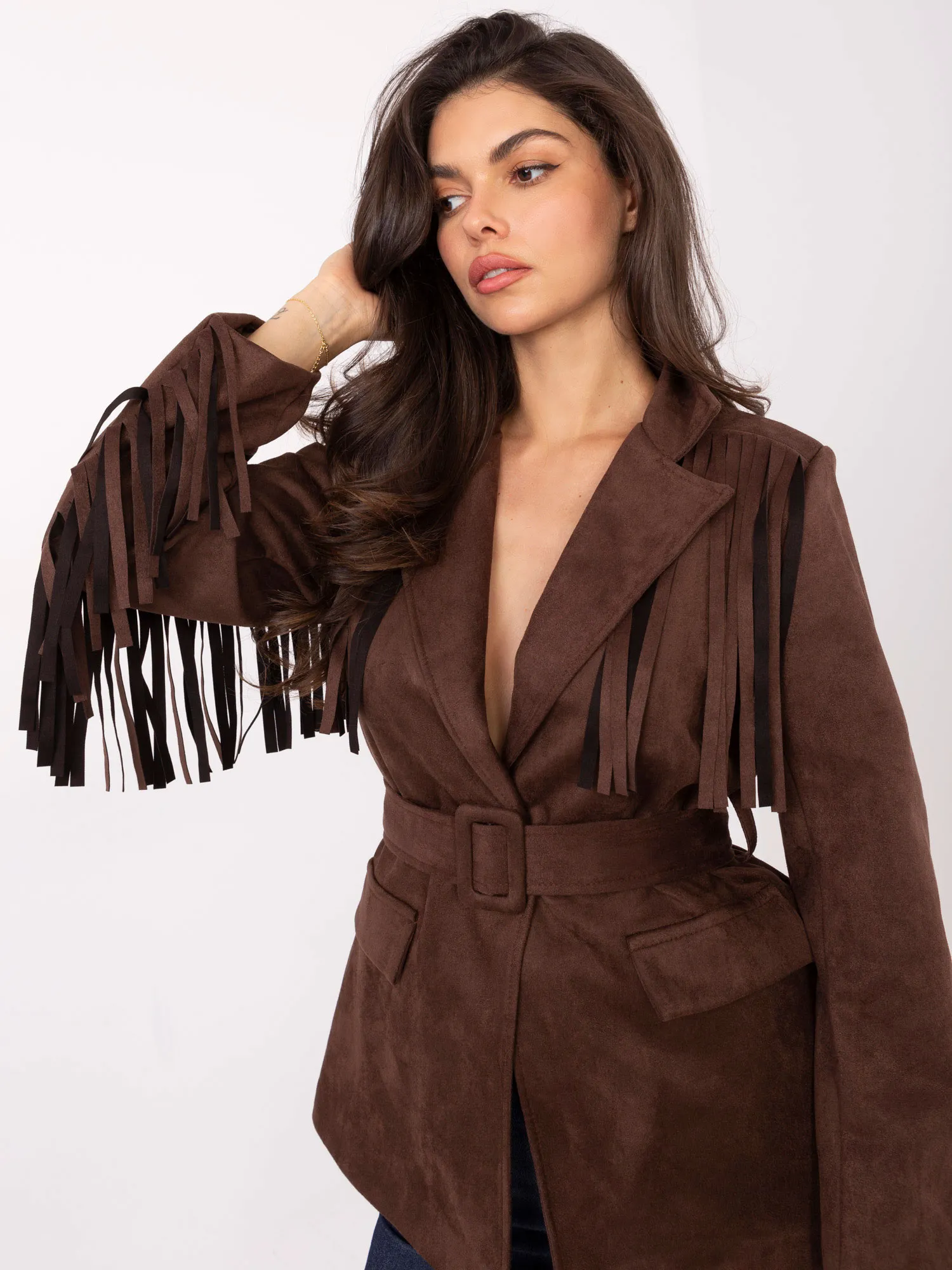 Wymiary marynarki w rozmiarze one size: szerokość pod pachami - 50 cm, długość całkowita - 71 cm, długość rękawa - 61 cm (od szwu), szerokość w biodrach - 51 cm.