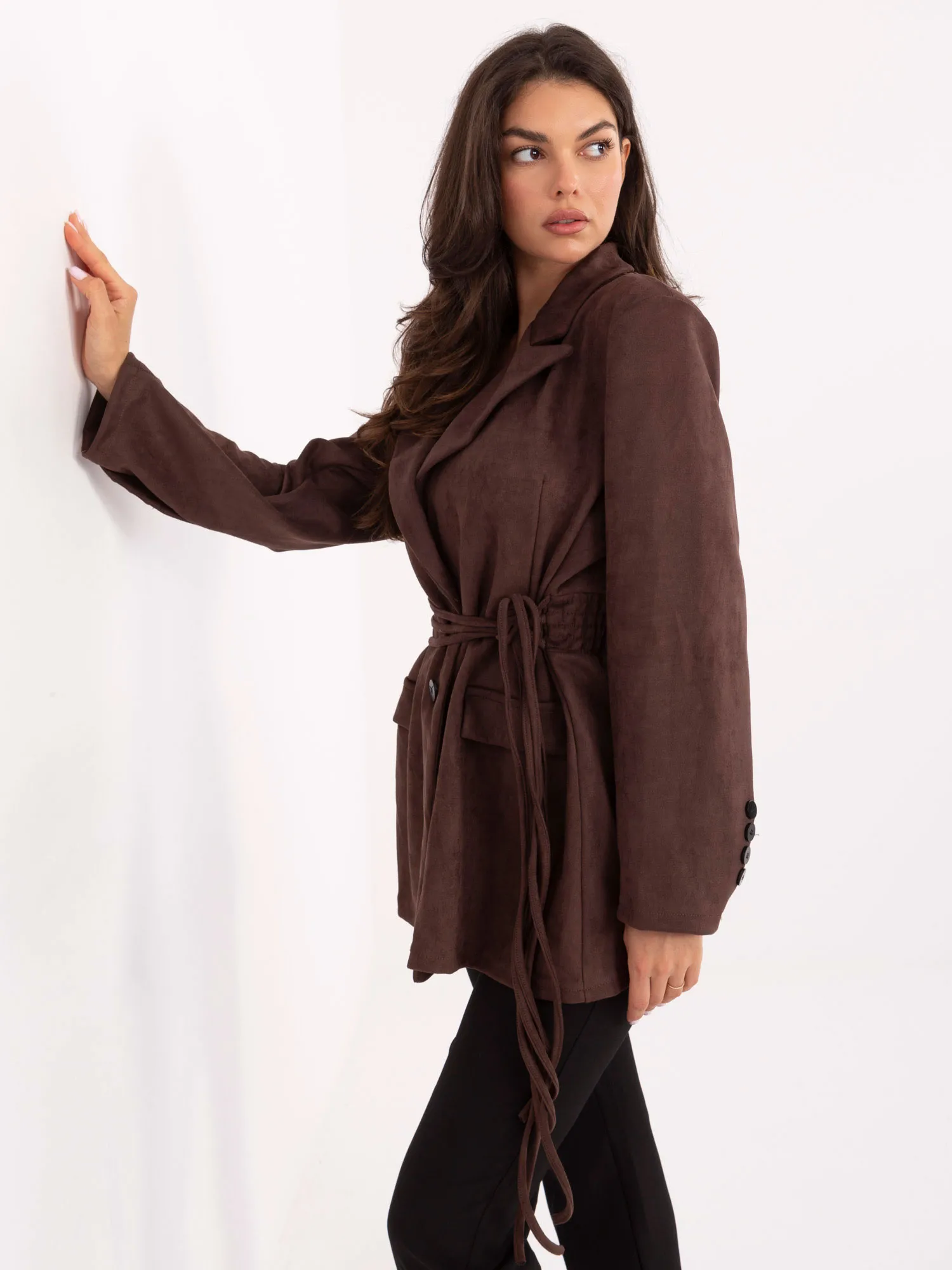Wymiary płaszcza w rozmiarze S/M mierzone na płasko: szerokość pod pachami - 52 cm, długość rękawa - 61 cm (od szwu), szerokość w biodrach - 57 cm, szerokość w talii - 55 cm, długość całkowita - 77 cm.