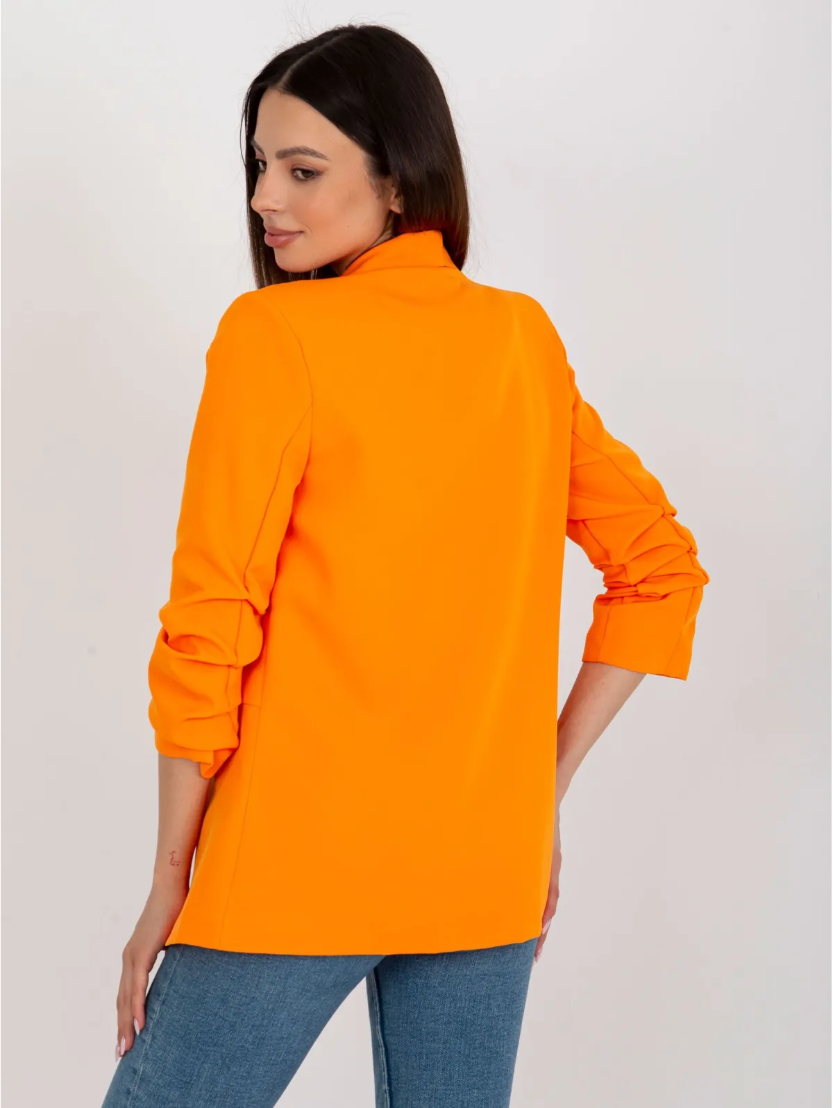 Švarko tipo apsiausto S dydžio išmatavimai: krūtinė - 51 cm, rankovių ilgis - 44 cm, bendras ilgis - 72 cm.