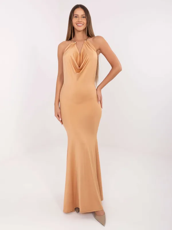 Wymiary sukienki w rozmiarze one size mierzone na płasko: szerokość pod pachami - 39 cm, szerokość w talii - 34 cm, szerokość w biodrach - 39 cm, długość całkowita - 160 cm.