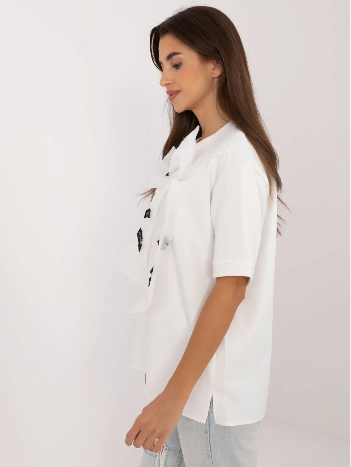 - Modelis dėvi S/M dydį. Modelio išmatavimai: ūgis 172 cm, krūtinė 88 cm, juosmuo 63 cm, klubai 92 cm.