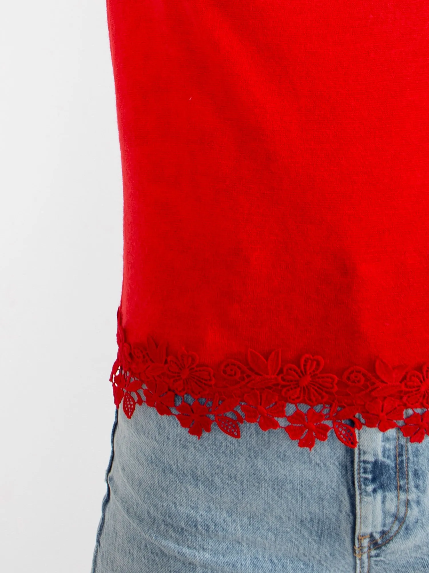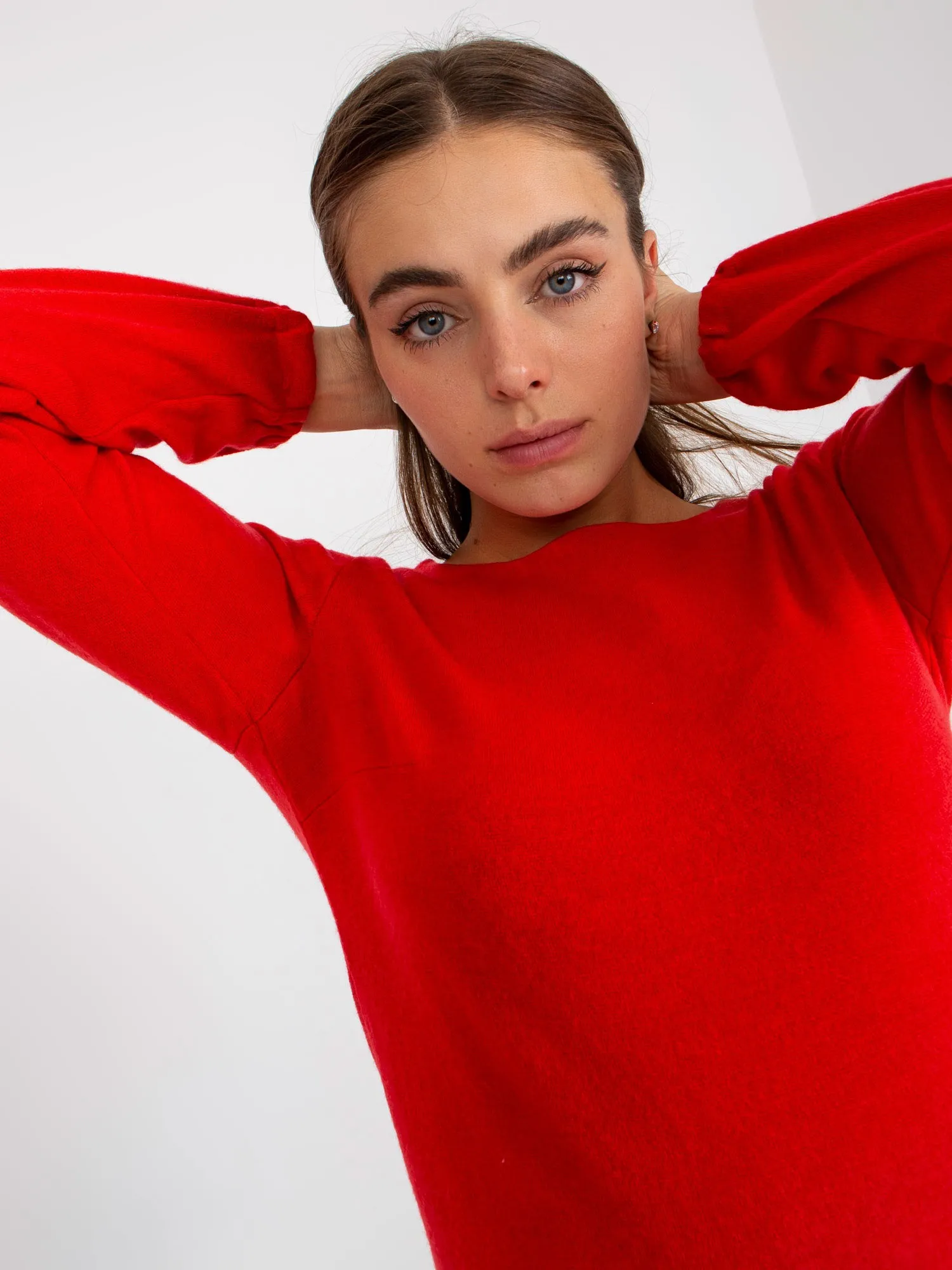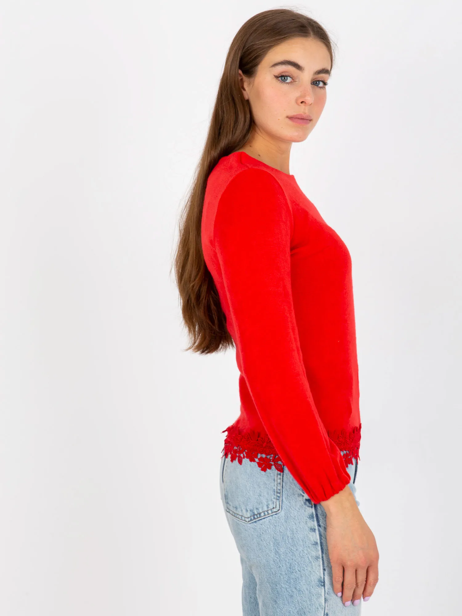Czerwona bluzka na co dzień z okrągłym dekoltem .