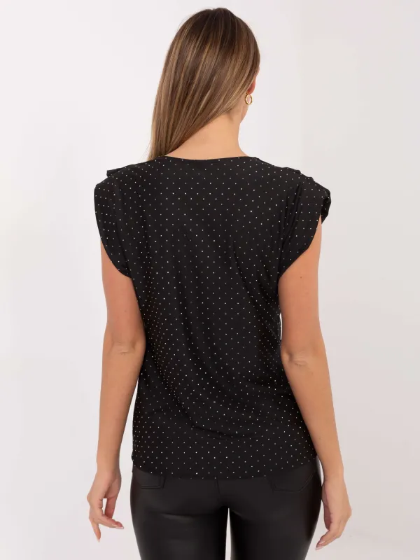 Wymiary bluzki w rozmiarze one size: szerokość pod pachami - 48 cm, szerokość na dole - 49 cm, długość całkowita - 66 cm.