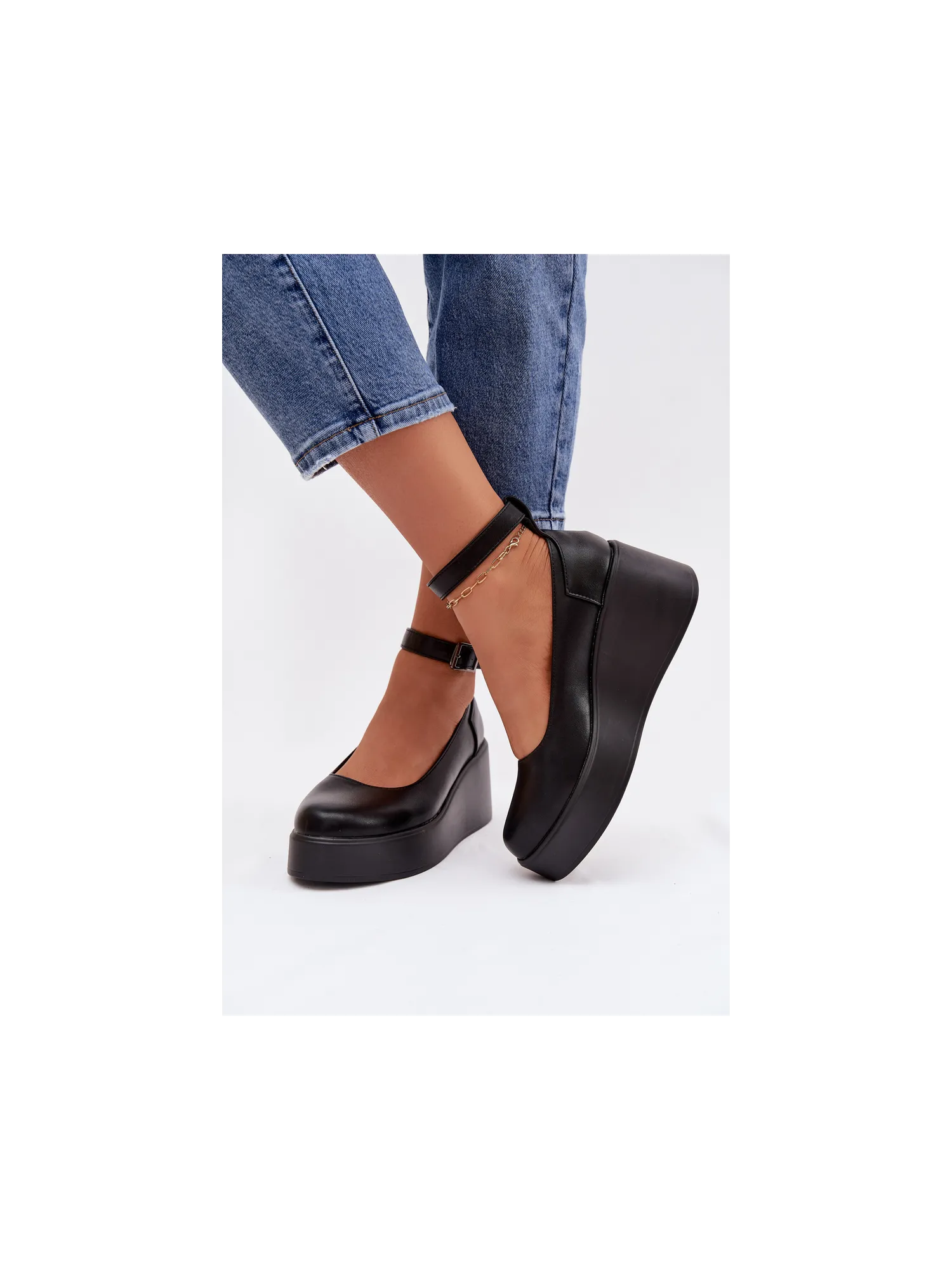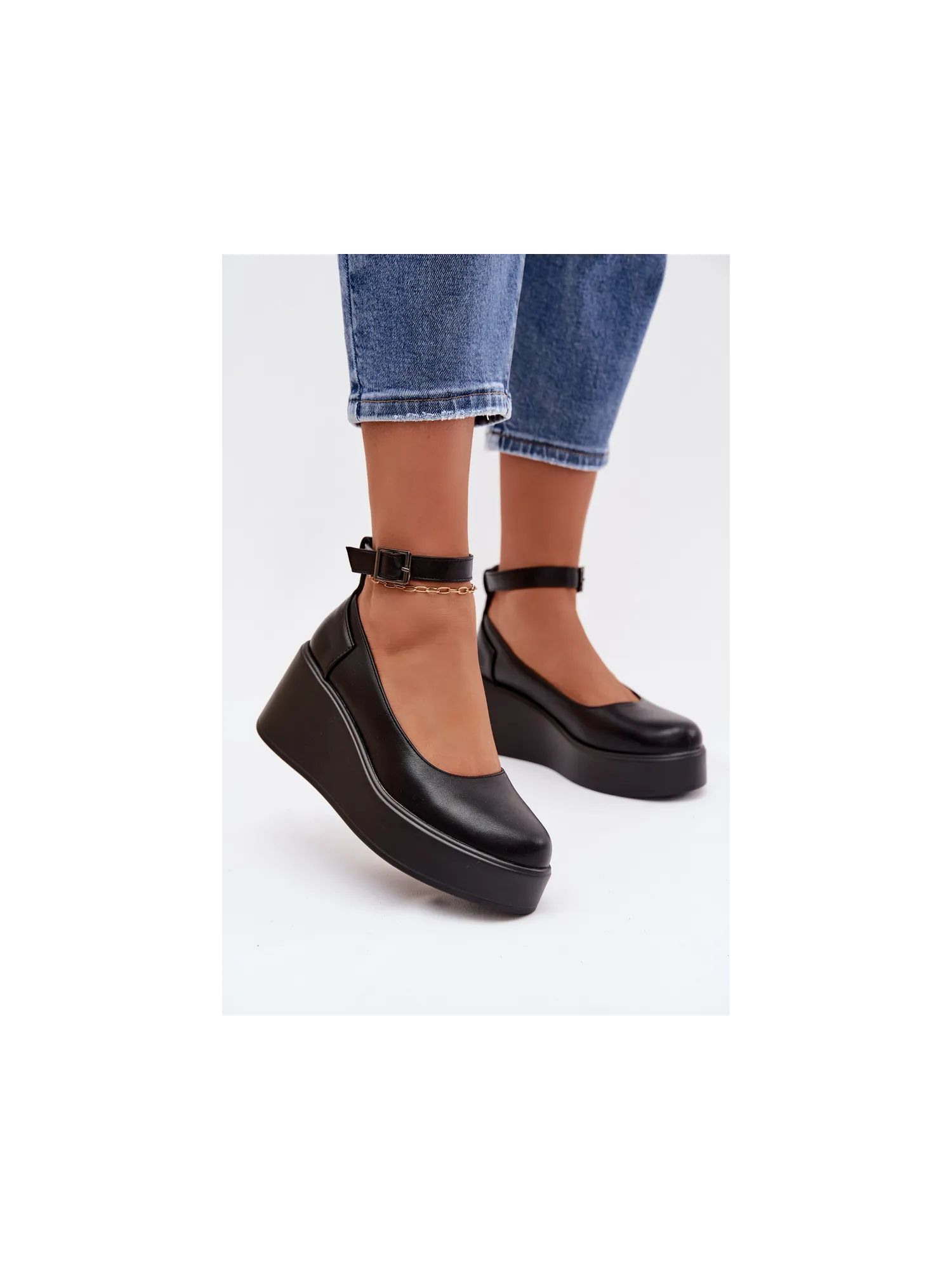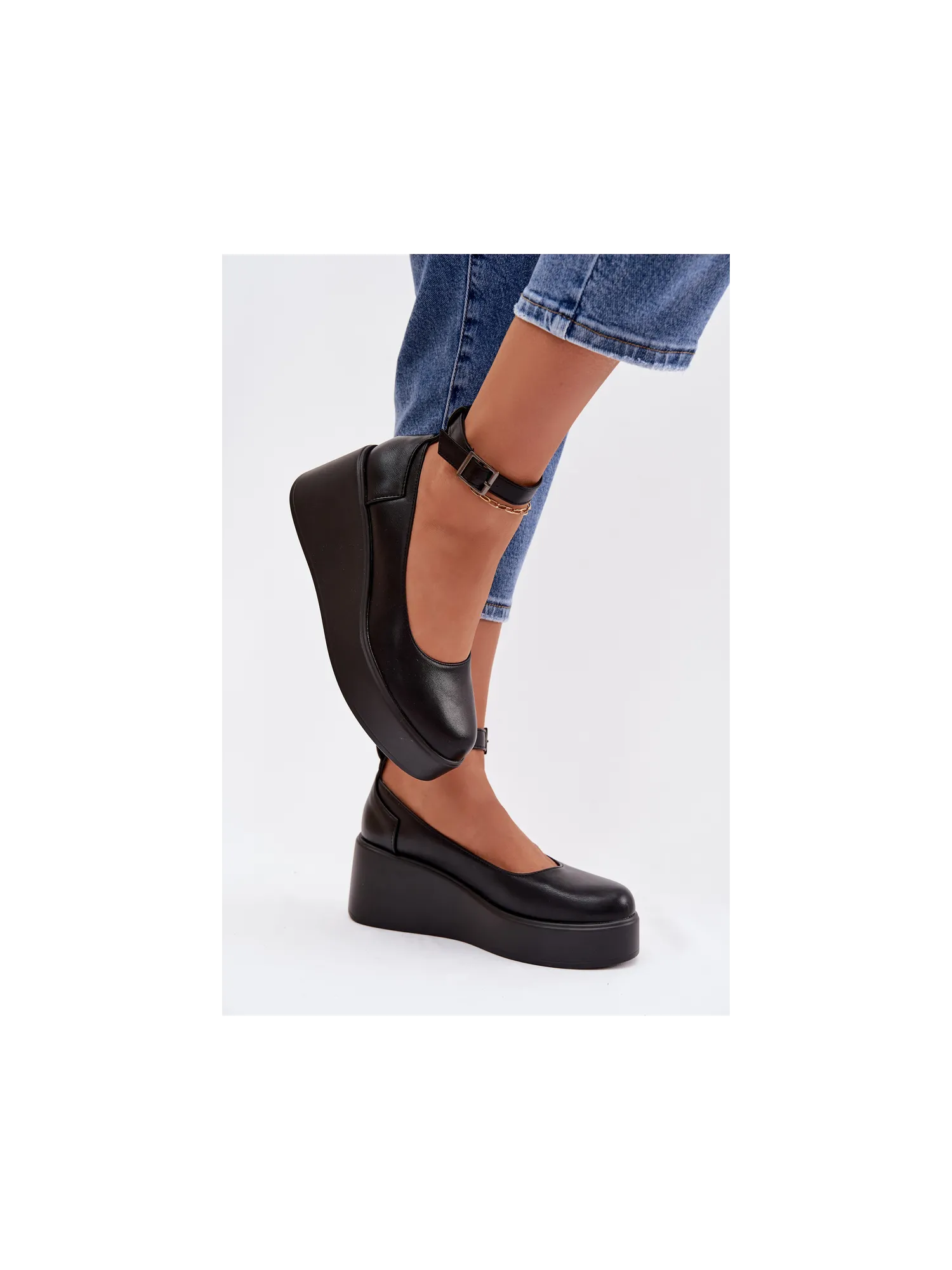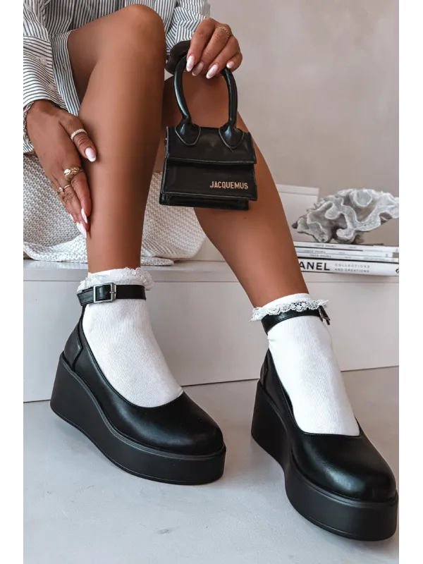 Moteriški mokasinai iš eko odos. Platforminis modelis suteikia komforto ir subtiliai paryškina siluetą. Kulkšnies dirželis suteikia stabilumo ir moteriškumo, o apvalios noselės suteikia bendram įvaizdžiui klasikinį, subtilų įvaizdį. Šie mokasinai puikiai tinka tiek kasdieniam stiliui, tiek elegantiškesniems ansambliams. Renkantis dydį, prašome žiūrėti dydžių lentelę.