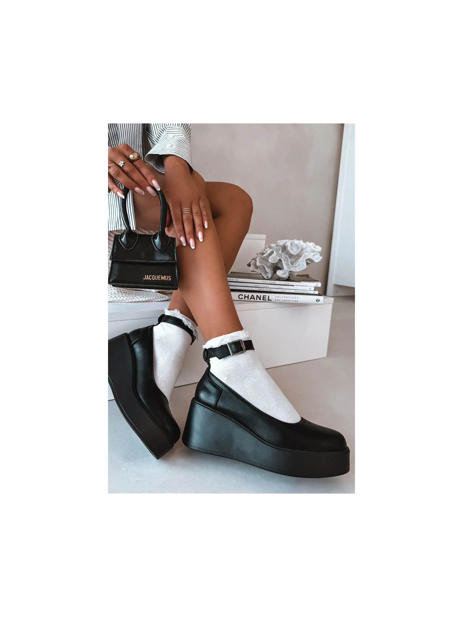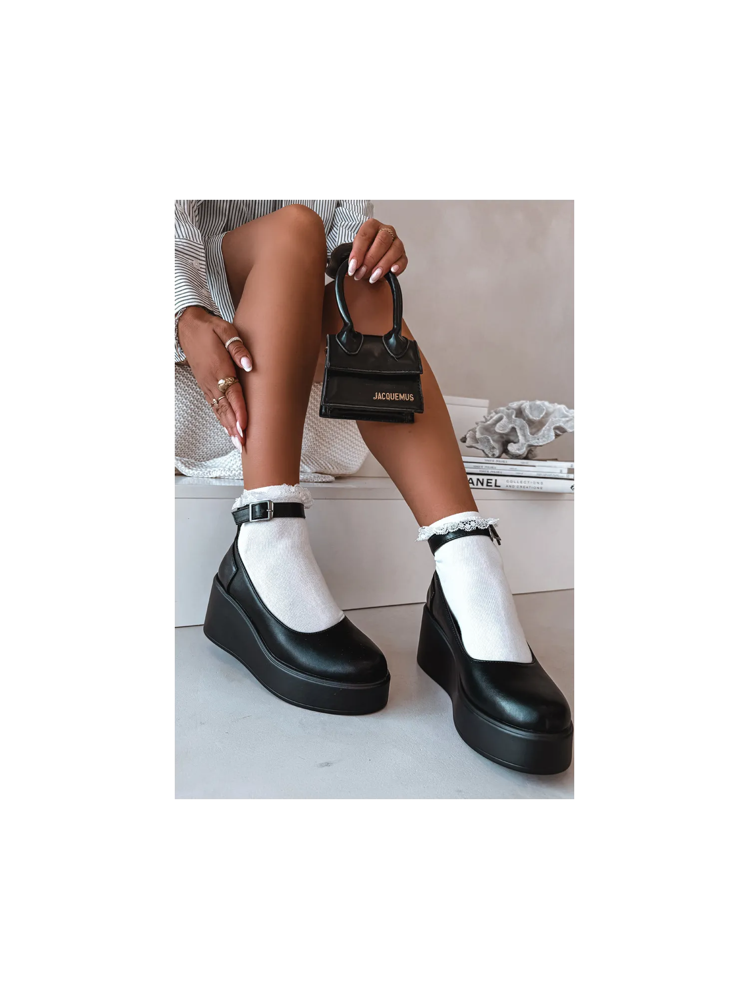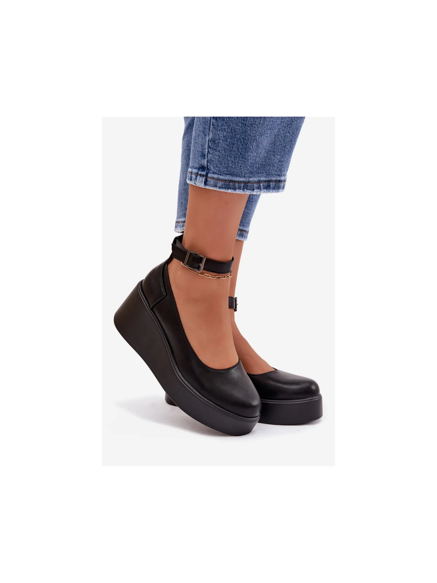 Moteriški mokasinai iš eko odos. Platforminis modelis suteikia komforto ir subtiliai paryškina siluetą. Kulkšnies dirželis suteikia stabilumo ir moteriškumo, o apvalios noselės suteikia bendram įvaizdžiui klasikinį, subtilų įvaizdį. Šie mokasinai puikiai tinka tiek kasdieniam stiliui, tiek elegantiškesniems ansambliams. Renkantis dydį, prašome žiūrėti dydžių lentelę.