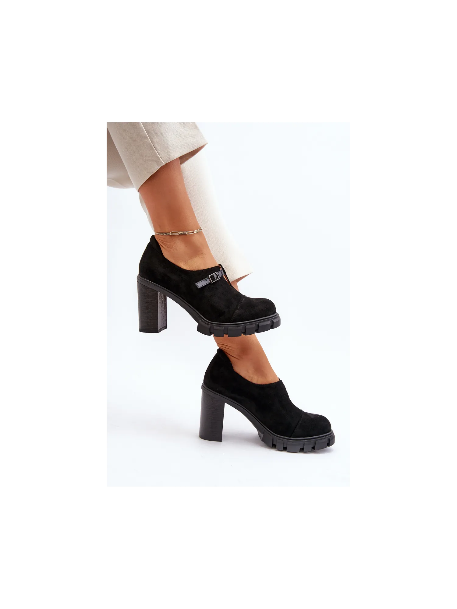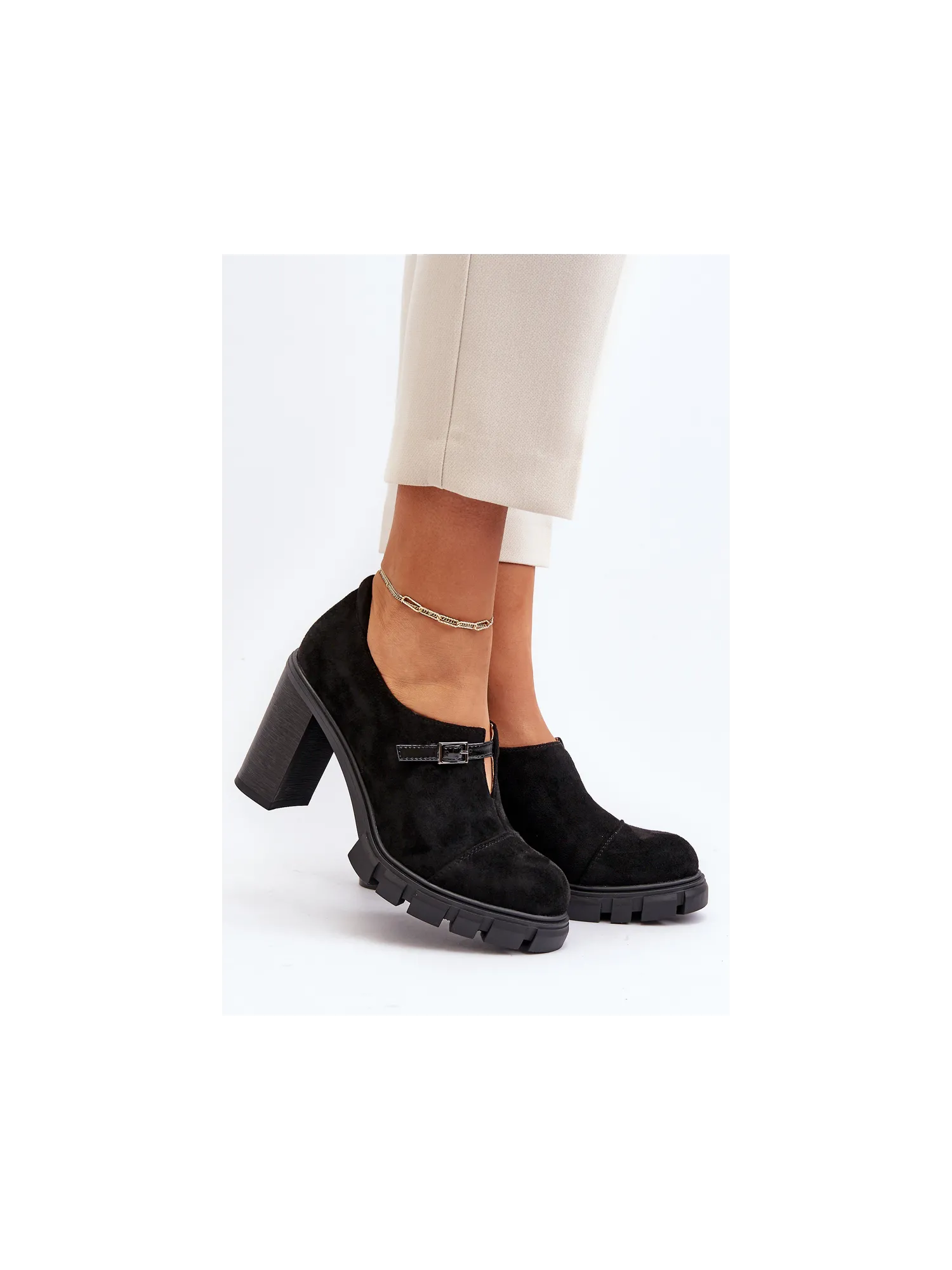 Žavingi Jezzi prekės ženklo batai. Pagaminti iš ekologiškos zomšos, jie yra tikras perlas jūsų garderobe. Jų stabilus stulpelio formos kulnas suteikia komfortą dėvint, o suapvalinti pirštai suteikia subtilumo. Be to, ant viršutinės dalies uždėtas dirželis su sagtimi, suteikiantis jiems elegantišką ir stilingą išvaizdą. Puikiai tinkantys kasdienai ar ypatingoms progoms, šie batai yra ne tik madingas aksesuaras, bet ir patogi avalynė kojoms. Renkantis dydį, vadovaukitės dydžių lentele.