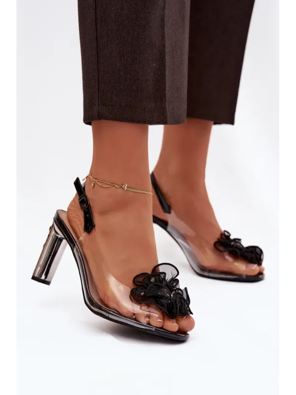Block Heel Sandals with Decoration and Crystals D&A MR52-236 Black