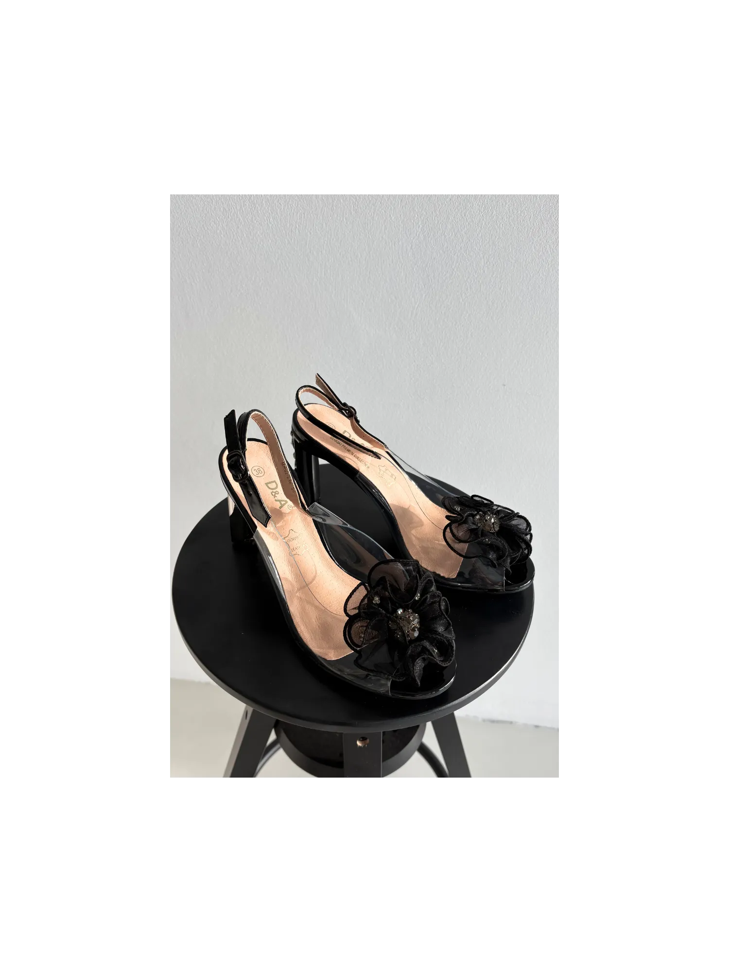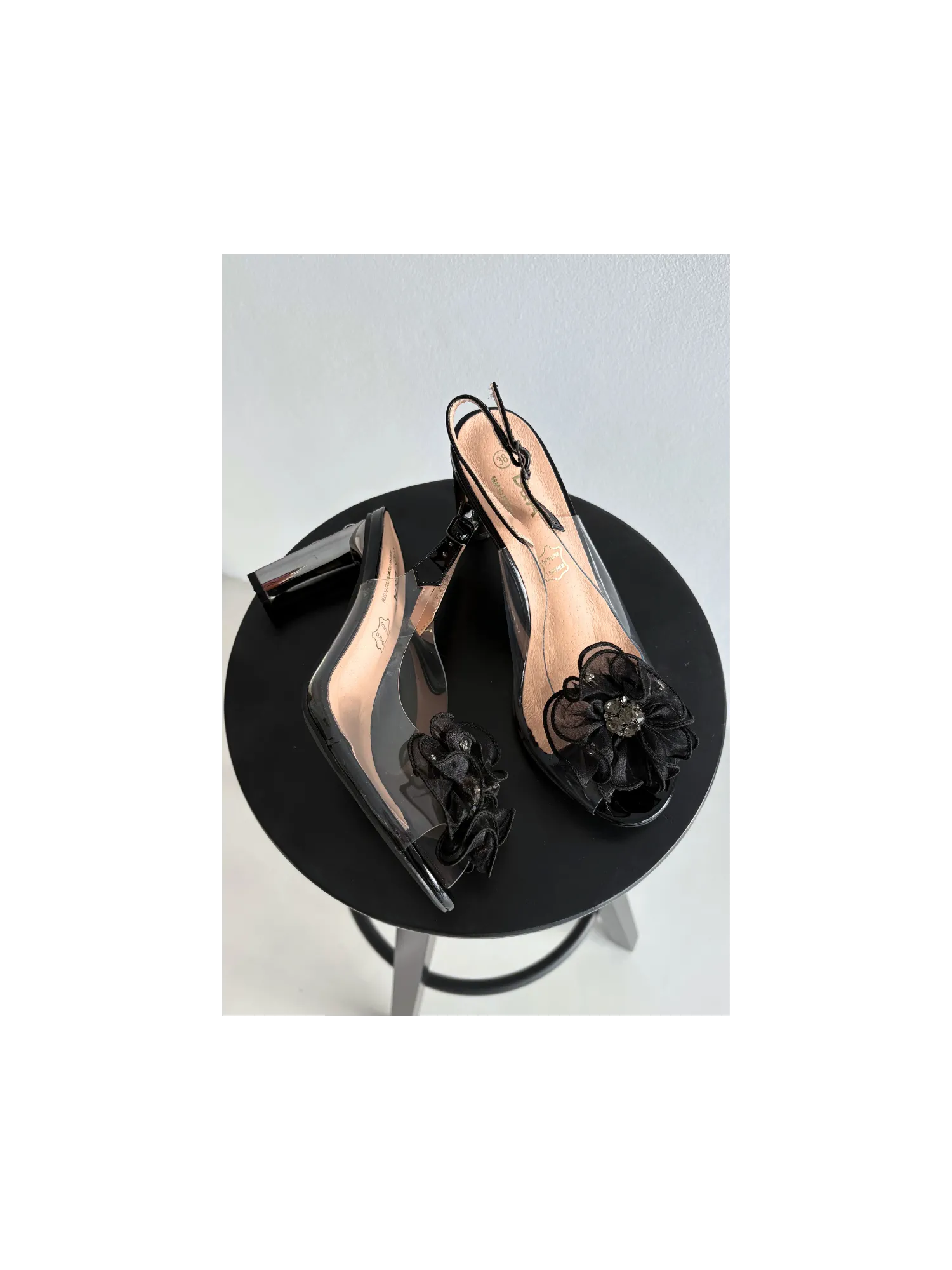 Elegant transparent sandals with a stable wedge heel are an ideal choice for special occasions. A delicate fabric flower placed at the front gives the whole a feminine character. The heel decorated with crystals shines effectively, adding a jewelry-like accent. The model with a buckle and adjustable strap allows for a precise fit to the foot, ensuring comfort and confidence in every step. They are perfect as a complement to elegant dresses, evening styles, and event outfits where style, detail, and elegance matter. When selecting size, please refer to the size chart below. When choosing a size, please refer to the size chart.