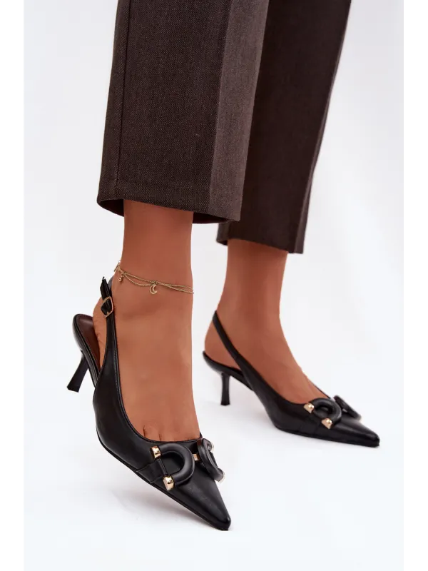 Moteriškos aukštakulnės basutės su dekoratyvinėmis detalėmis, juodos Brienne