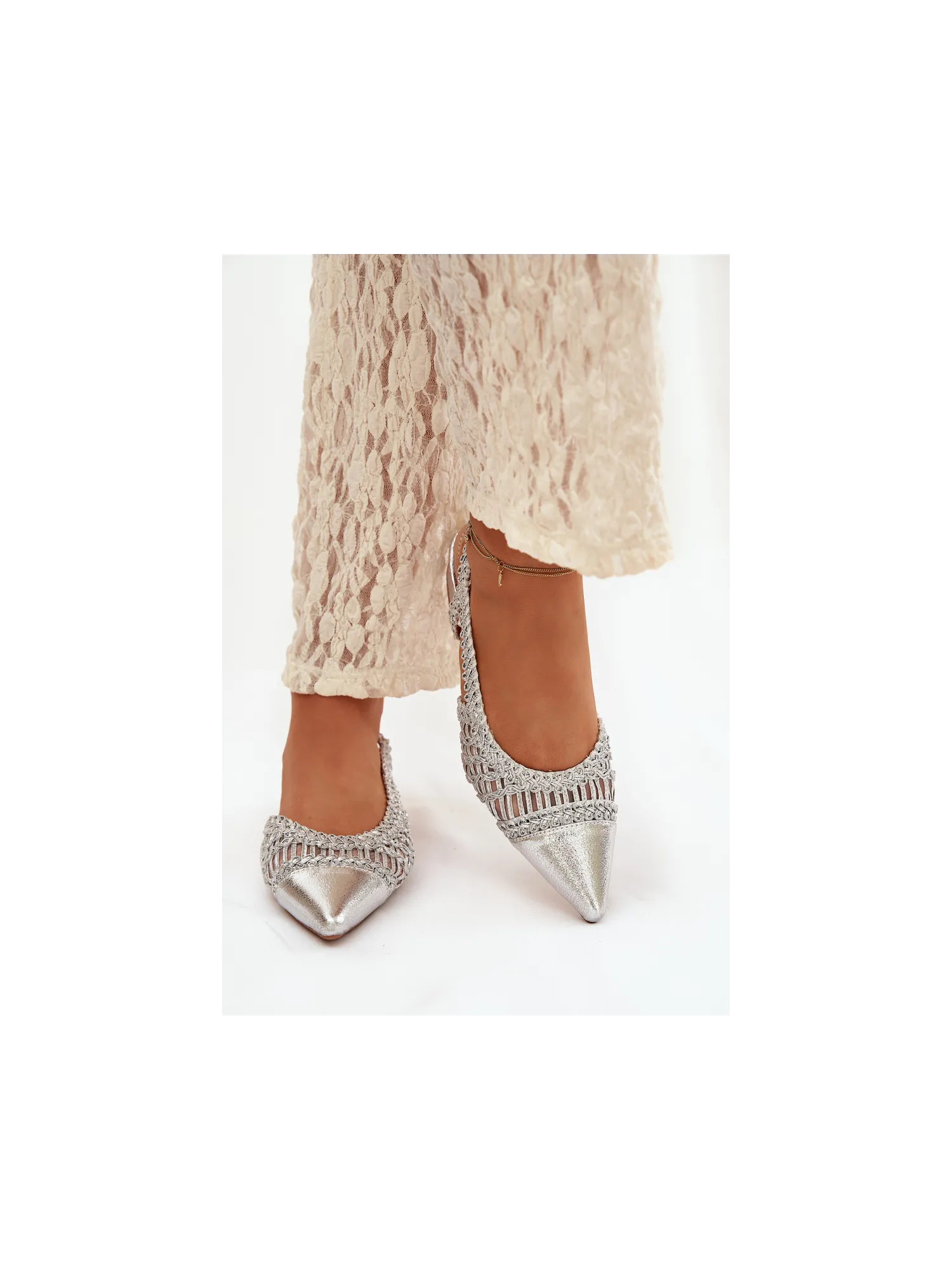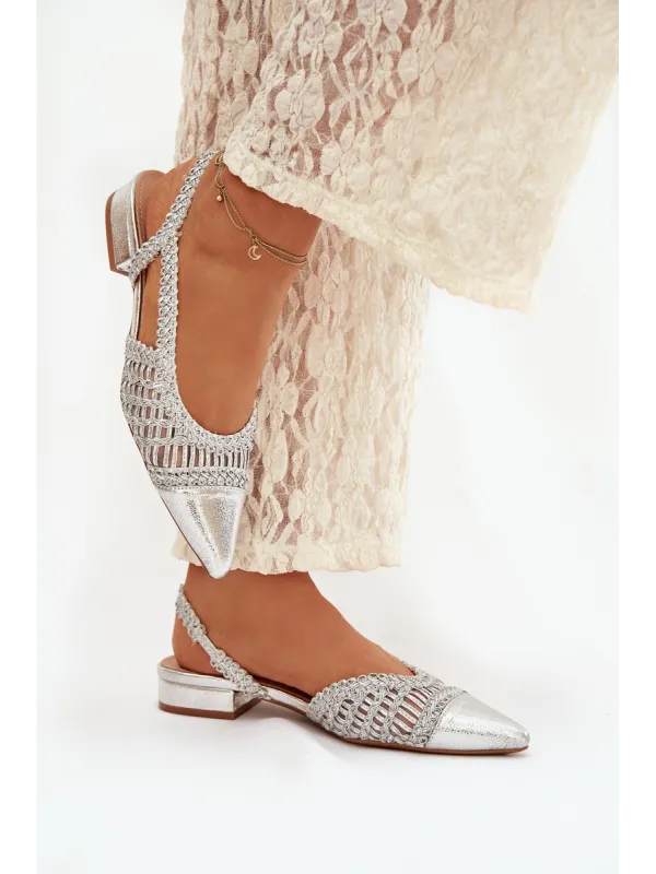 Moteriškos basutės su audimu ant bloko sidabro spalvos Nivorra