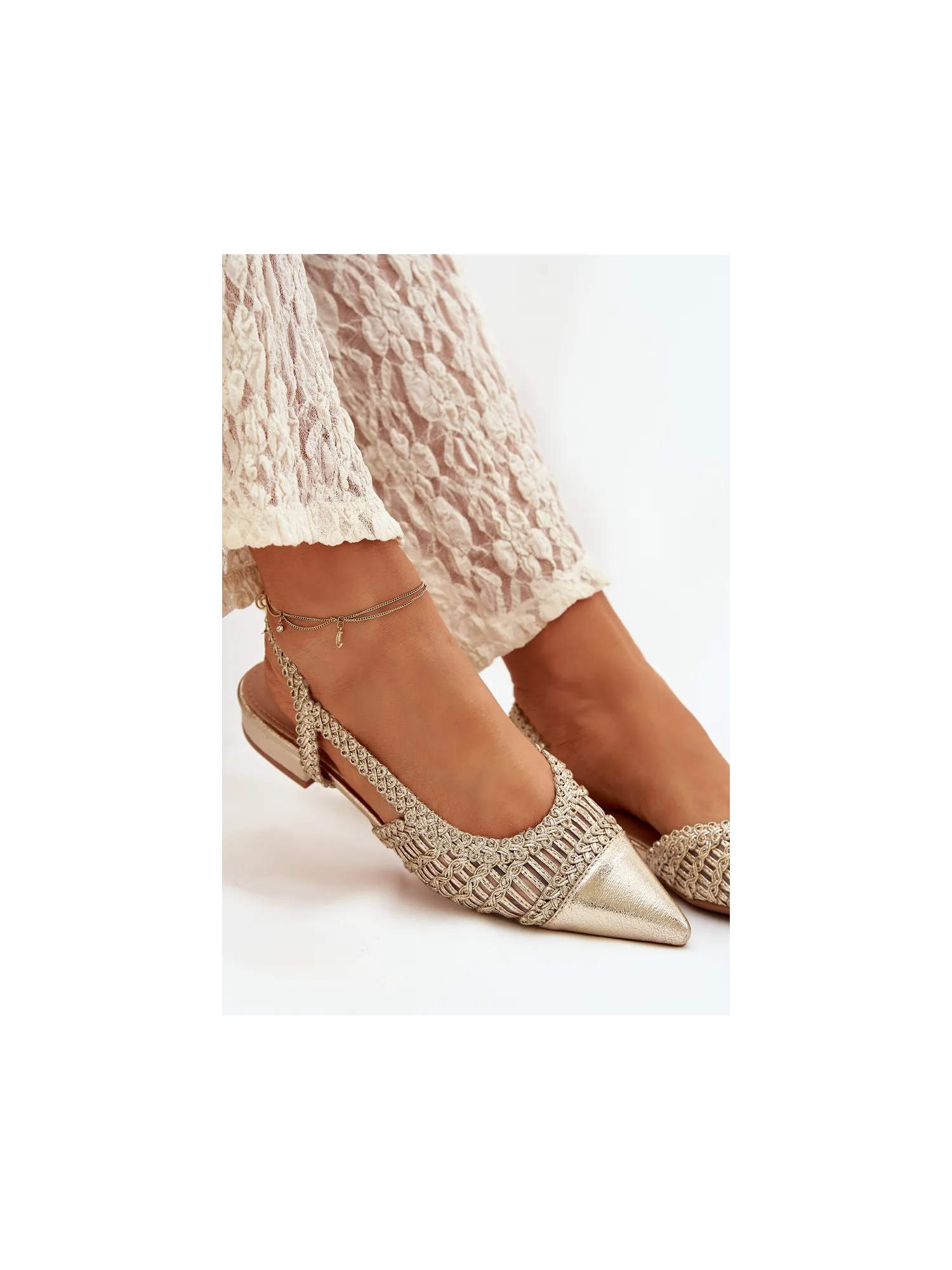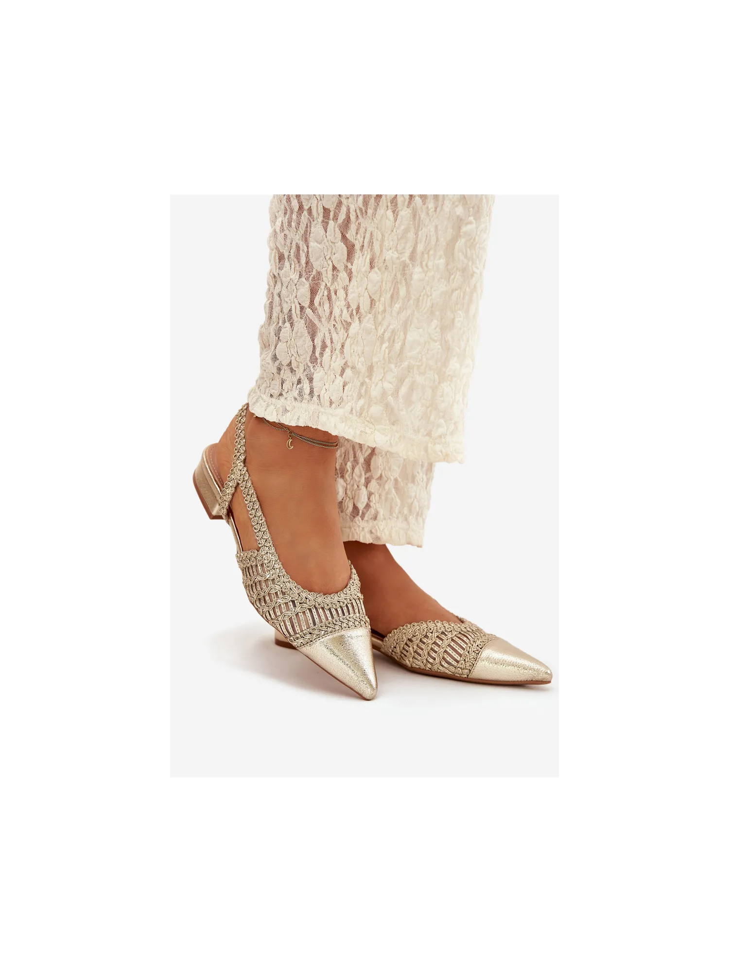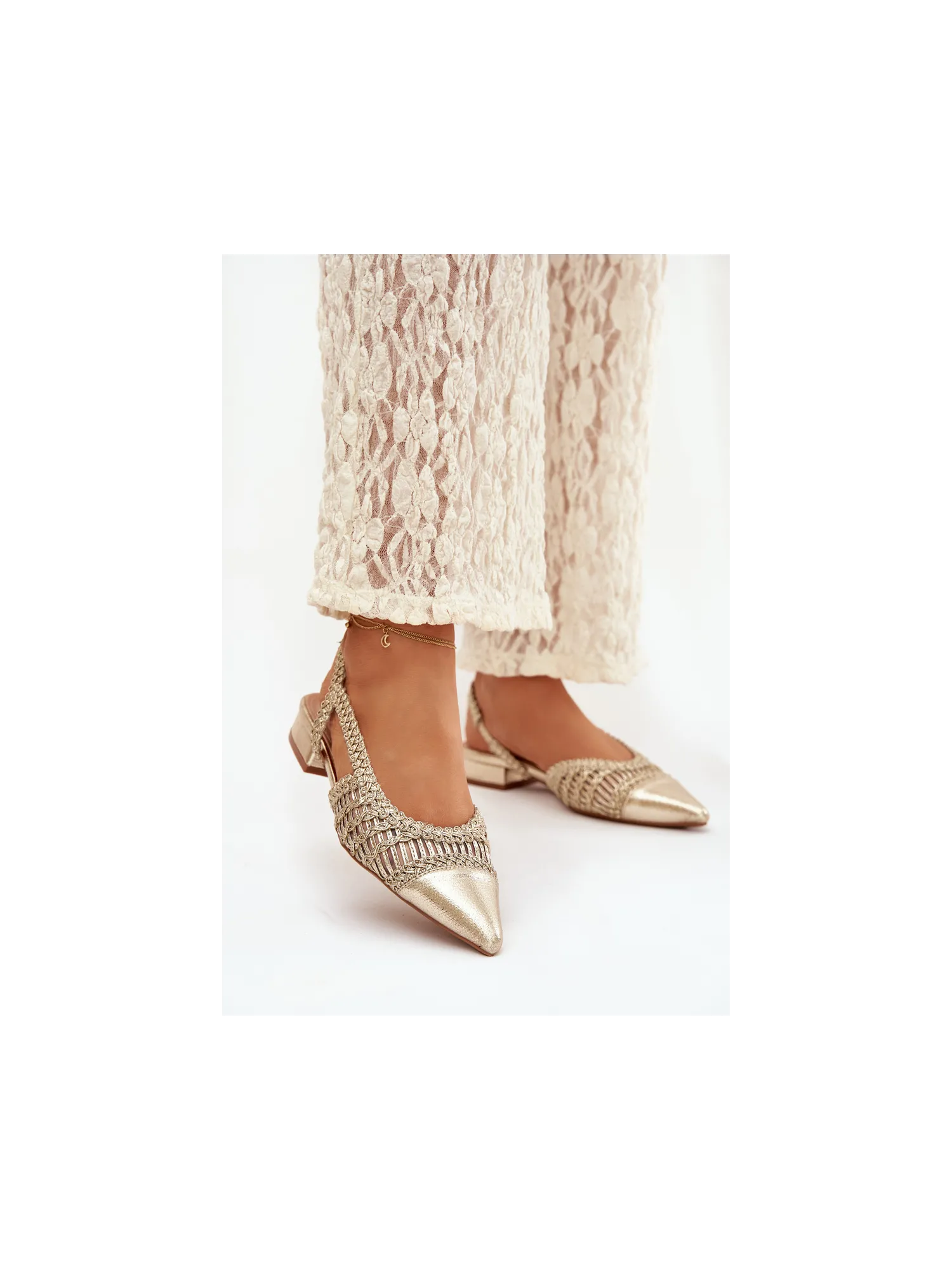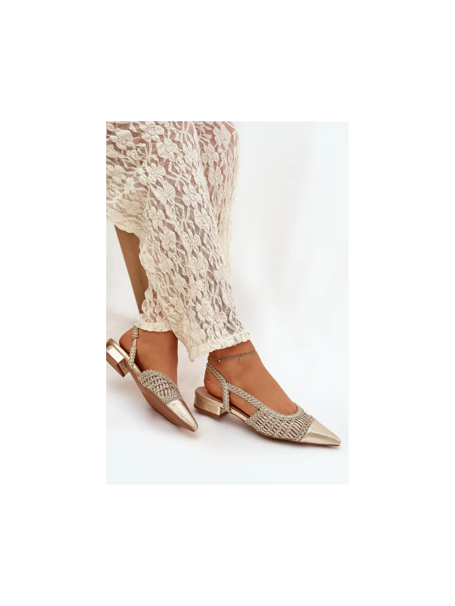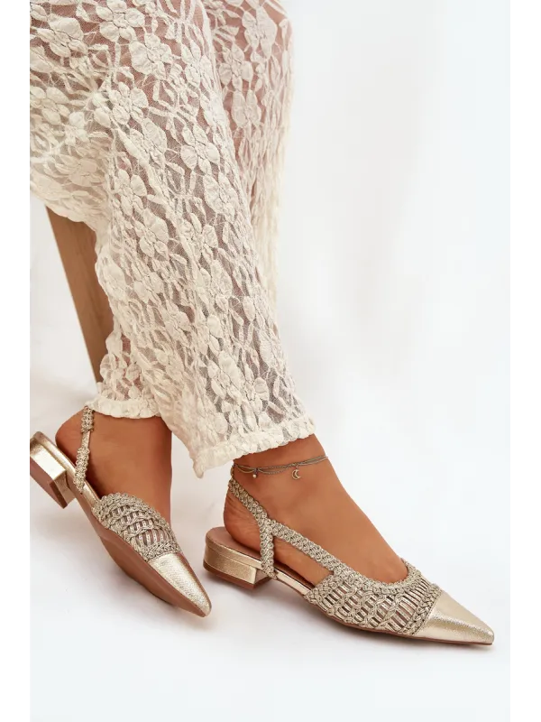 Moteriškos basutės su pynimo blokeliu auksinės spalvos Nivorra