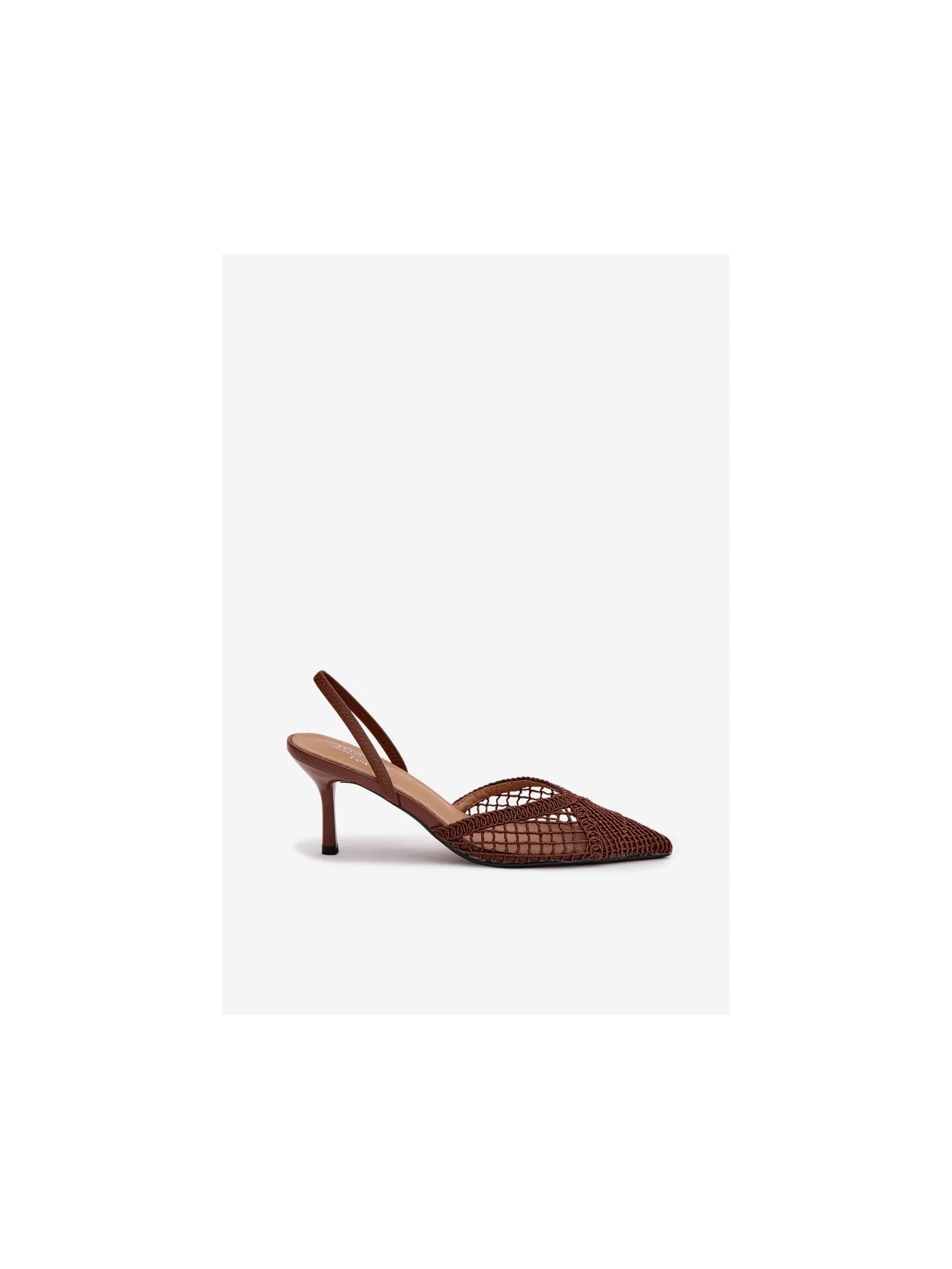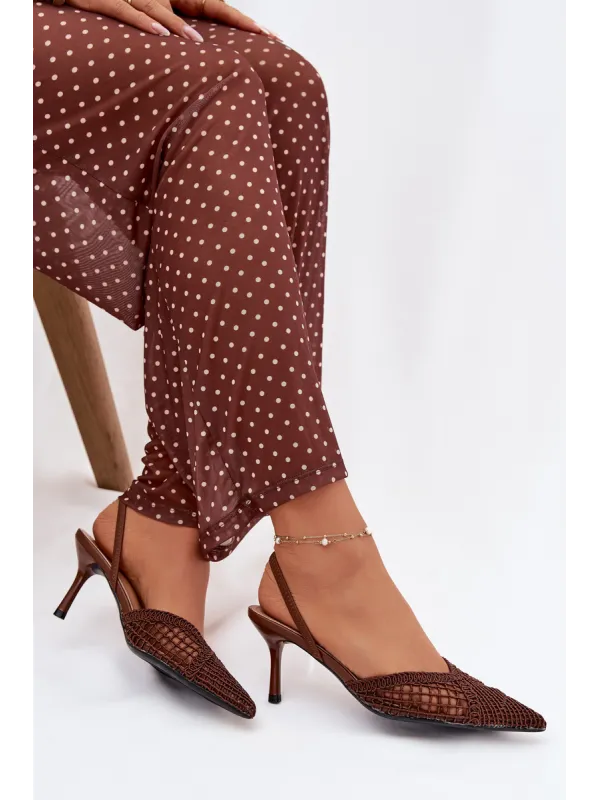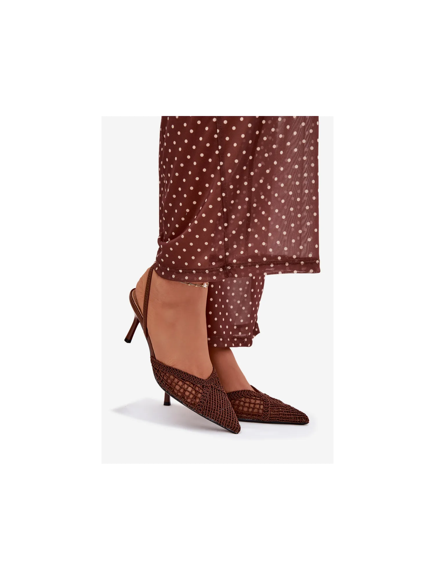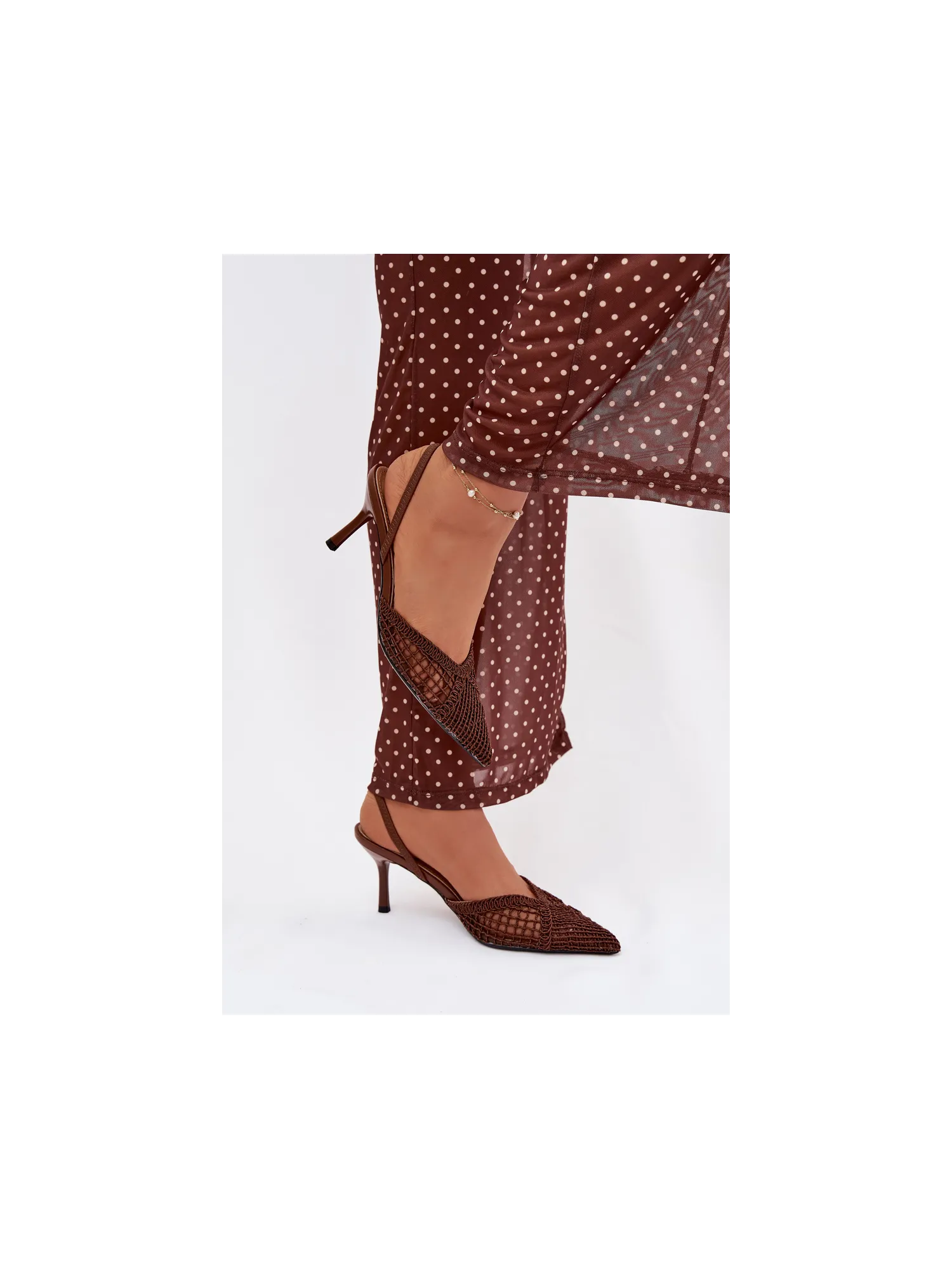 Women's sandals made from eye-catching woven material are an excellent choice for various occasions. The slender heel beautifully elongates the silhouette and adds a touch of femininity to the outfit. The pointed toes emphasize the classic, elegant design and give the overall look a timeless appearance. The model works perfectly as a stylish accent to dresses and trousers. When choosing a size, please refer to the size chart.