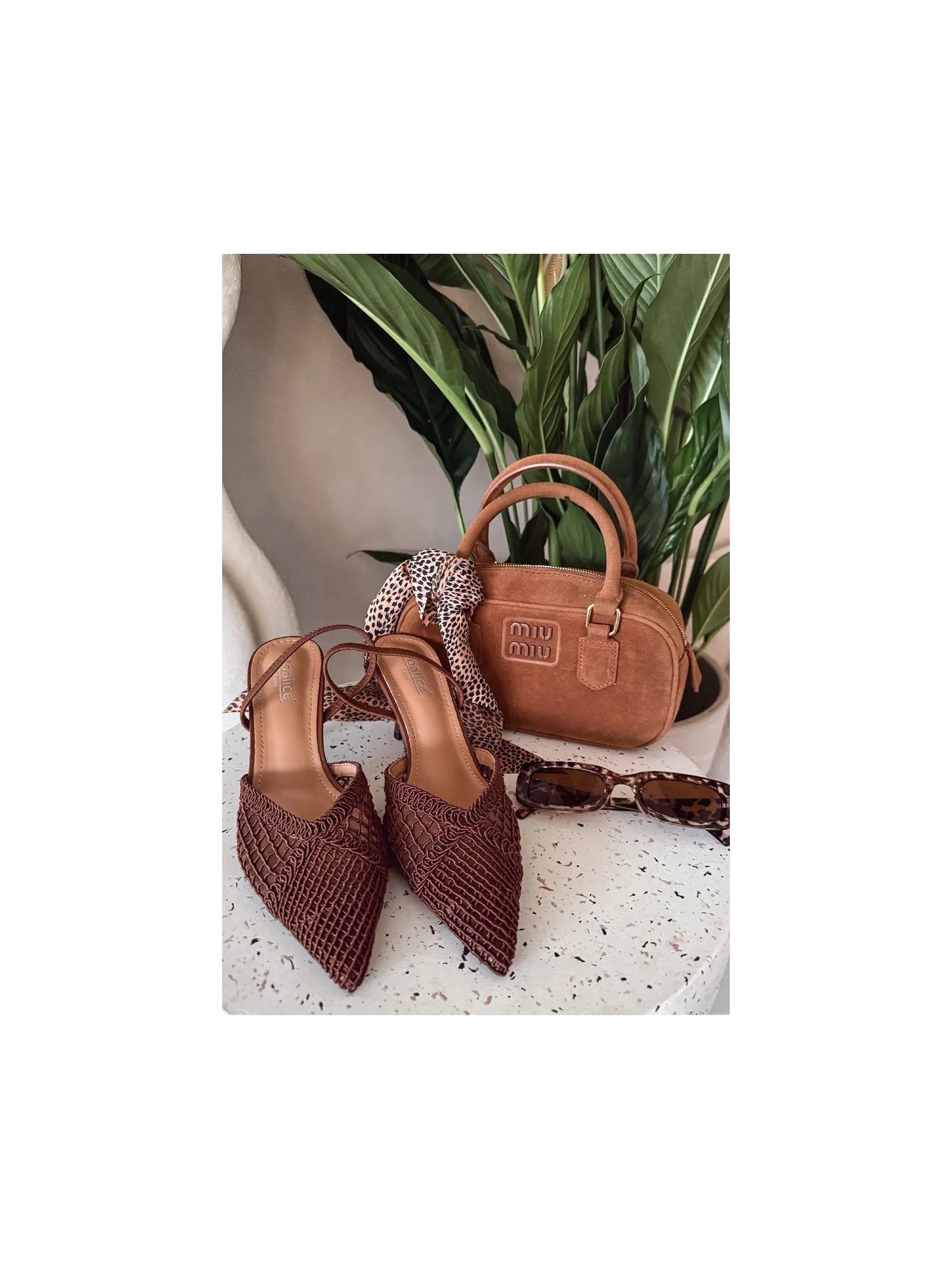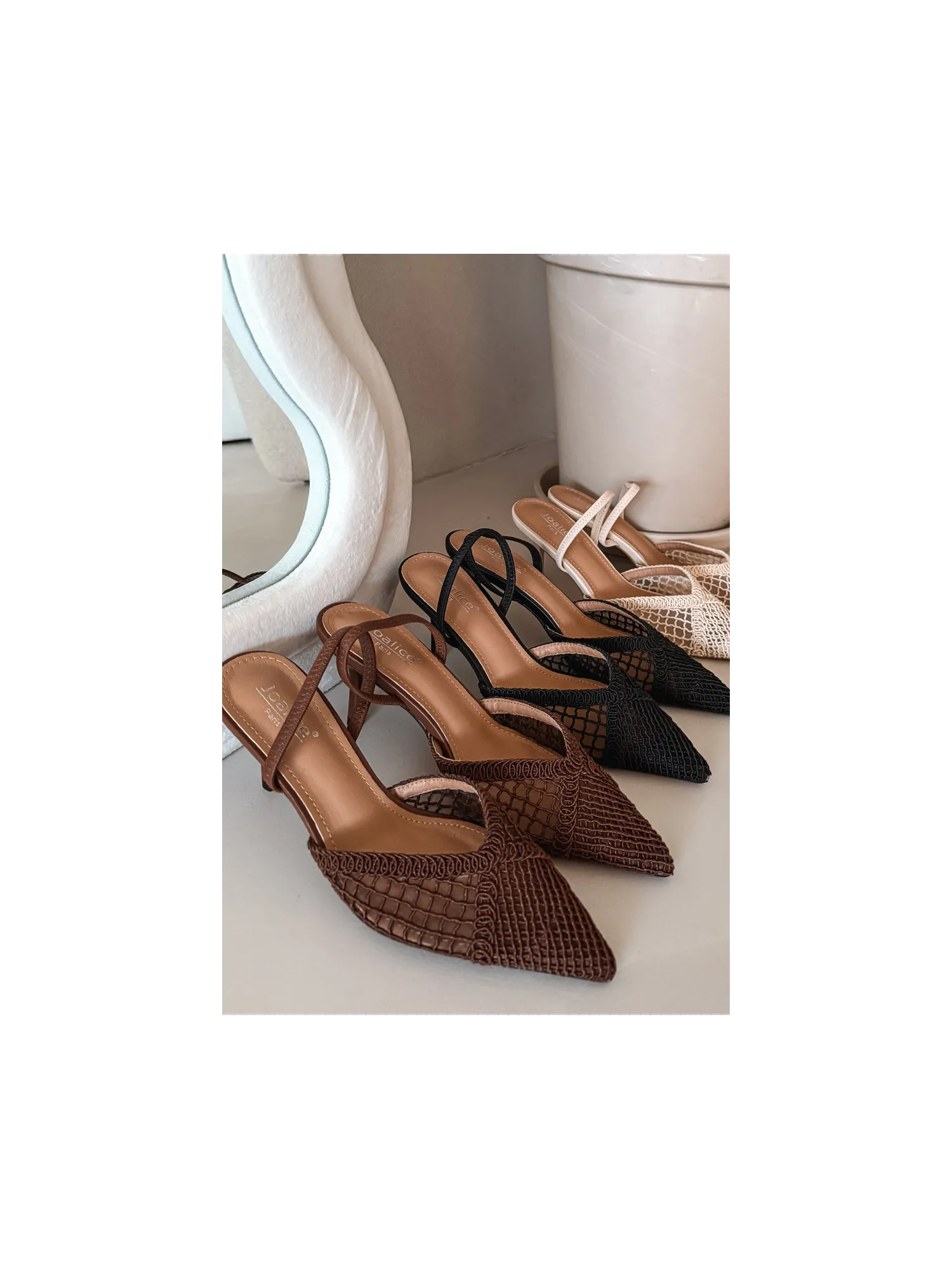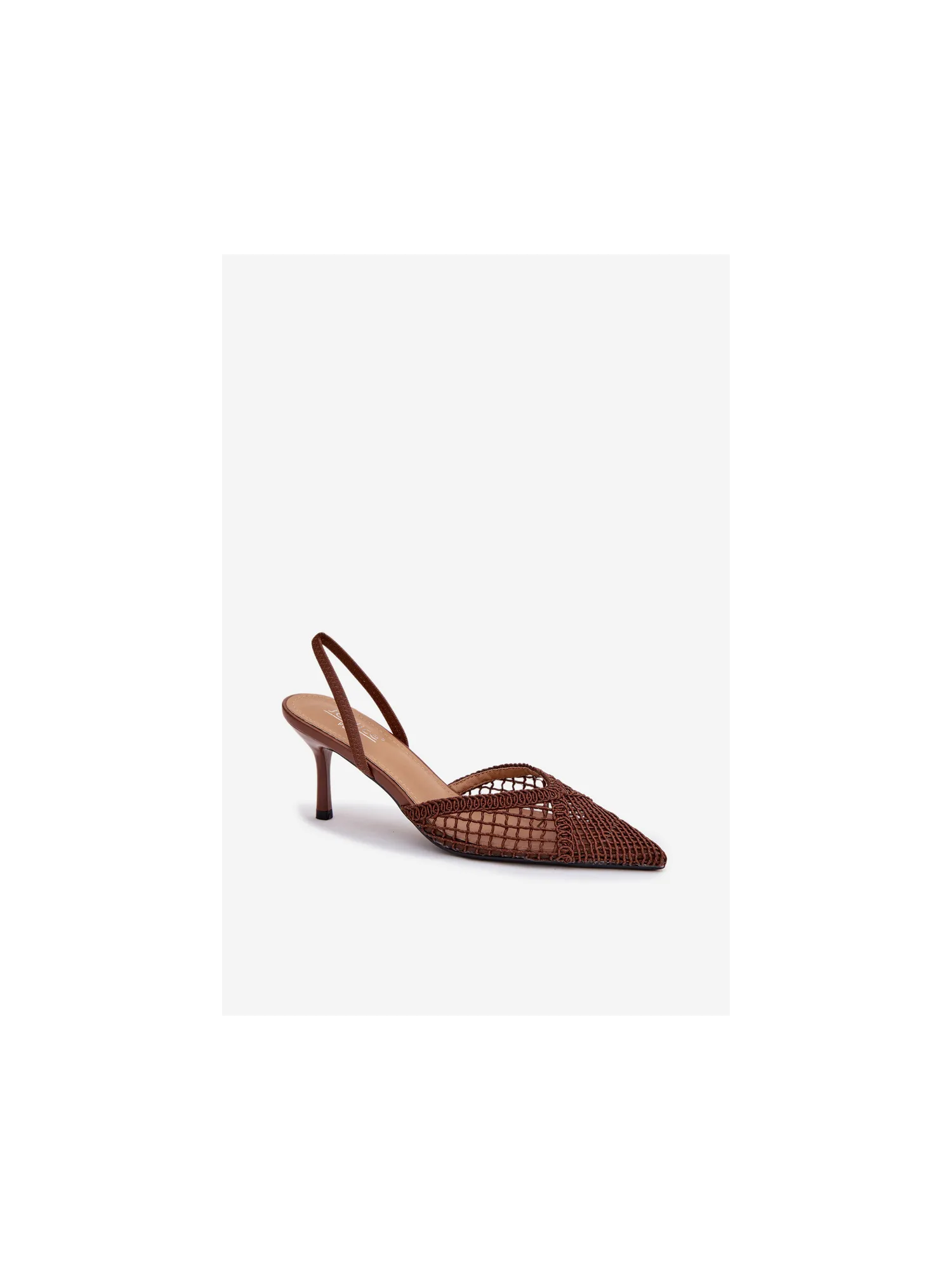 Women's sandals made from eye-catching woven material are an excellent choice for various occasions. The slender heel beautifully elongates the silhouette and adds a touch of femininity to the outfit. The pointed toes emphasize the classic, elegant design and give the overall look a timeless appearance. The model works perfectly as a stylish accent to dresses and trousers. When choosing a size, please refer to the size chart.