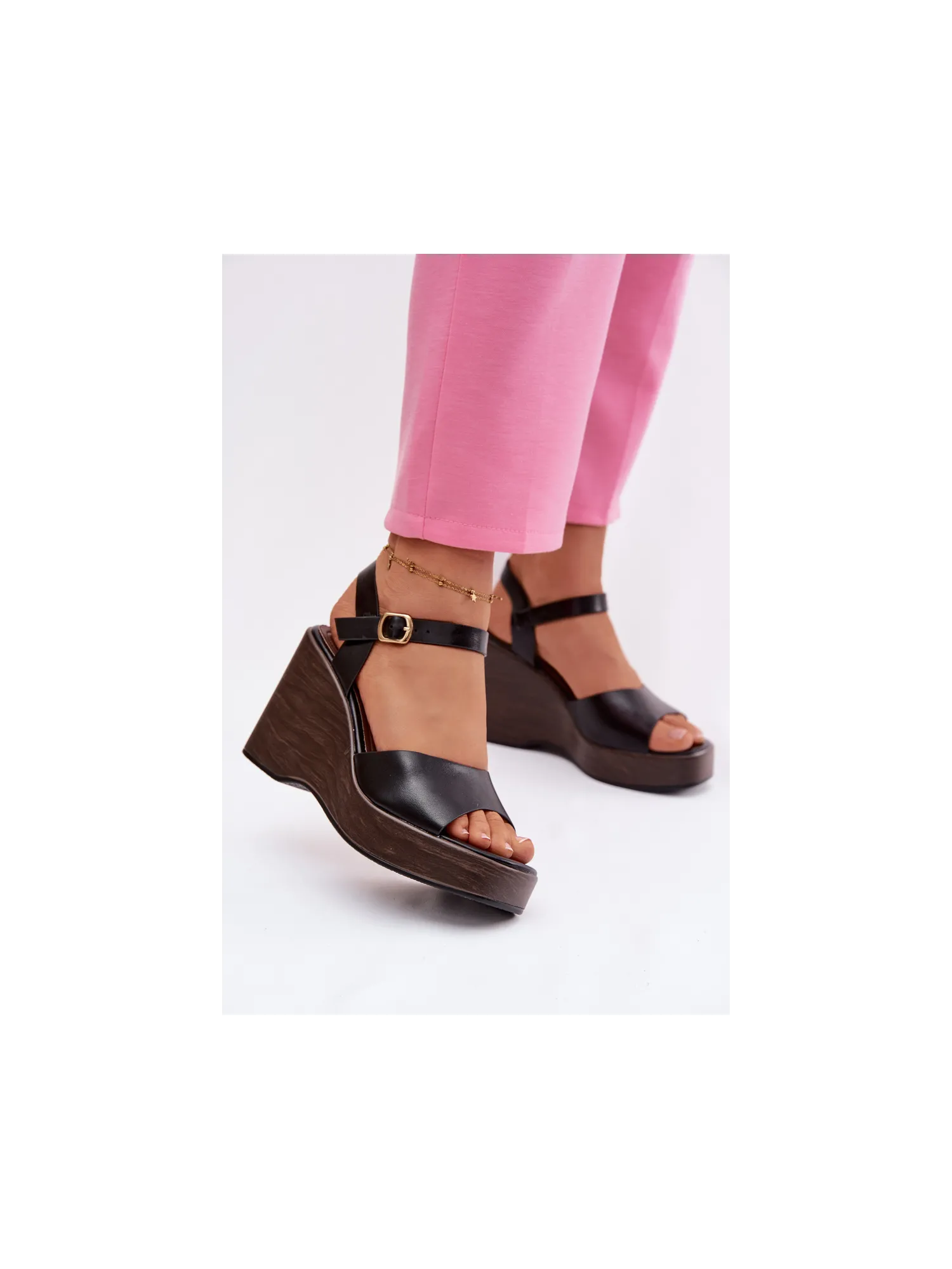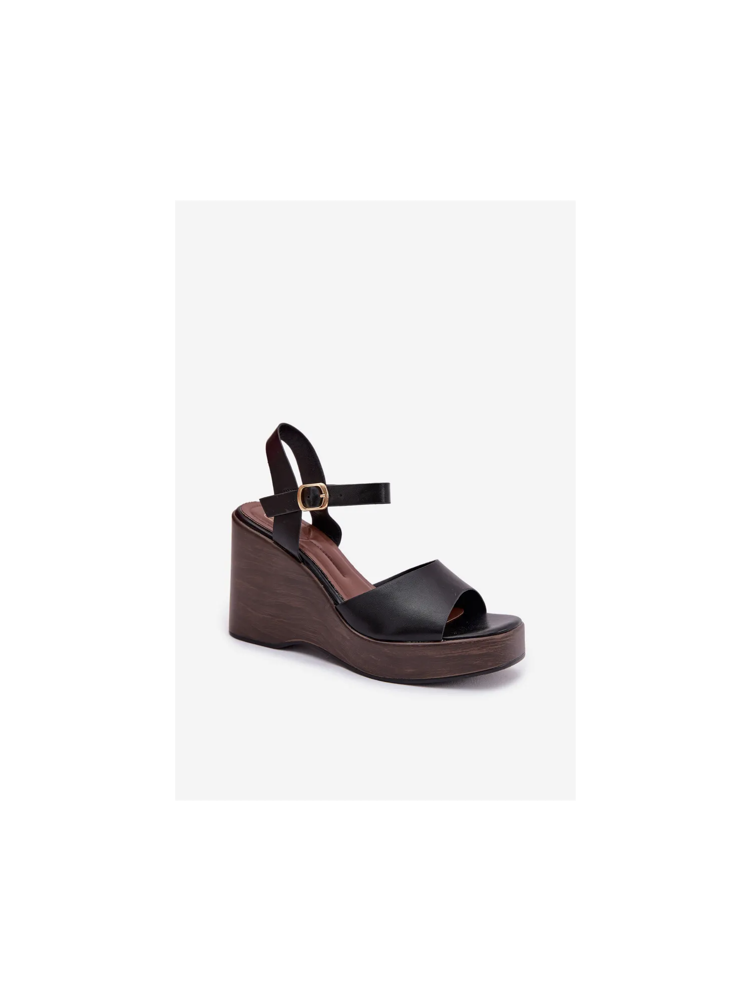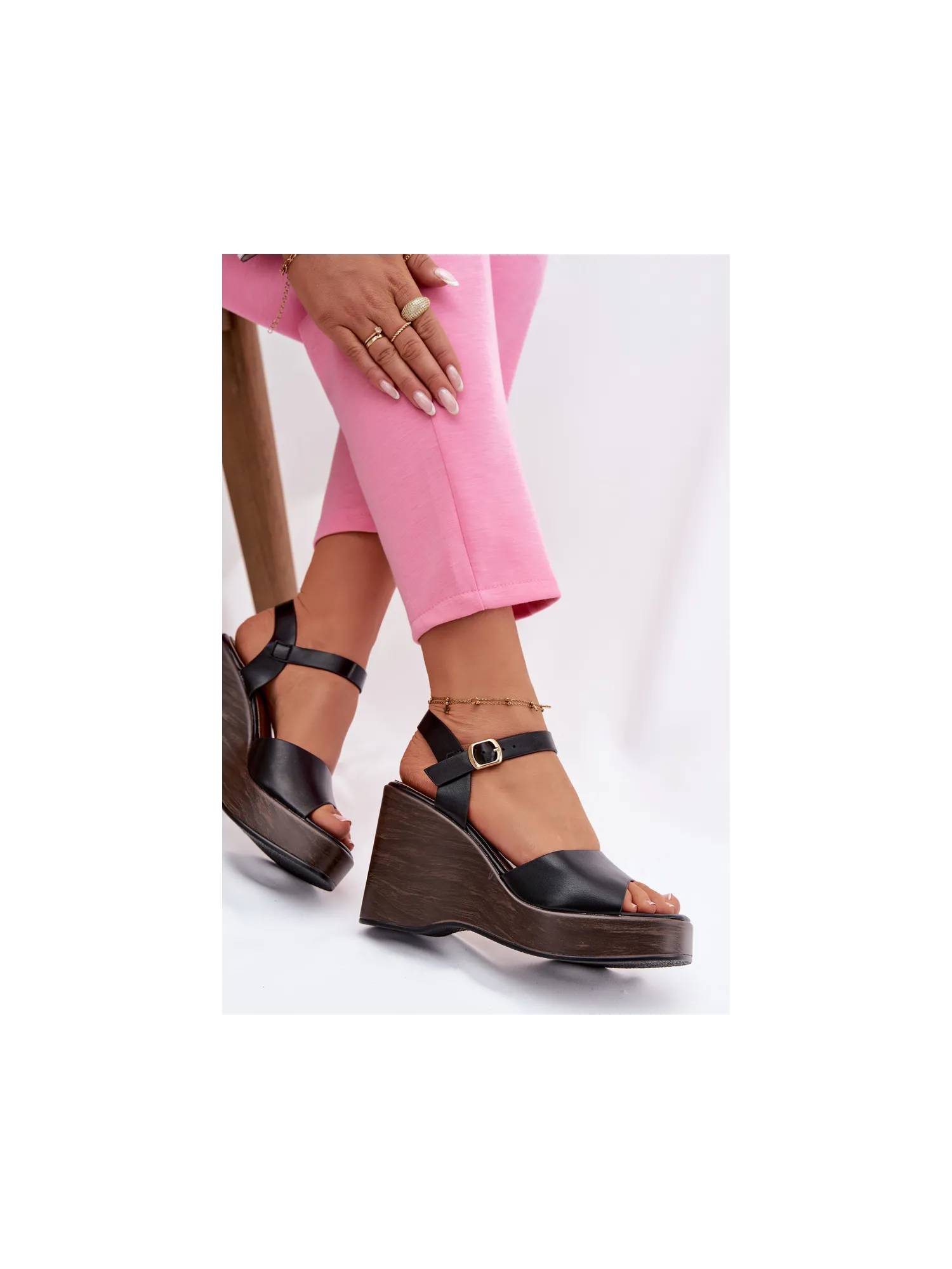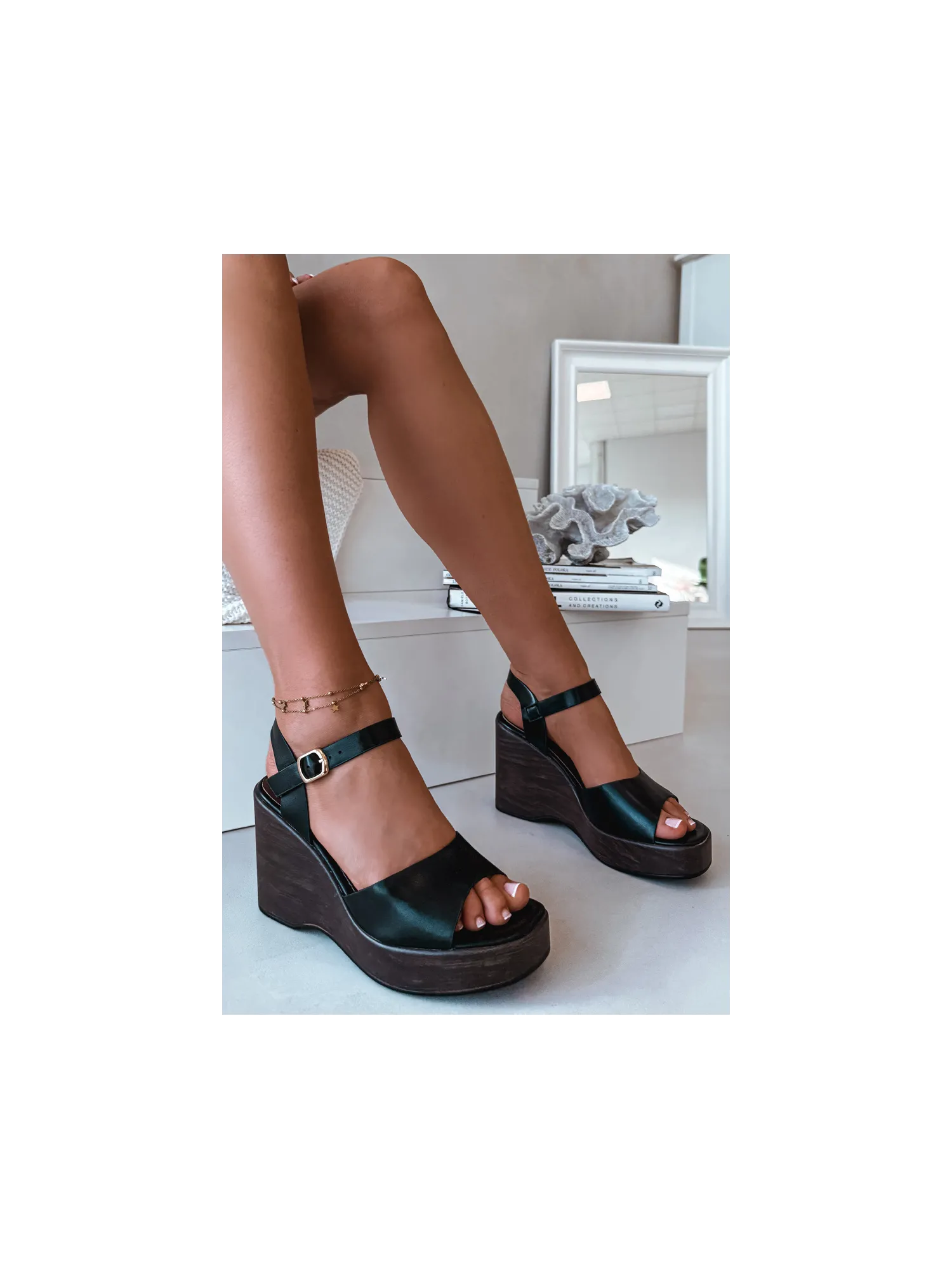 Moteriškos platforminės basutės iš eko odos su juodomis detalėmis „Parilisse“