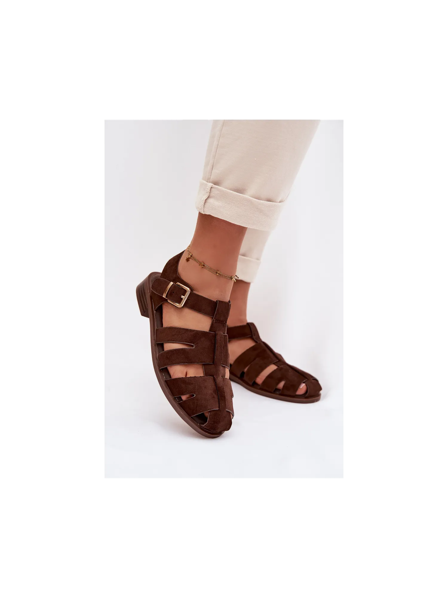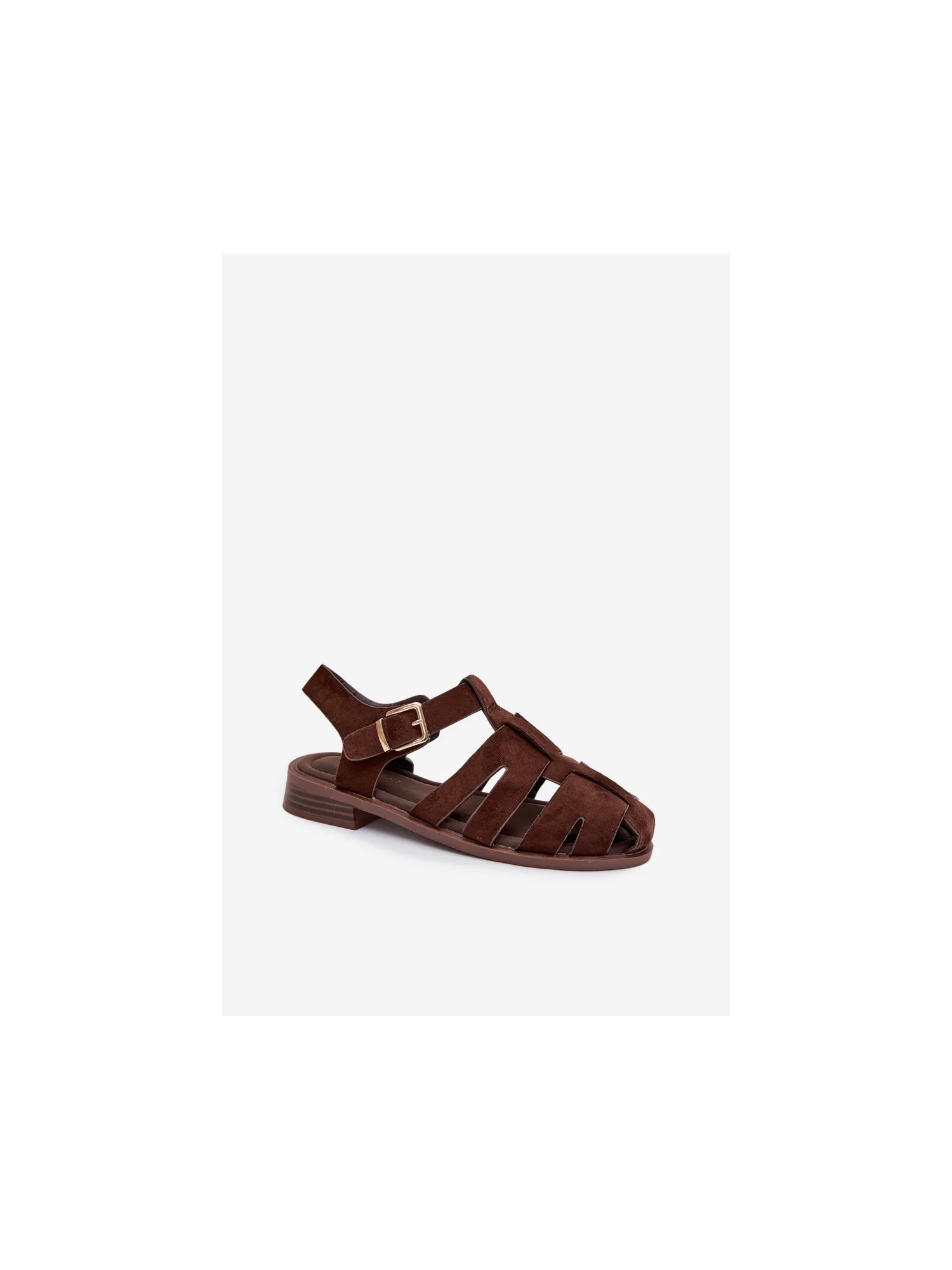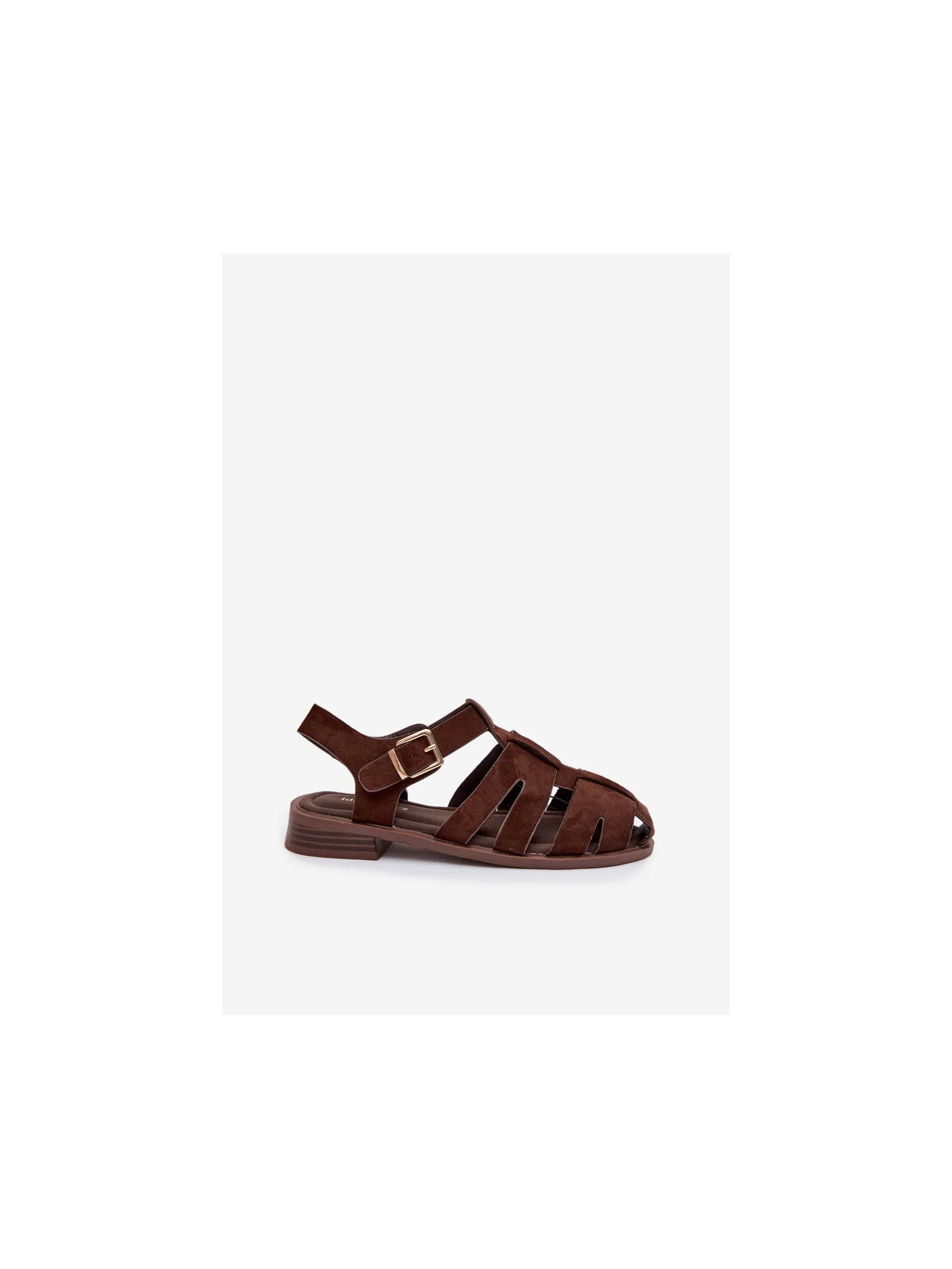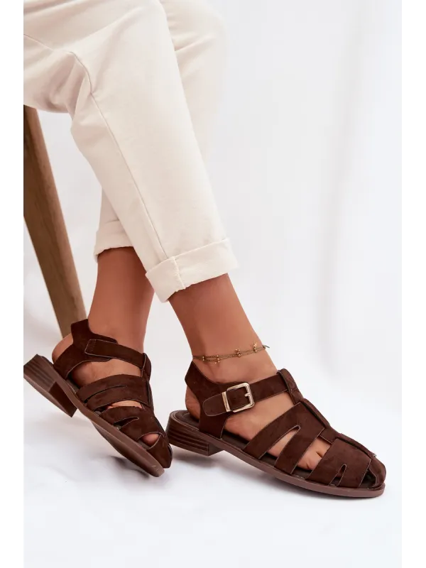 Moteriškos romėniškos basutės su auksine sagtimi šokolado spalvos Janessa