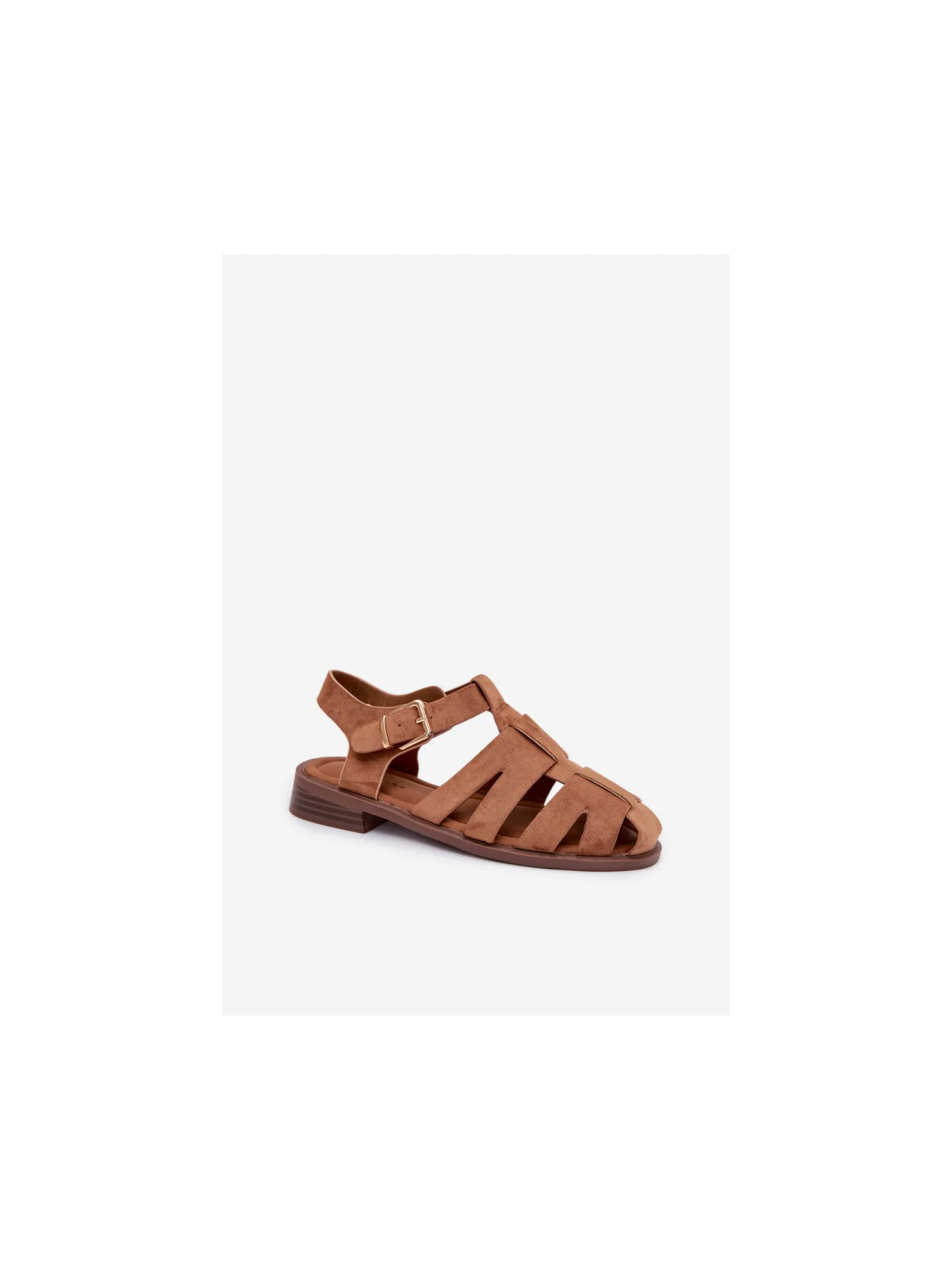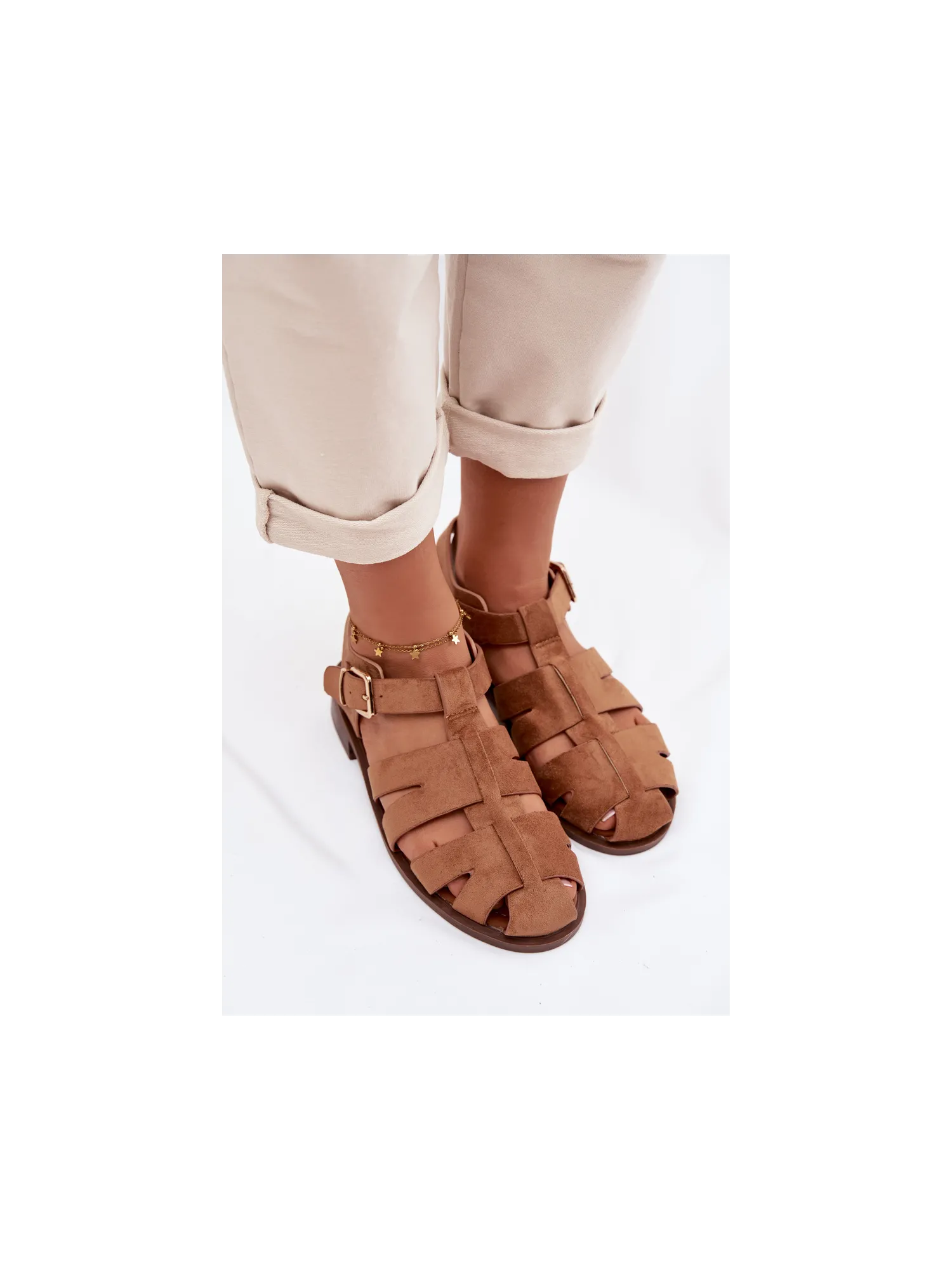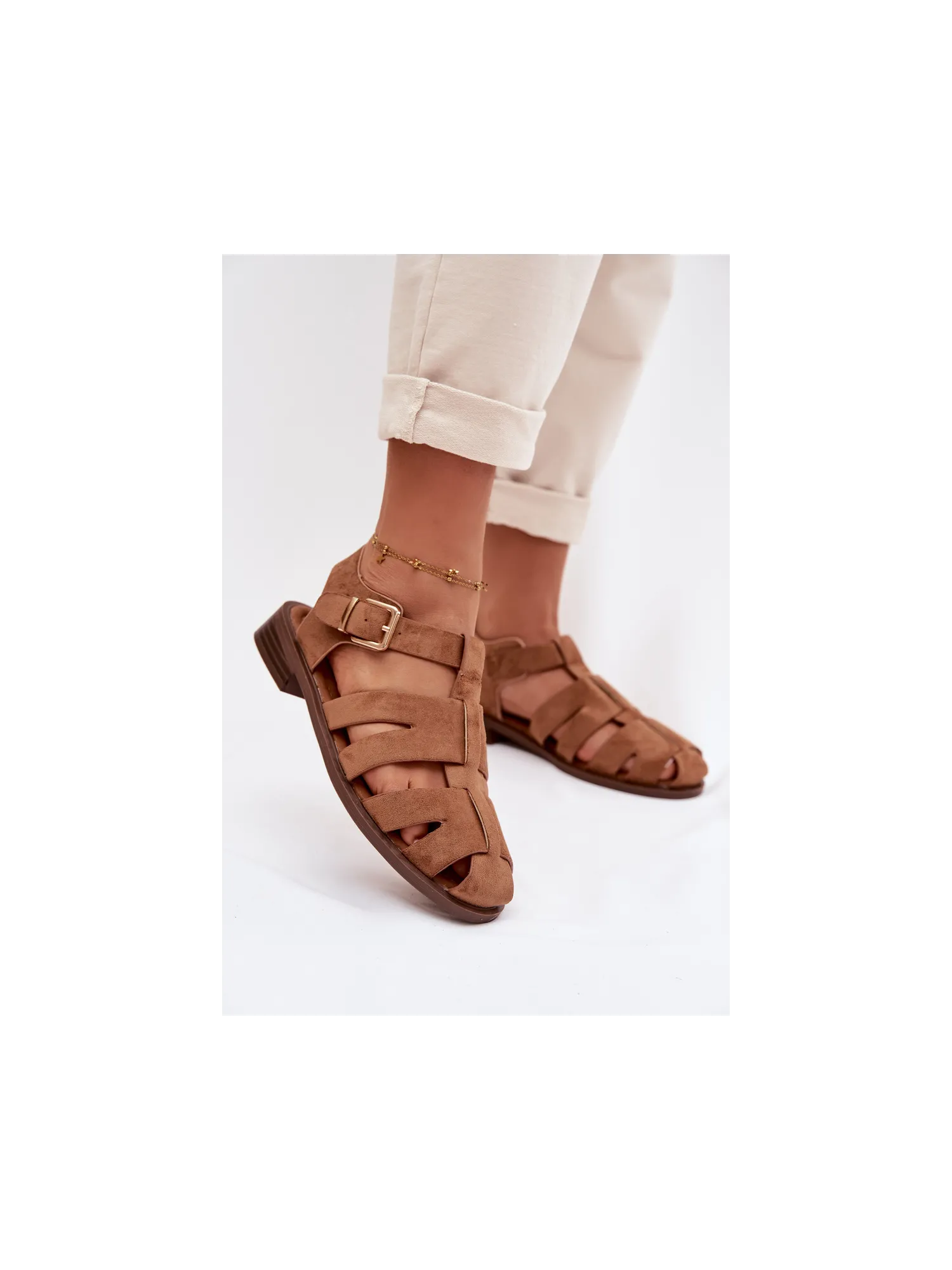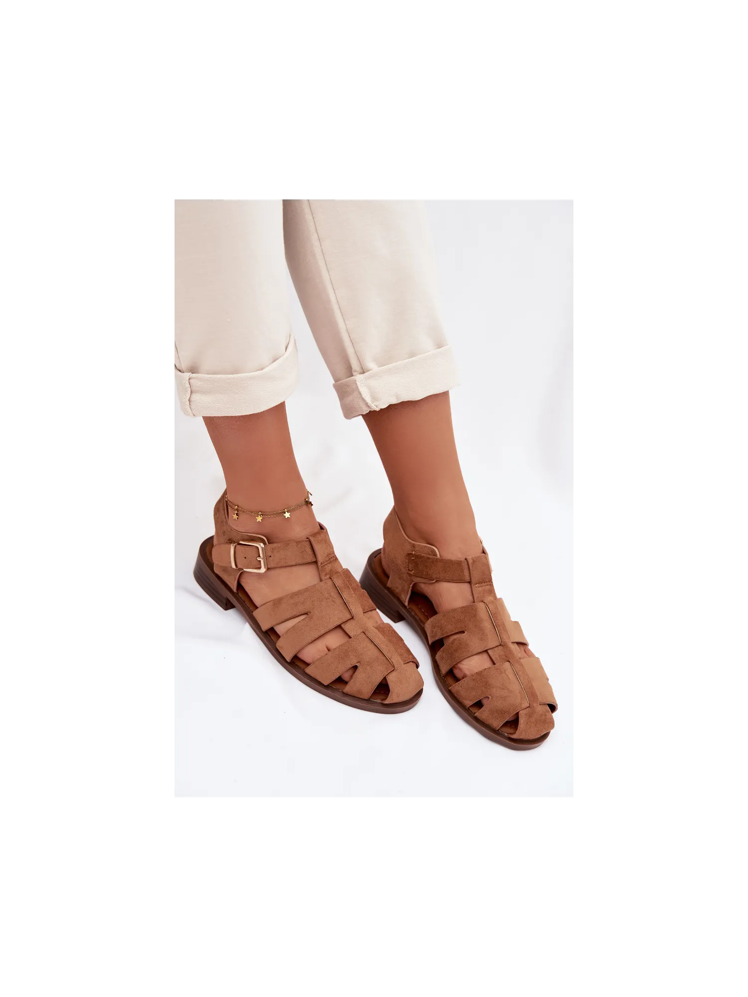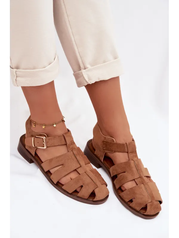 Moteriškos romėniškos basutės su auksine sagtimi, camel spalvos, Janessa