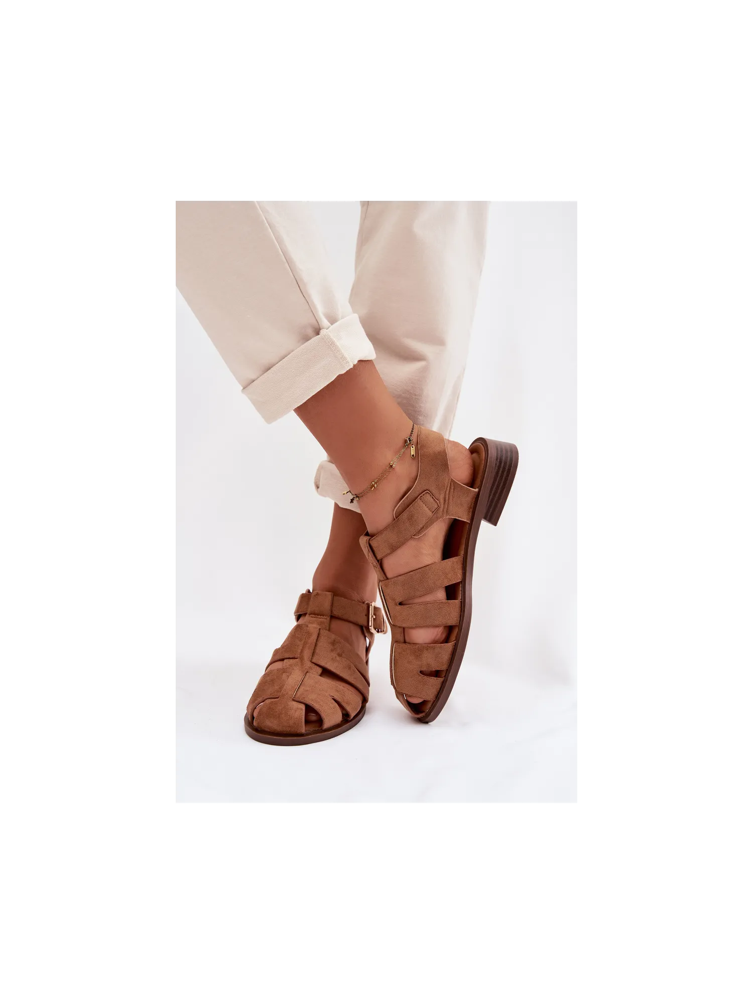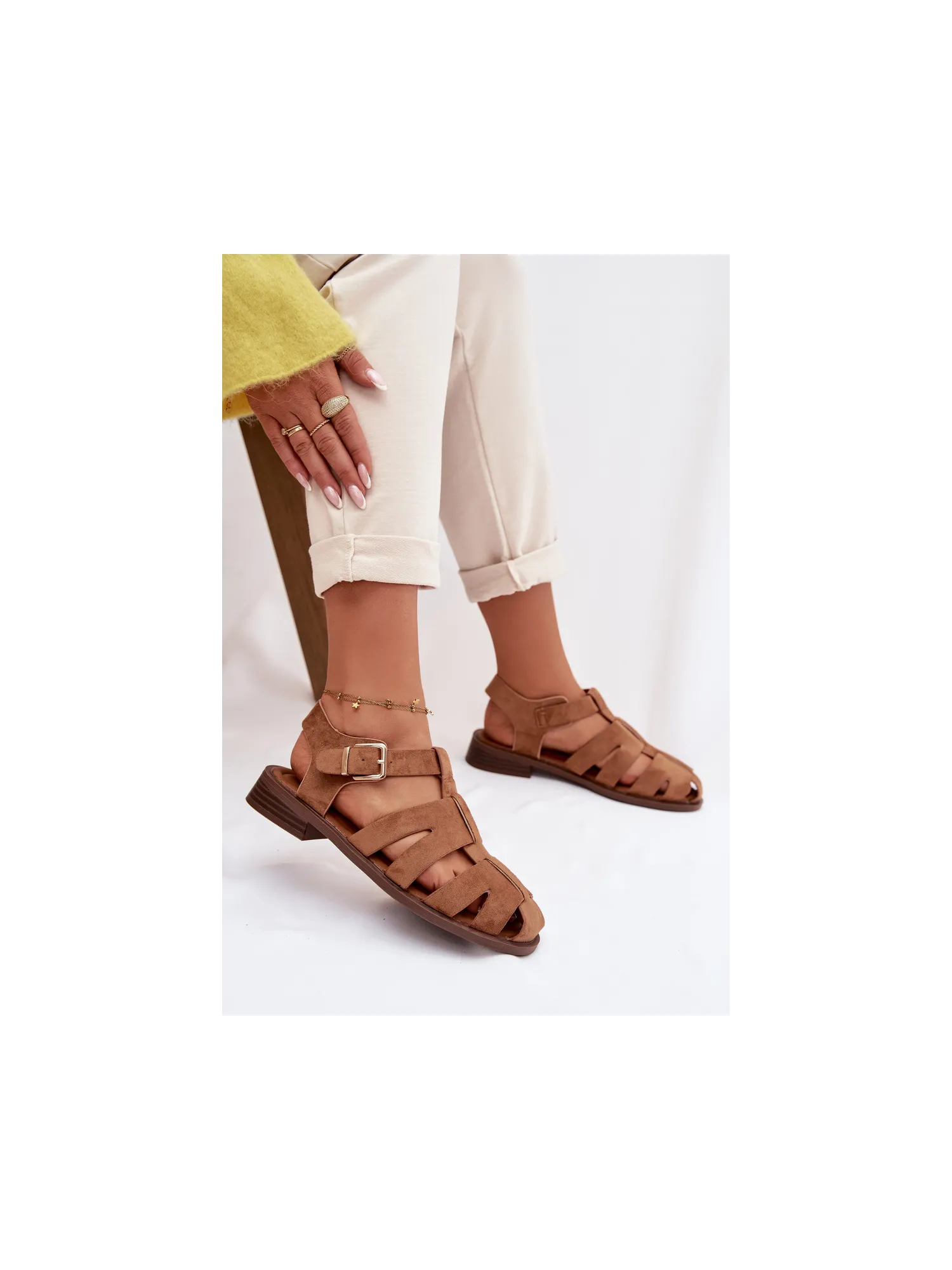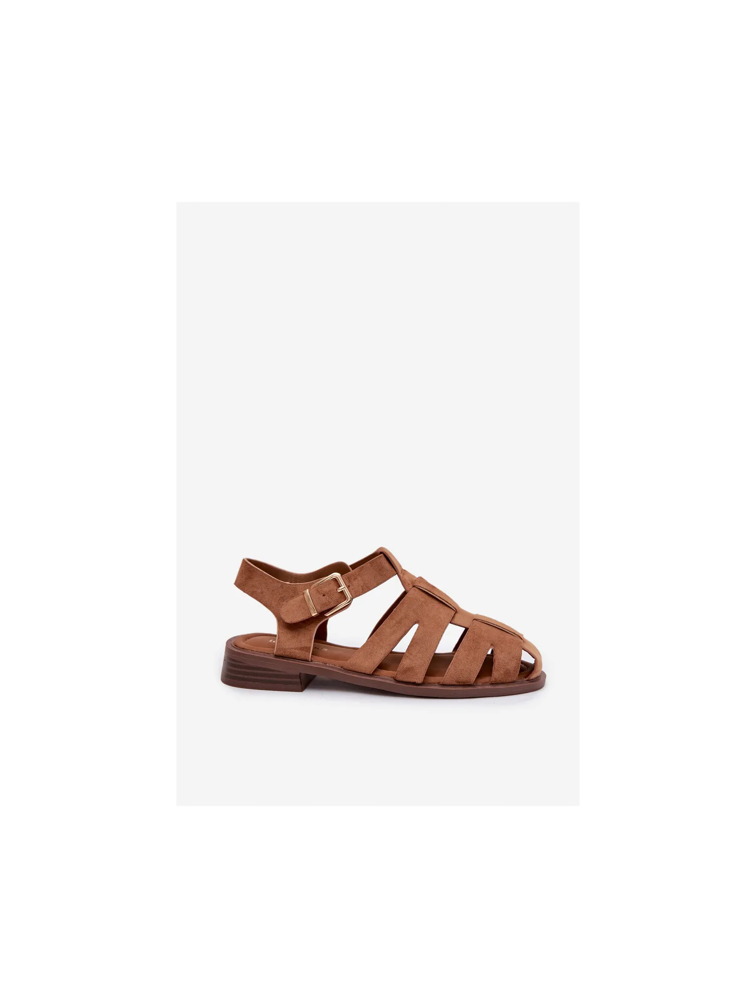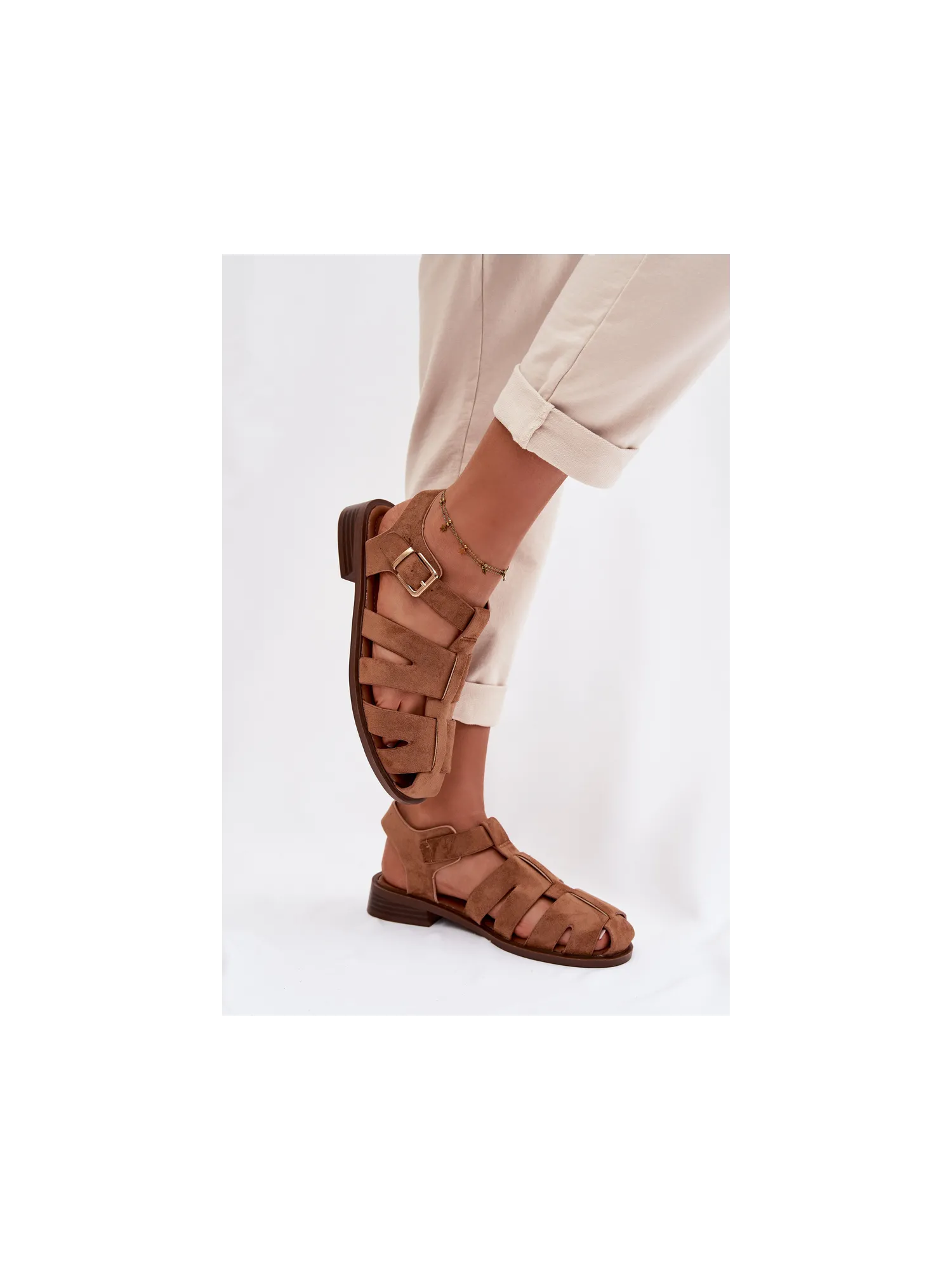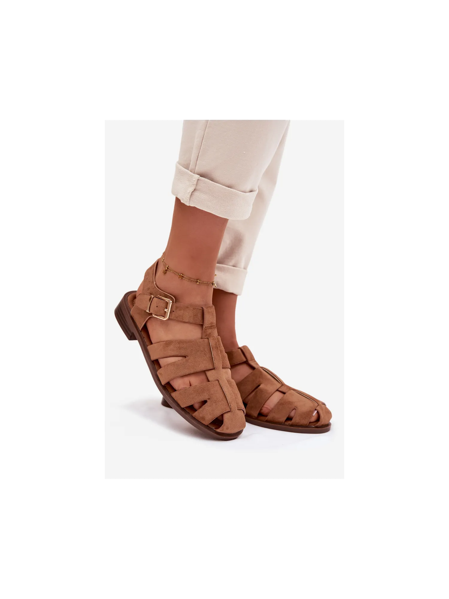 Moteriškos romėniškos basutės su auksine sagtimi, camel spalvos, Janessa