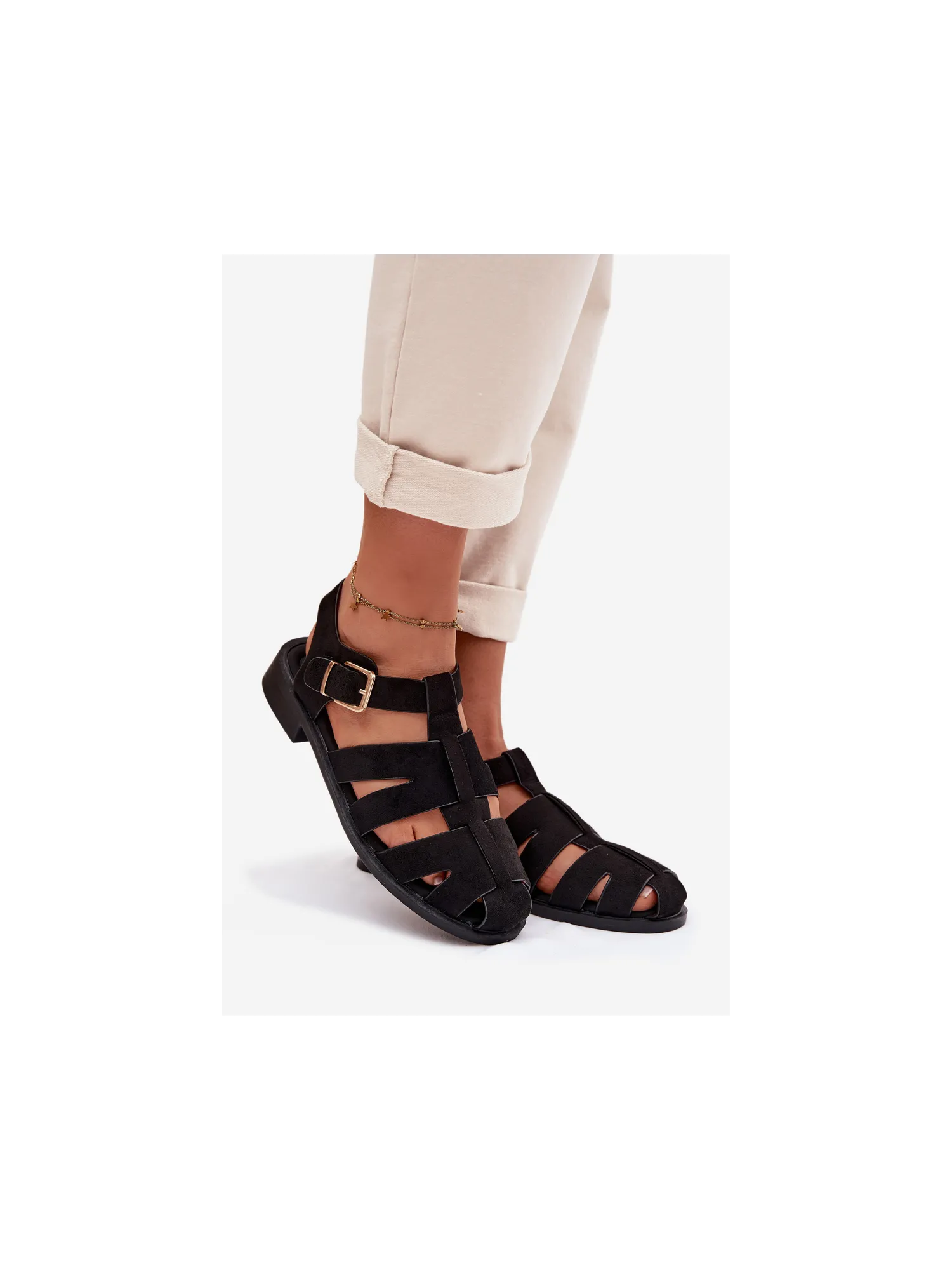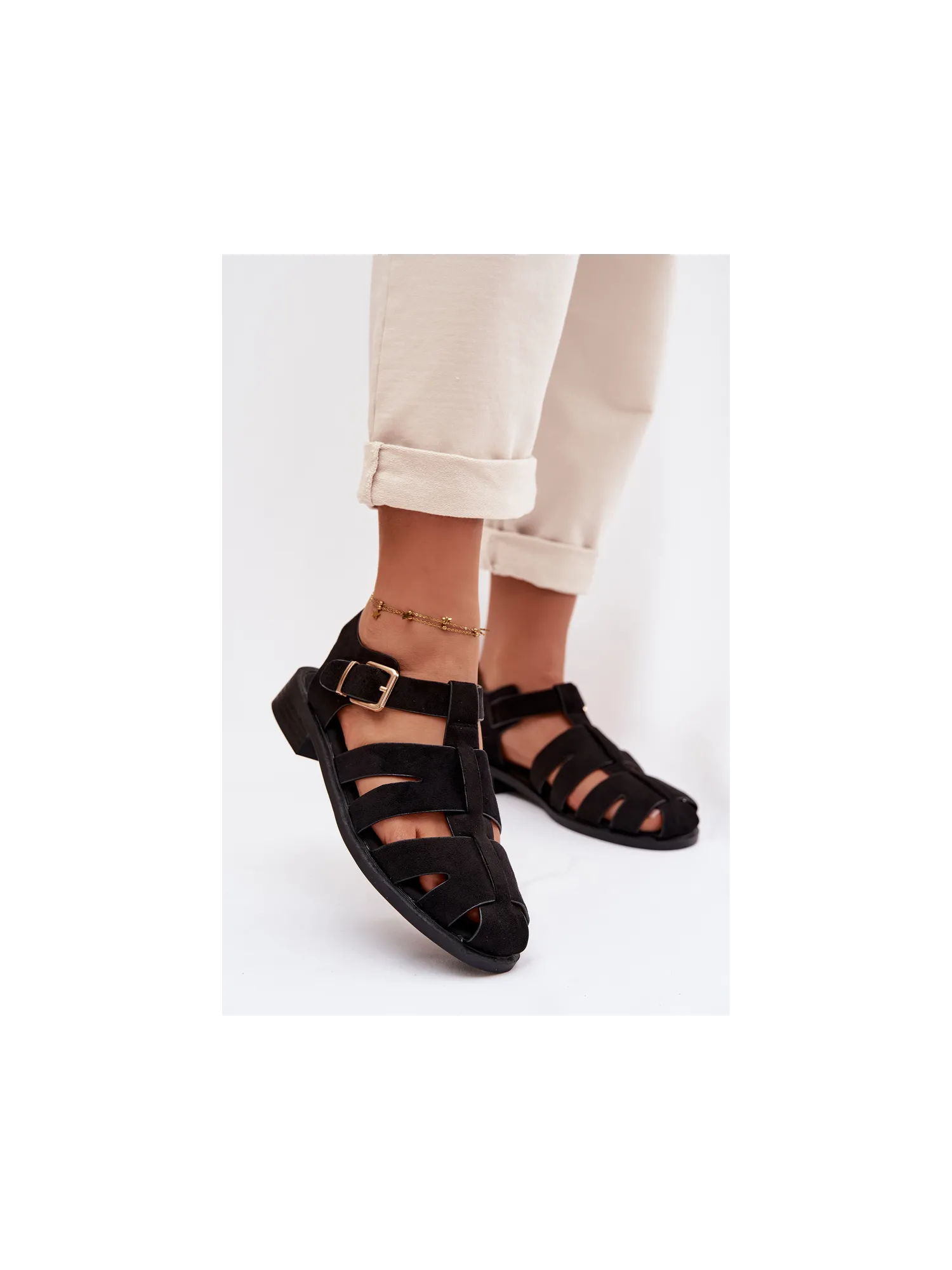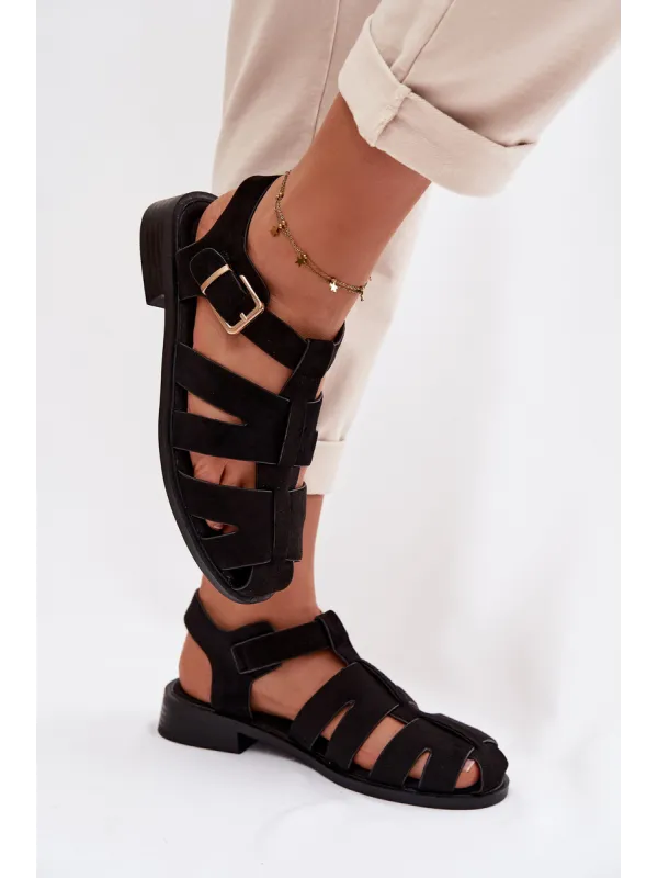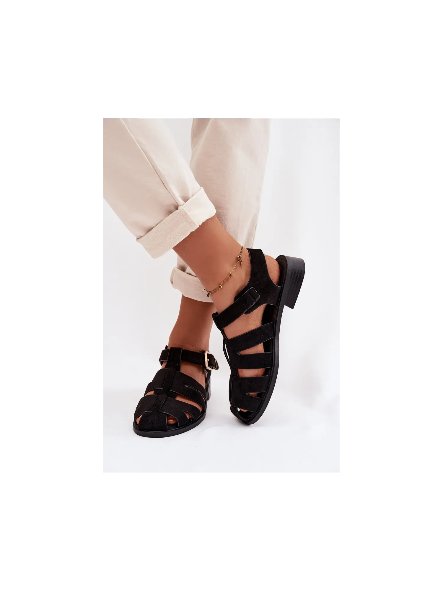 Moteriškos basutės su blokiniu kulnu ir platforma, eko oda, juodos, Hanelia