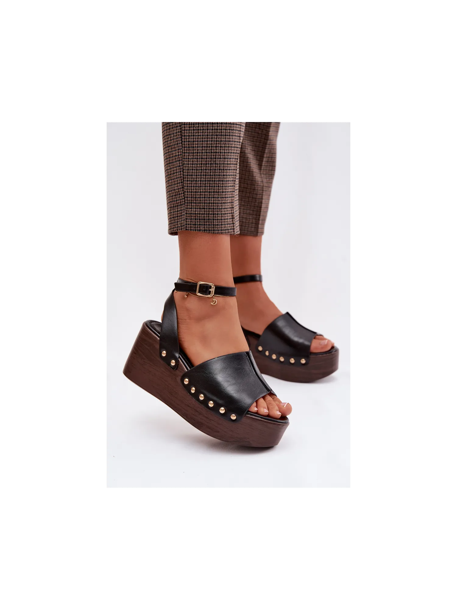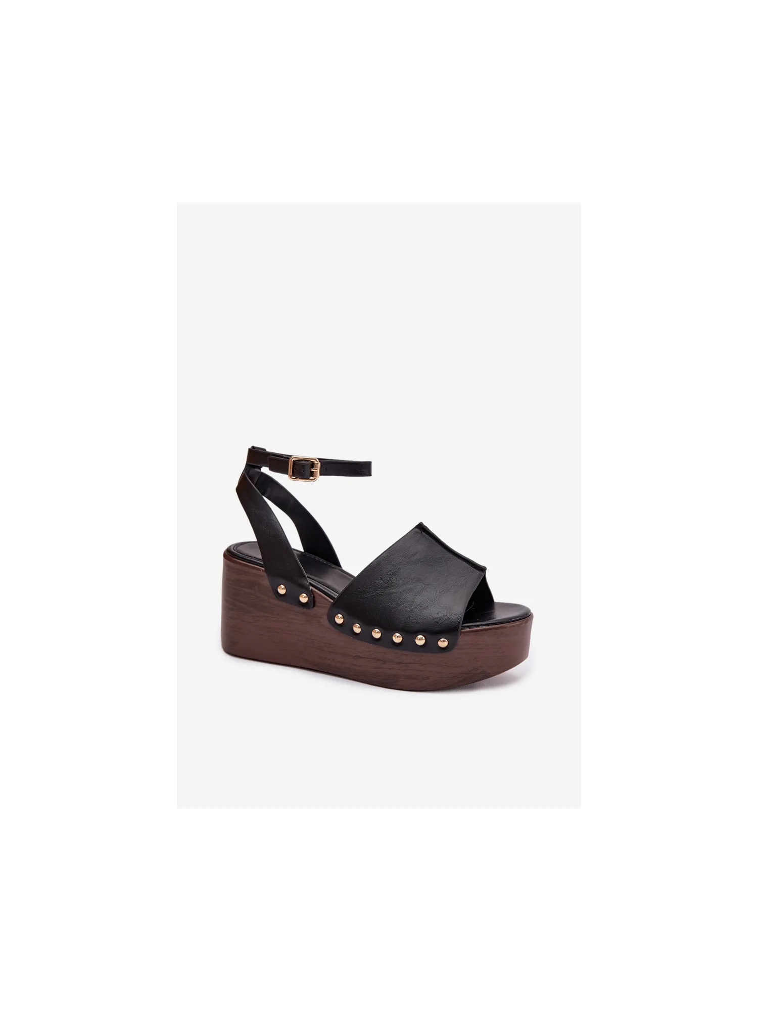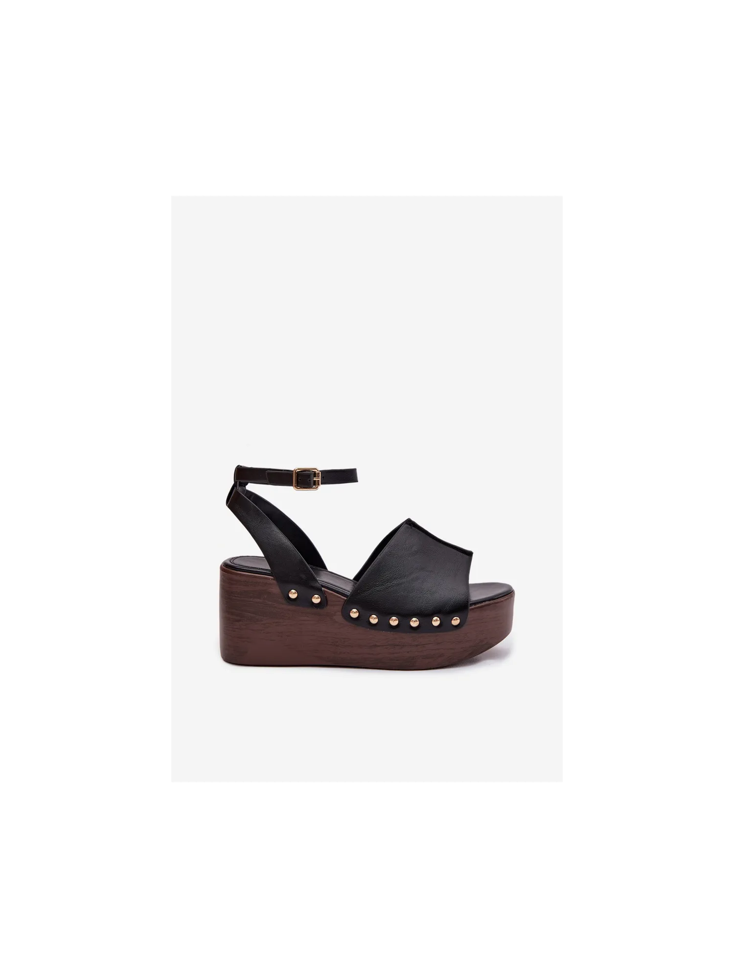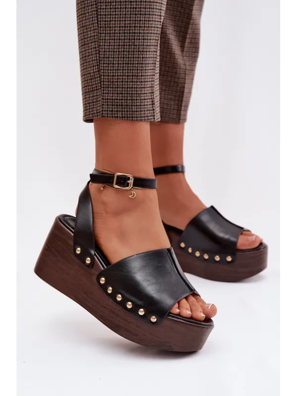 Moteriškos platforminės basutės su auksinėmis sagtimis, juodos...