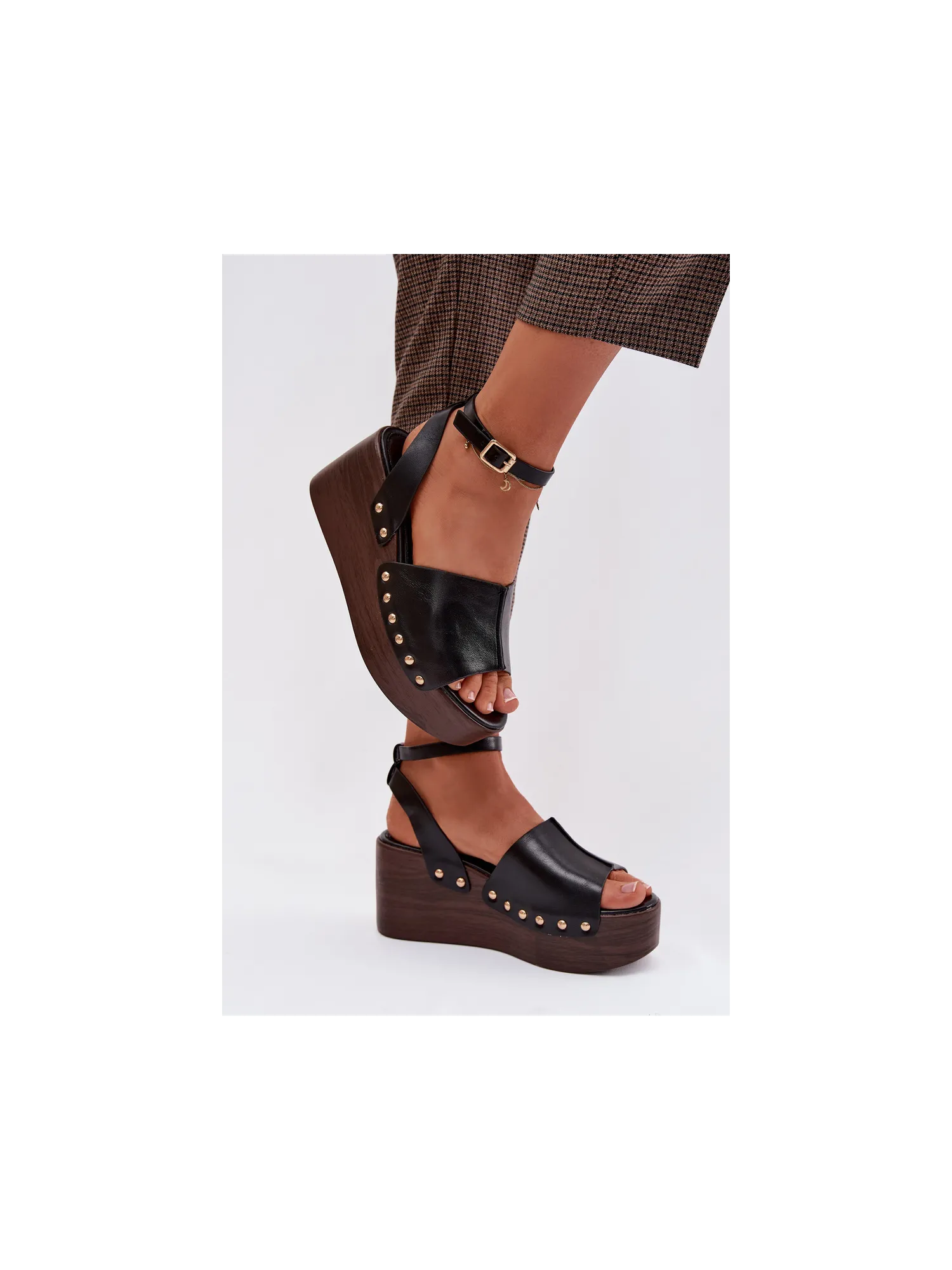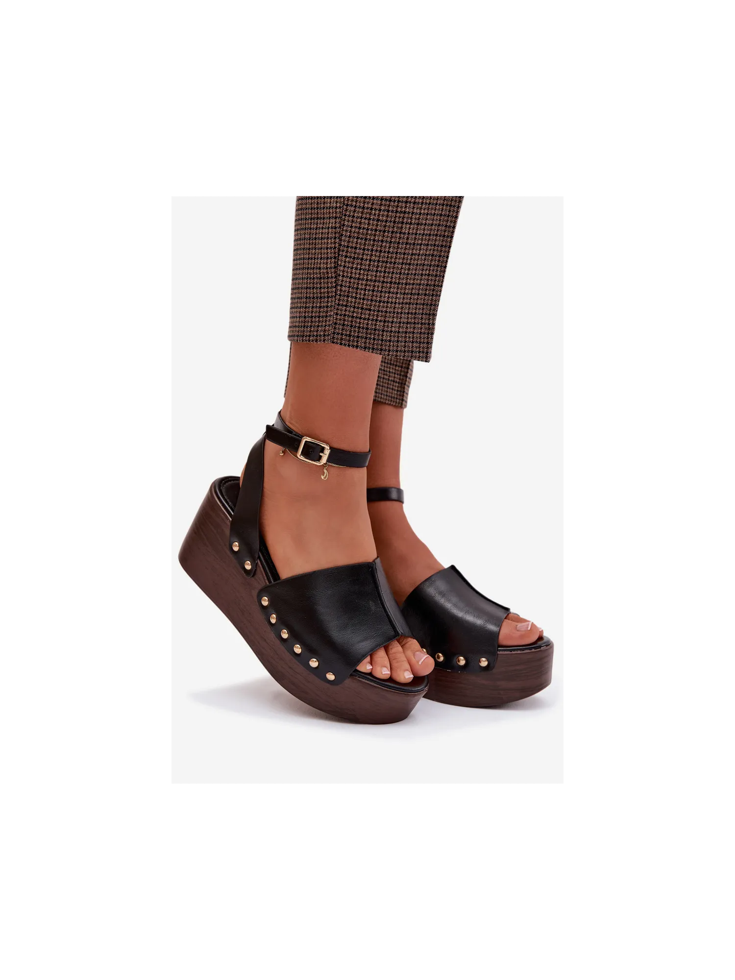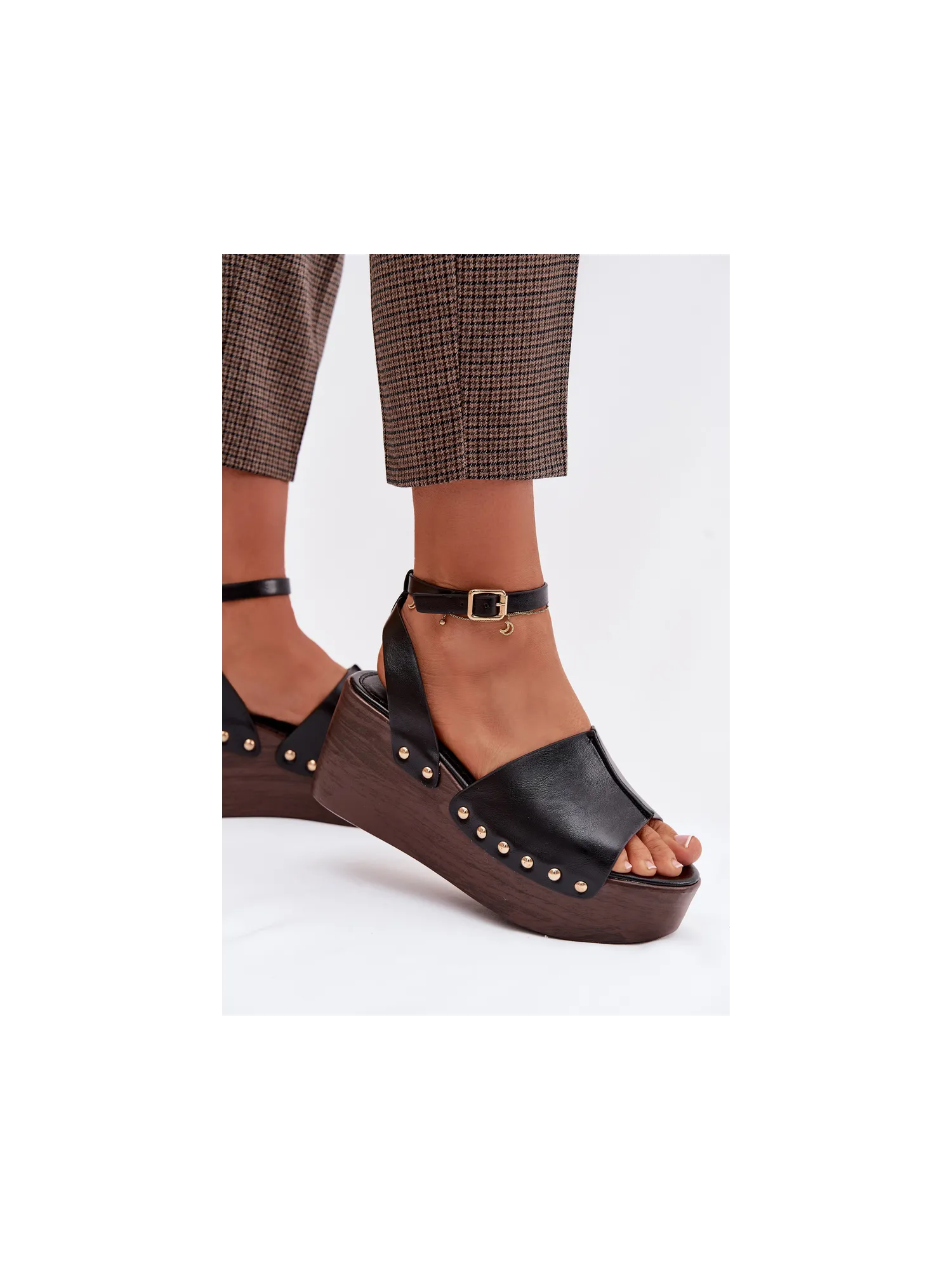 Moteriškos platforminės basutės su auksinėmis sagtimis, juodos...