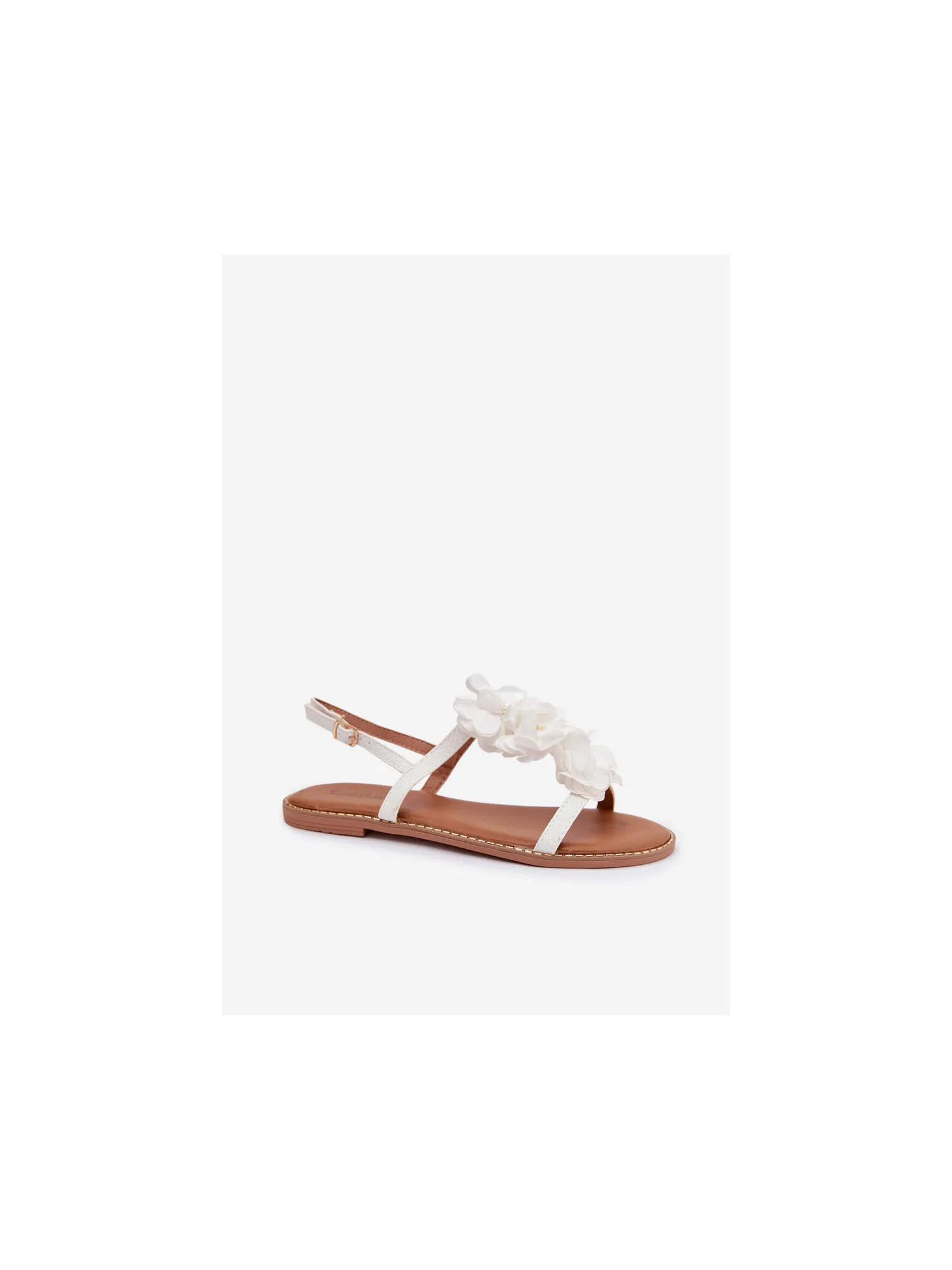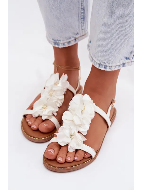 Moteriškos plokščios basutės su dekoratyvinėmis gėlėmis, baltos Noemia