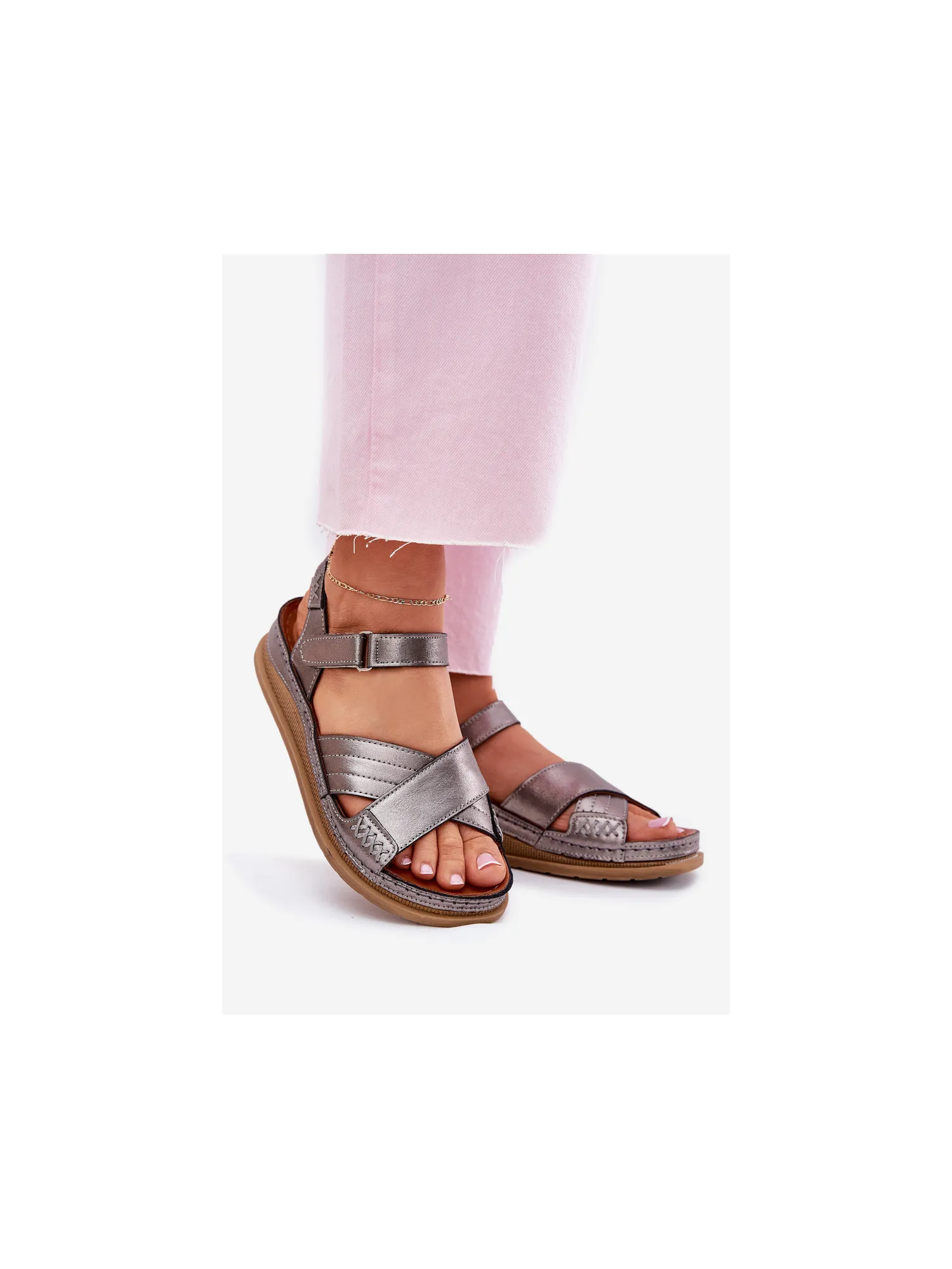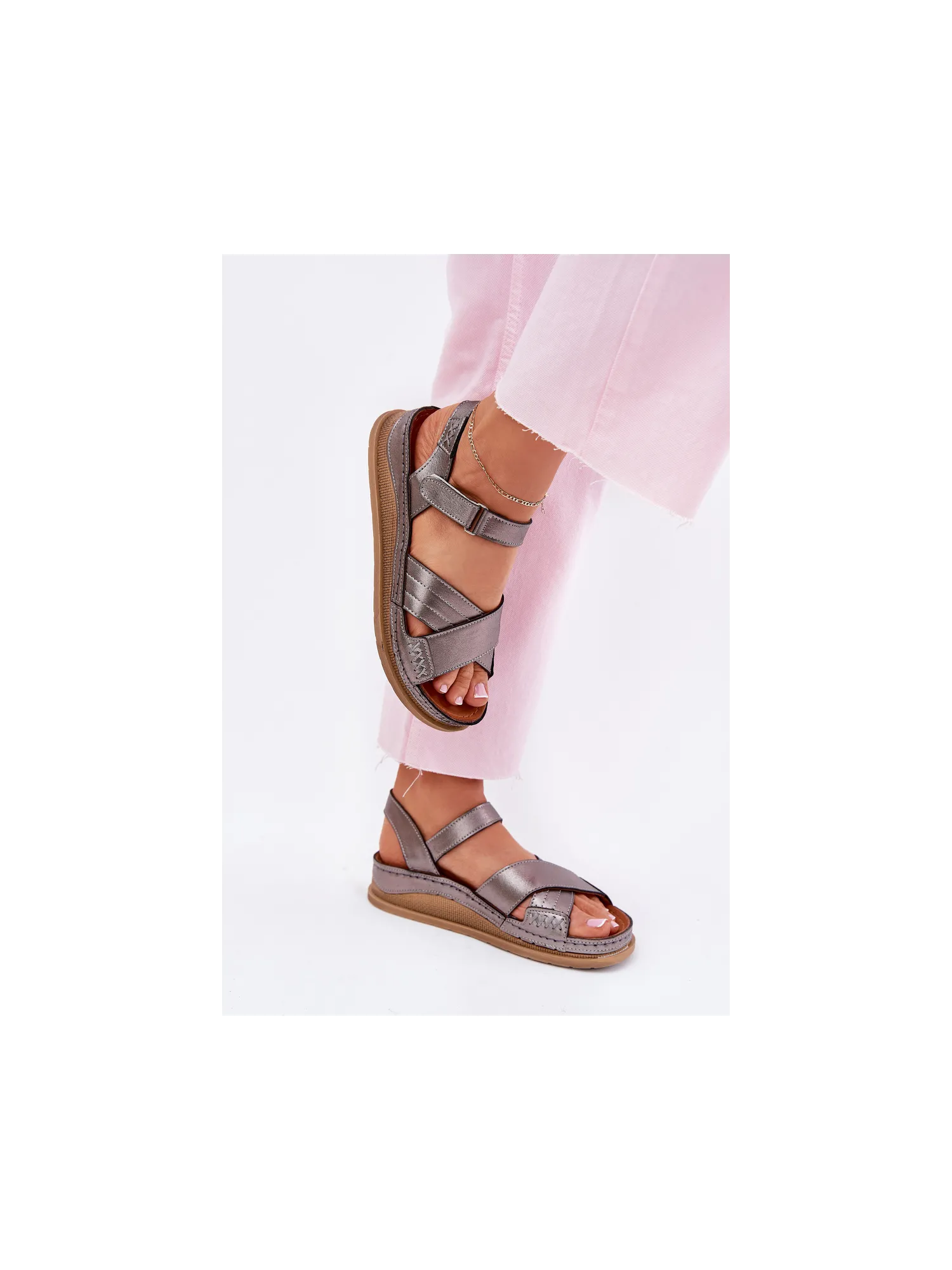 Women’s sandals made of natural leather by Maciejka, set on a platform, are an excellent choice for summer days. The Velcro model ensures comfort and ease of putting on. At the front, two intersecting straps. Ideal for everyday styling. When choosing a size, please refer to the size chart.