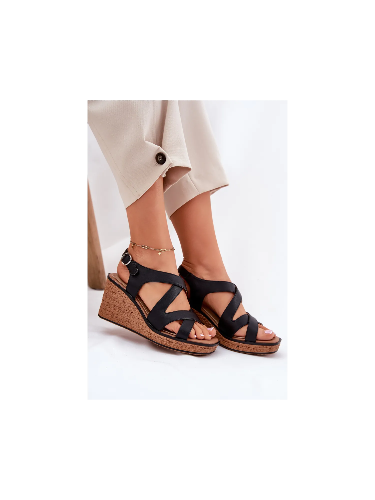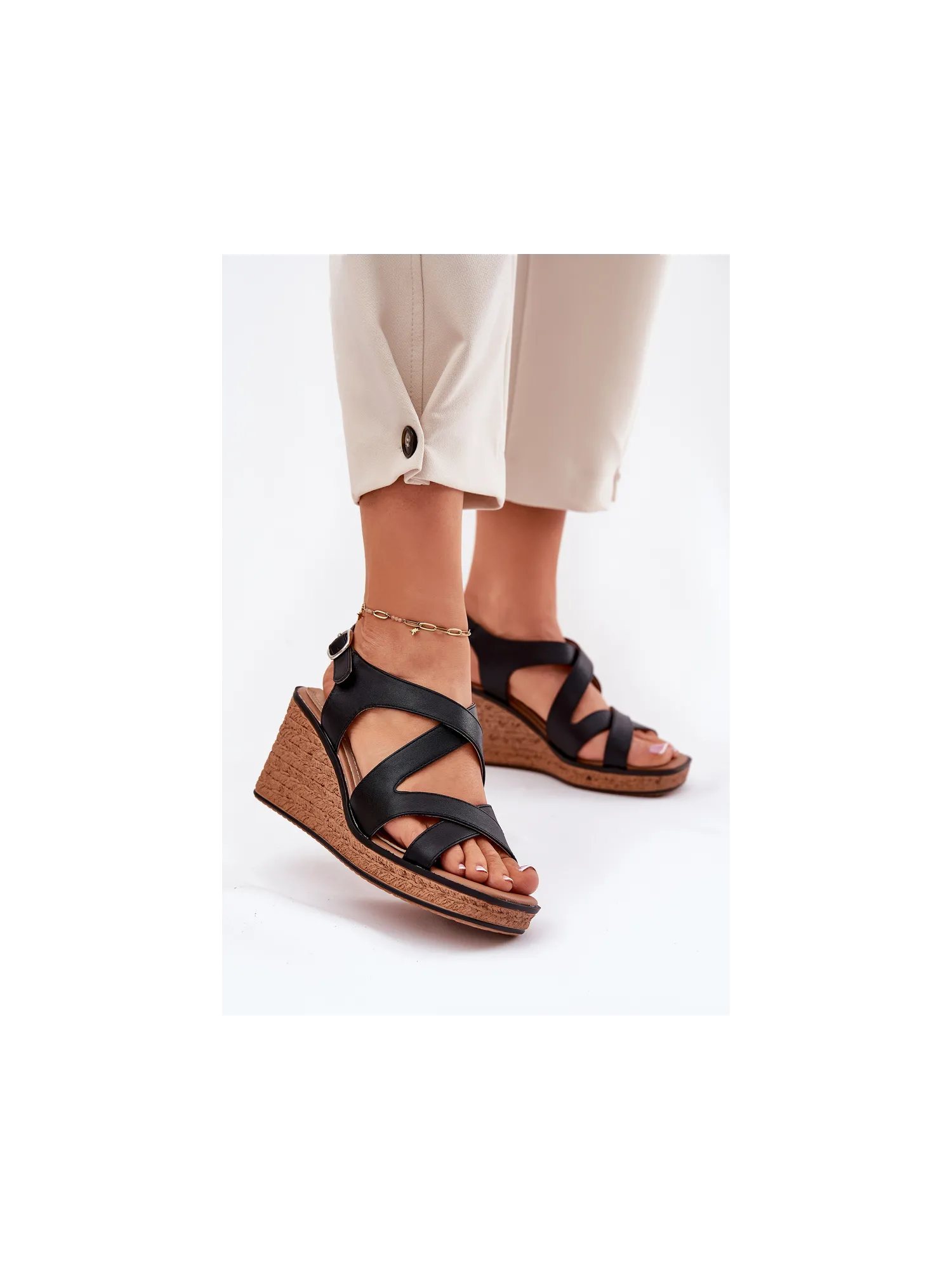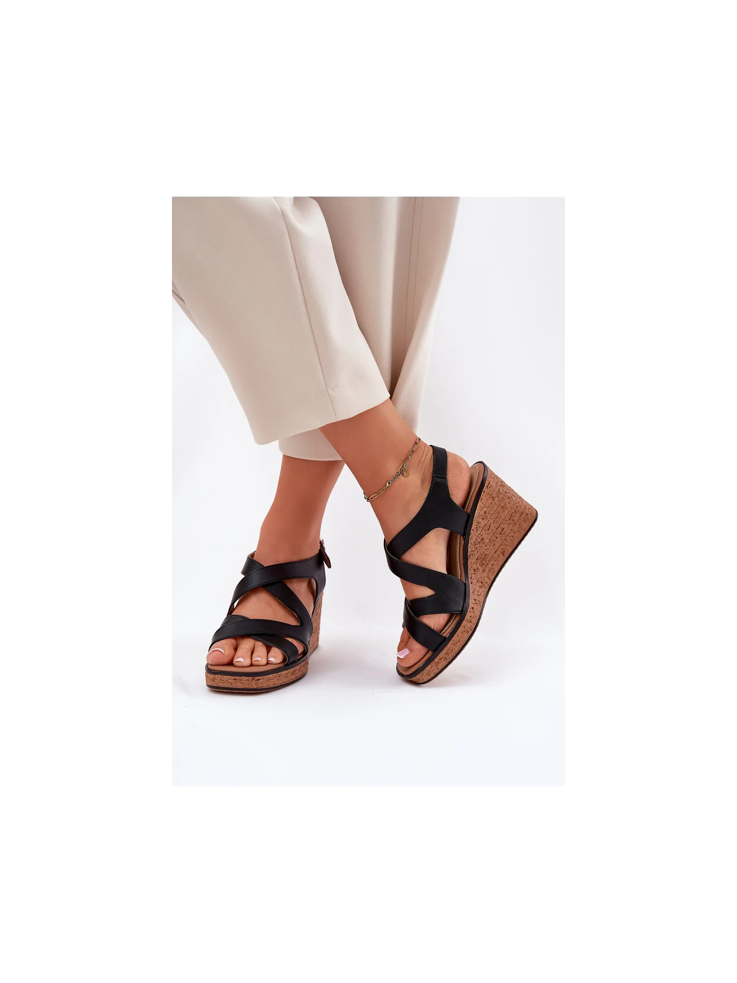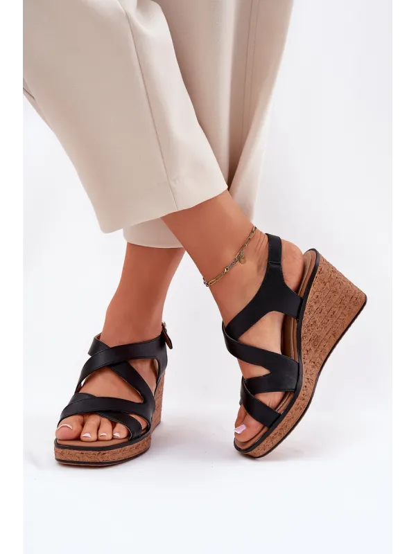 Sergio LeoneWomen's sandals made of eco-leather are a combination of elegance and comfort. Set on a wedge with a woven imitation. The intertwining straps at the front give a unique character, and the buckle fastening allows for a perfect fit. The leather, soft insole guarantees comfort all day long. These sandals will be an excellent choice for summer days, combining a fashionable look with functionality. When choosing a size, please refer to the size chart.