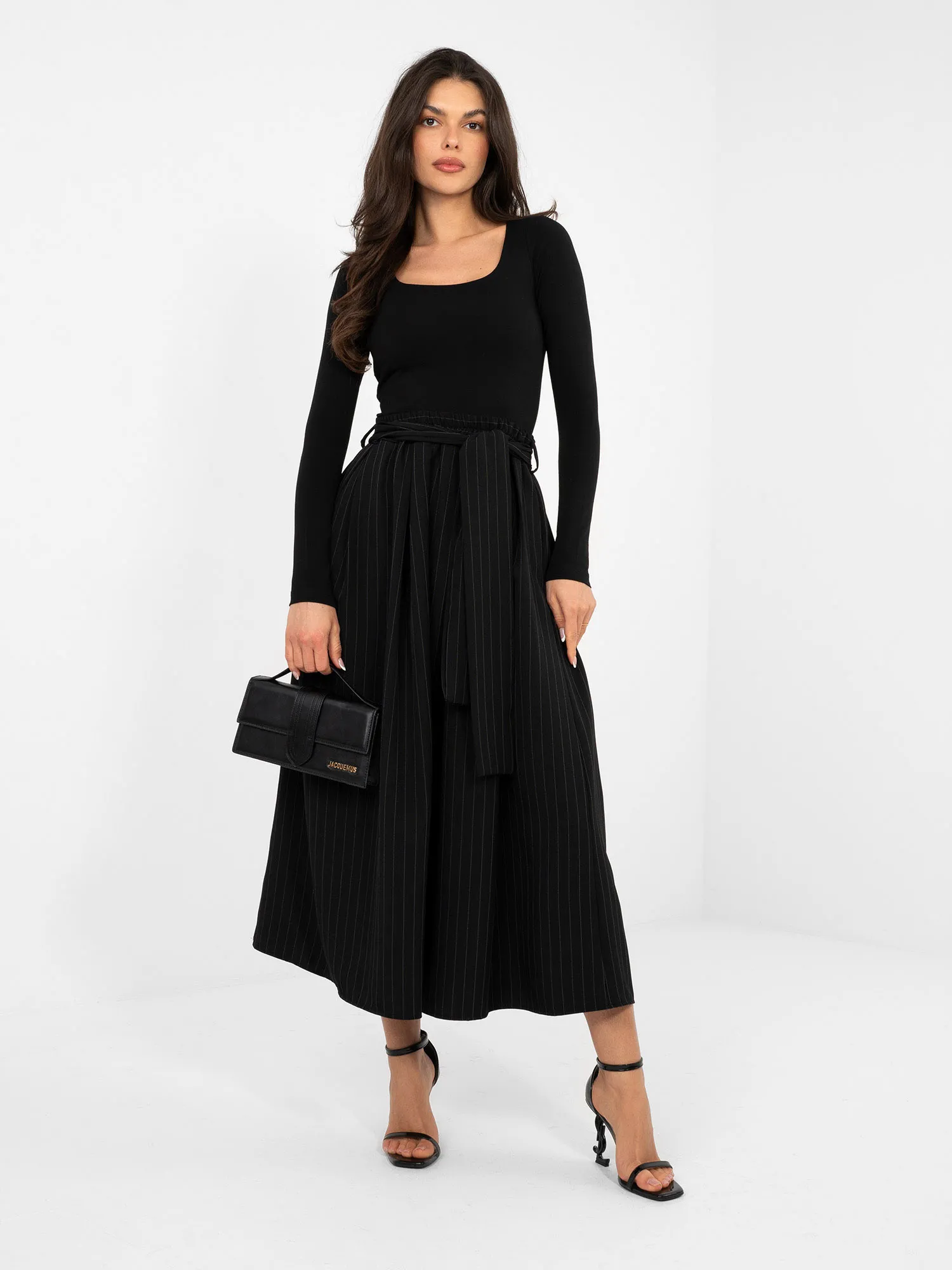 Modelis dėvi vieno dydžio dydį. Modelio išmatavimai: ūgis 173 cm, krūtinė 85 cm, juosmuo 62 cm, klubai 95 cm