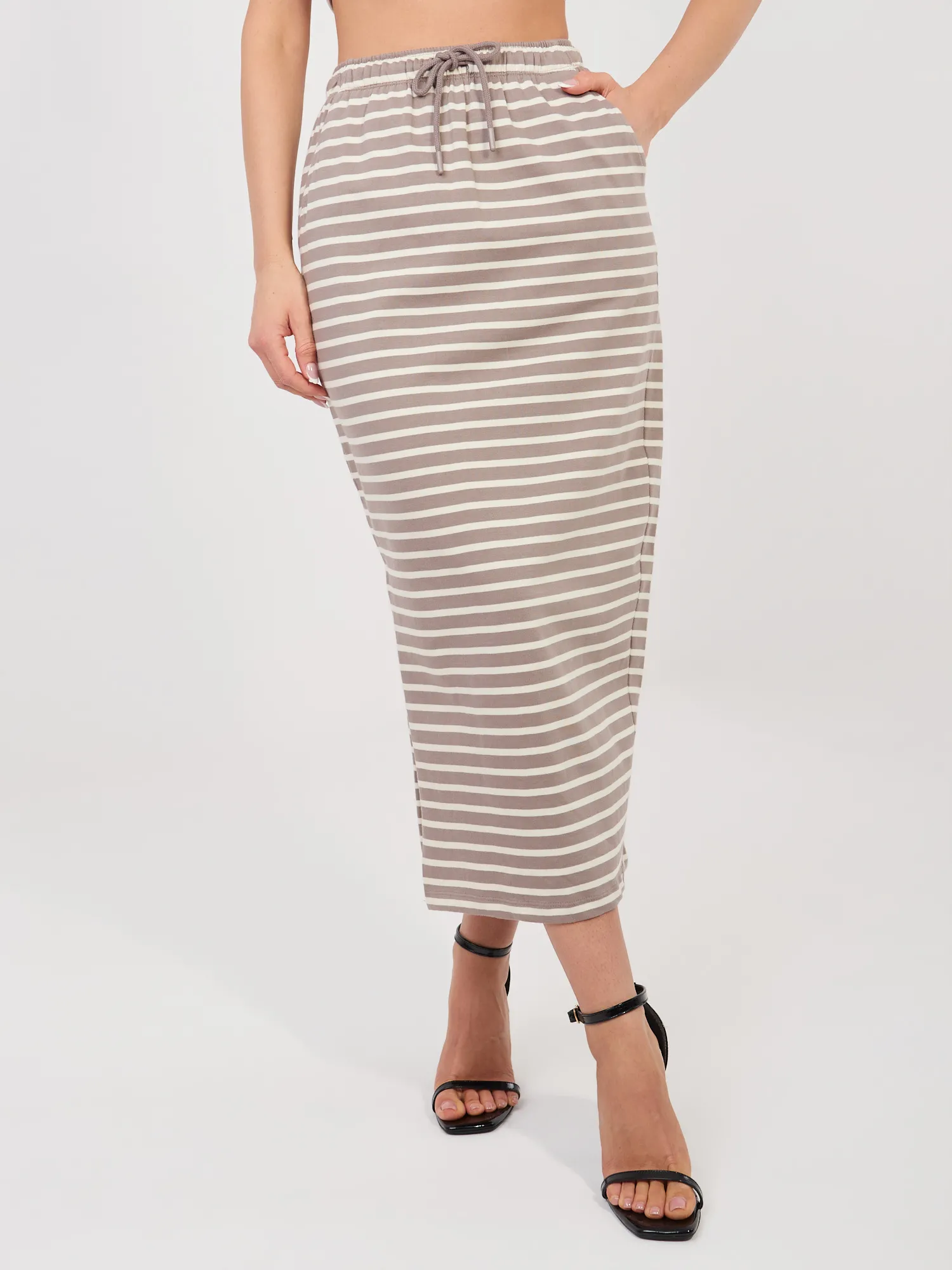 Sijonas-D12127M50254A-tamsiai smėlio spalvos