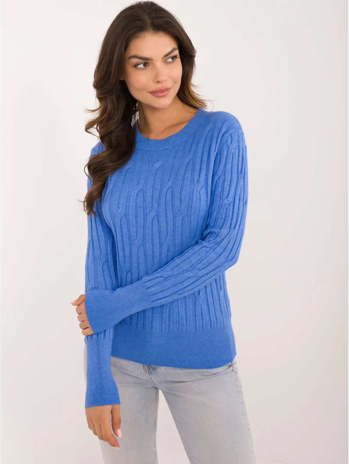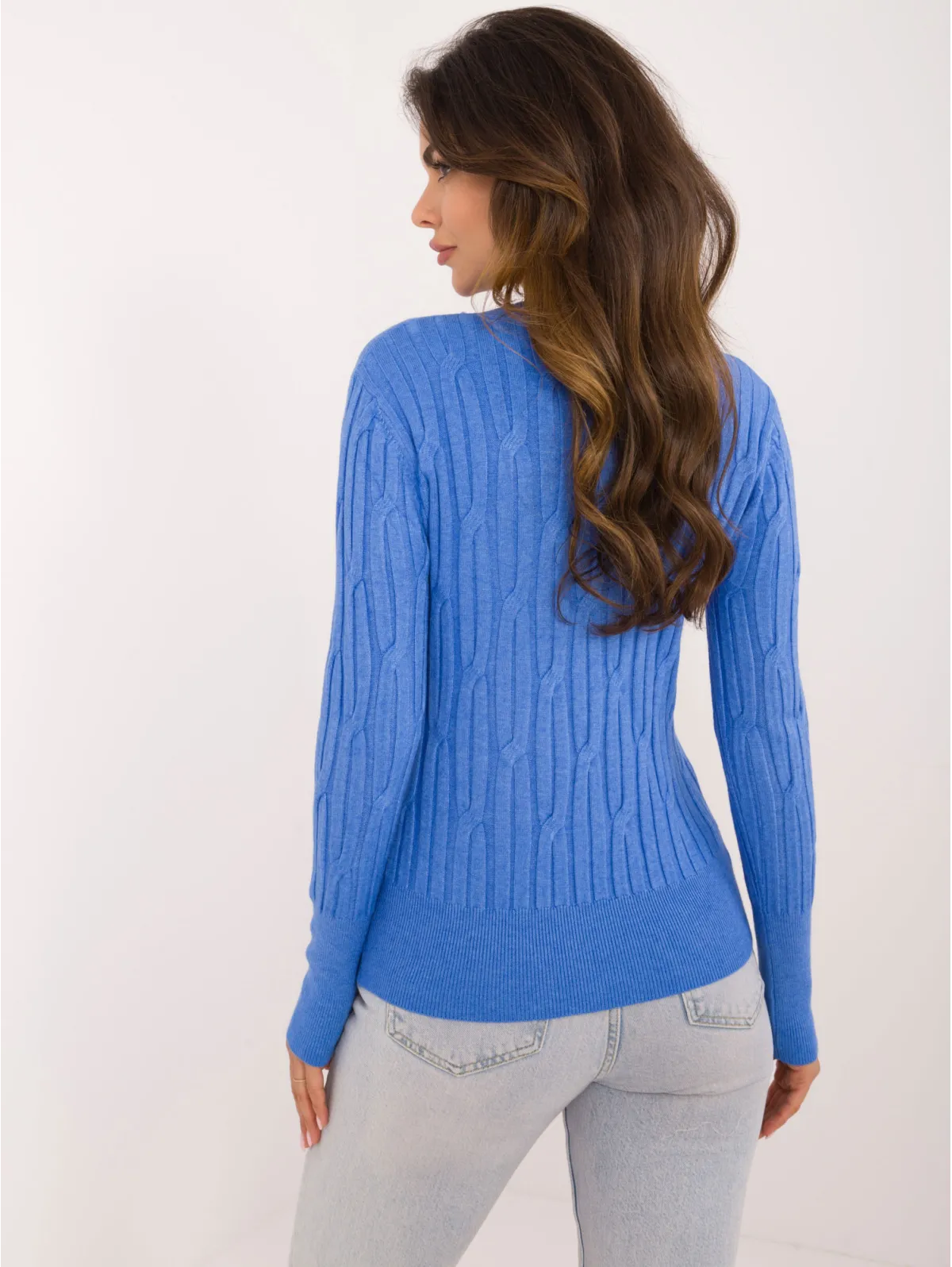 Vieno dydžio megztinio išmatavimai išmatuoti plokščiai: pažasties plotis - 44 cm (tampri medžiaga), rankovių ilgis - 58 cm, bendras ilgis - 58 cm.