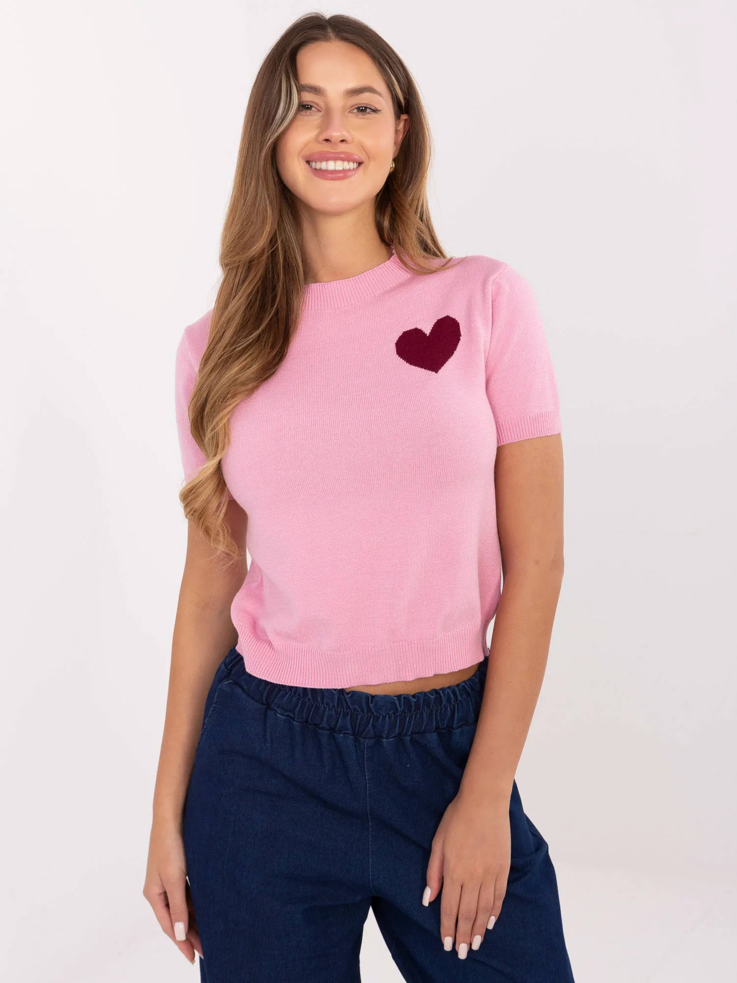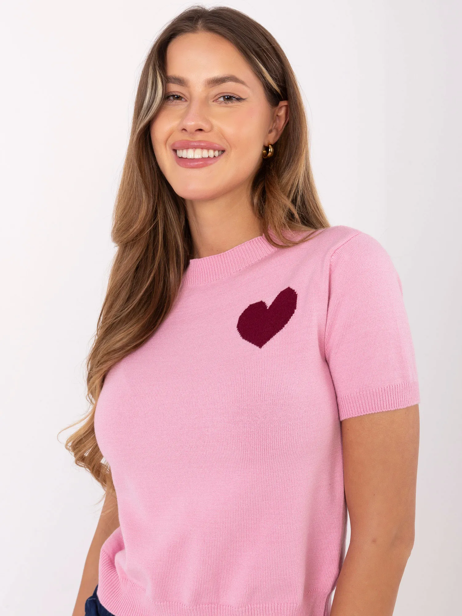 Megztinio vieno dydžio matmenys, išmatuoti plokščiai: plotis po pažastimis - 41 cm, rankovės ilgis - 21 cm (nuo siūlės), klubų plotis - 39 cm, bendras ilgis - 51 cm.
