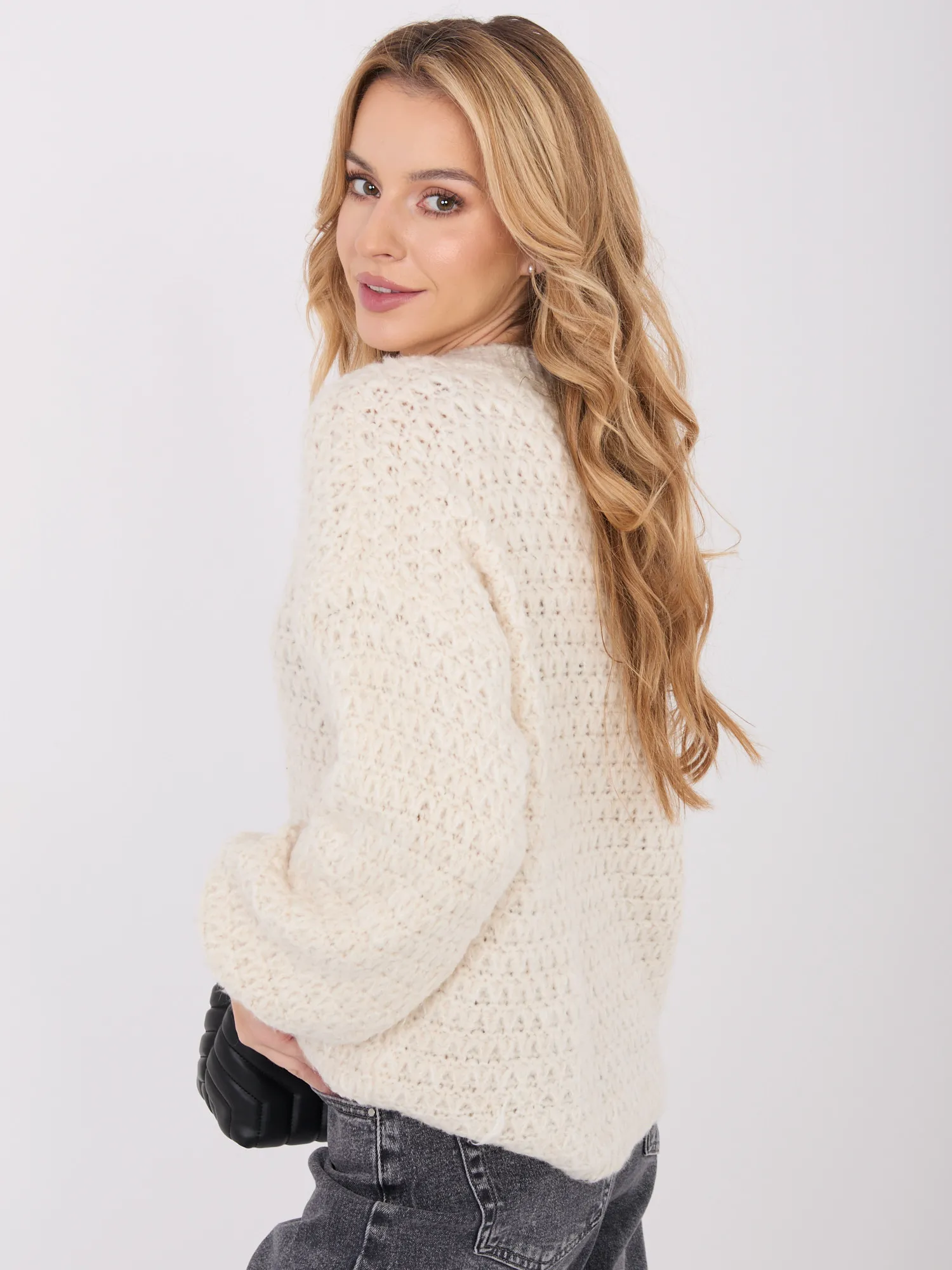 Wymiary swetra w rozmiarze one size mierzone na płasko: szerokość pod pachami - 55 cm, szerokość w biodrach - 51 cm, długość rękawa - 48 cm, długość całkowita - 62 cm.