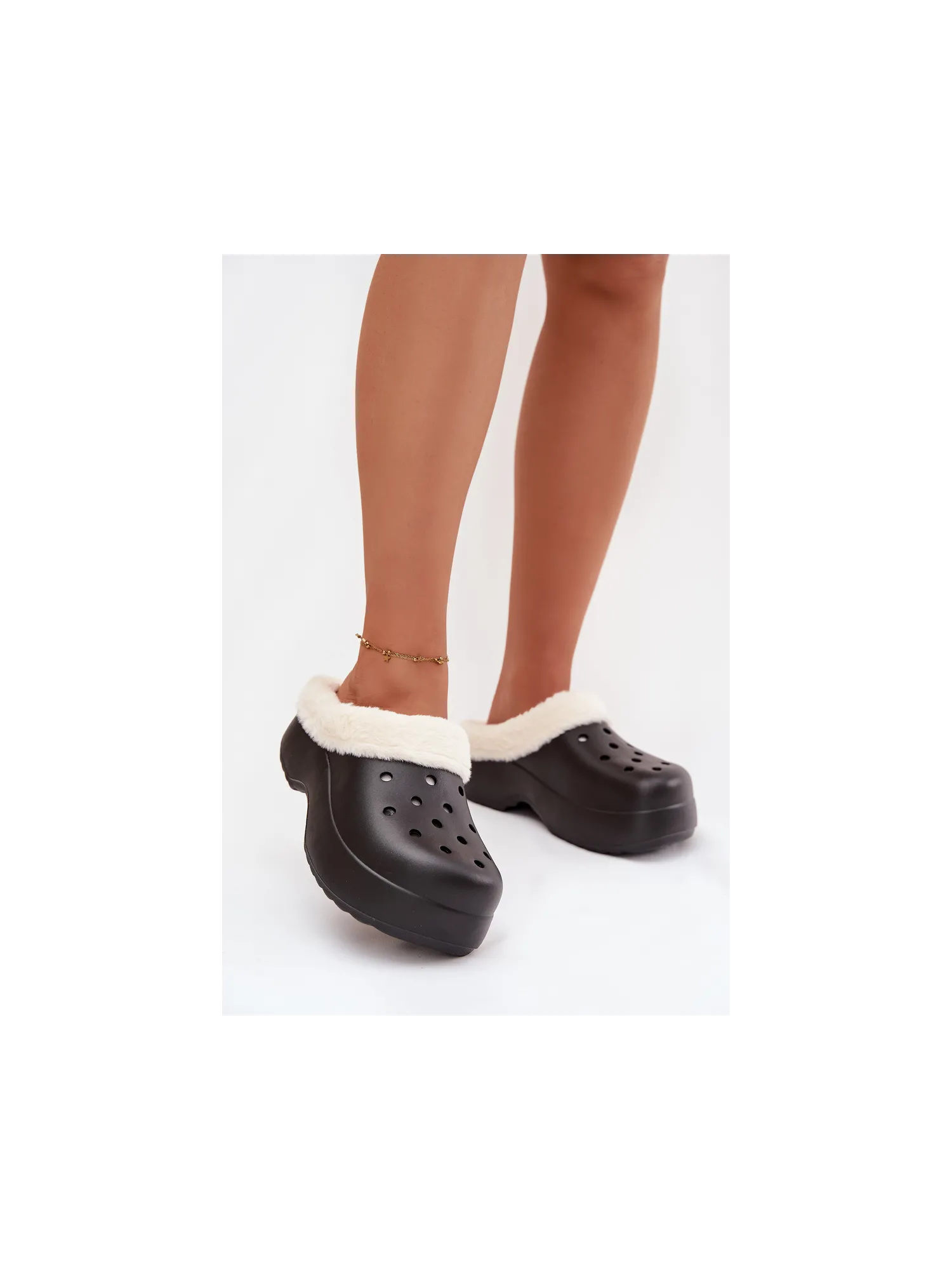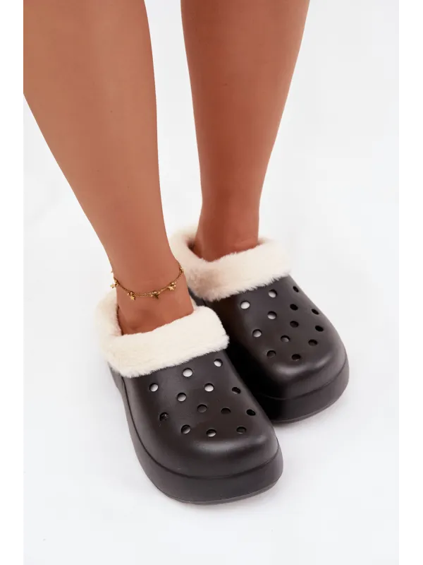 Women's slippers made from lightweight foam material. The interior is lined with soft, pleasant-to-touch fur that provides warmth and exceptional comfort, even during longer walks. The model is set on a stable platform that adds a few centimeters. These practical and fashionable slippers are perfect for everyday outings – both for urban styles and casual, home sets. When choosing the size, please refer to the size chart. When choosing a size, please refer to the size chart.